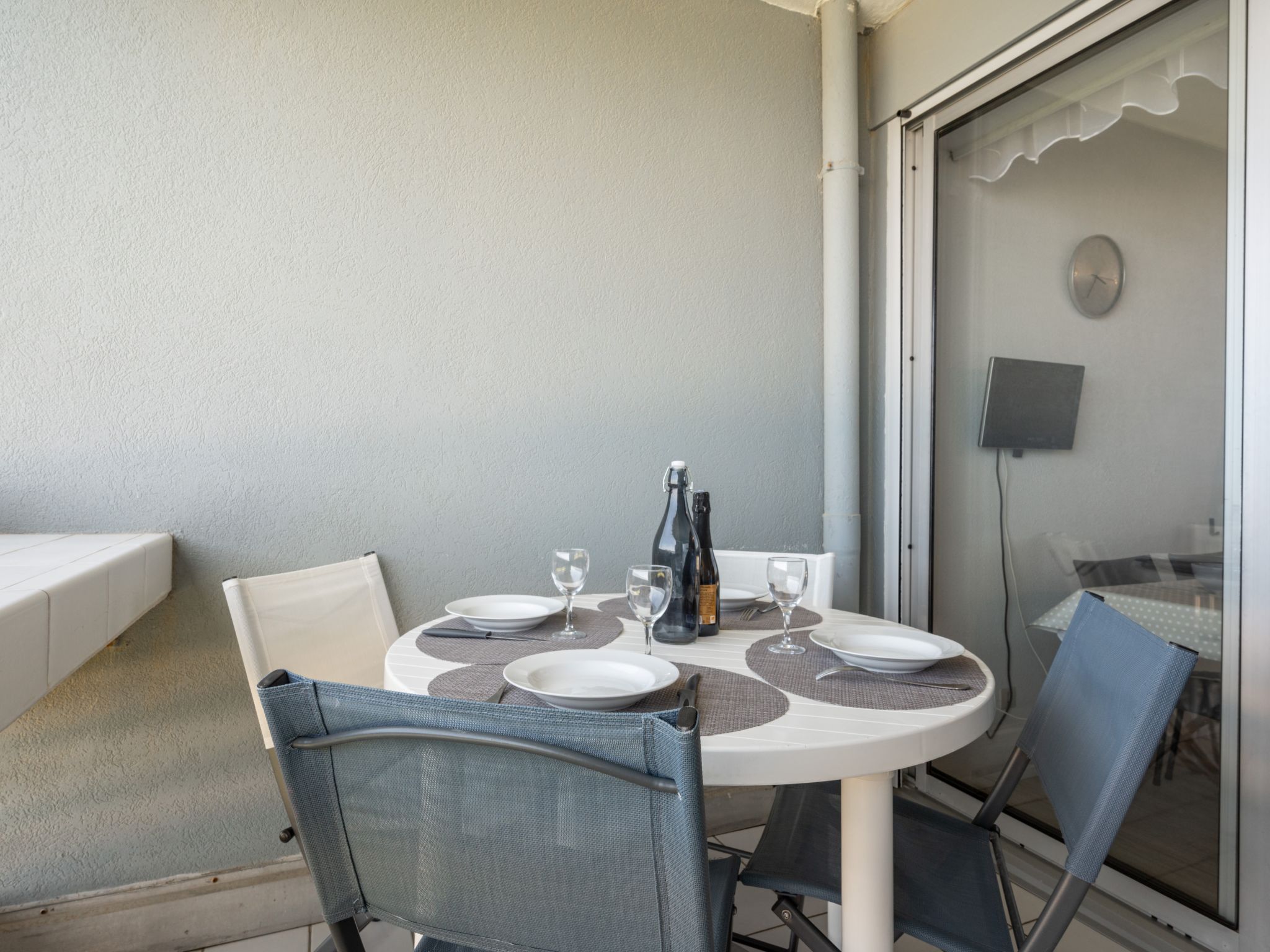 2-Zimmer-Wohnung 26 m2 im 4. Stock. Wohn-/Esszimmer mit 1 Doppeldiwanbett (140 cm, Länge 190 cm), TV und Ventilator. Ausgang zur Terrasse. 1 Zimmer mit 1 franz. Bett (140 cm, Länge 190 cm). Kochnische (4 Kochplatten, Wasserkocher, Mikrowelle, elektrische Kaffeemaschine, Kombinationsmikrowelle) mit Esstisch. Ausgang zur Terrasse. Dusche, sep. WC. Terrasse 7 m2. Sicht auf das Meer. Zur Verfügung: Waschmaschine, Babybett, Haartrockner. Internet (Wireless LAN, extra). Parkplatz in 100 m. Bitte beachten: Rauchmelder. Inserat einer Privatperson nach Artikel 155, IV, CGI.