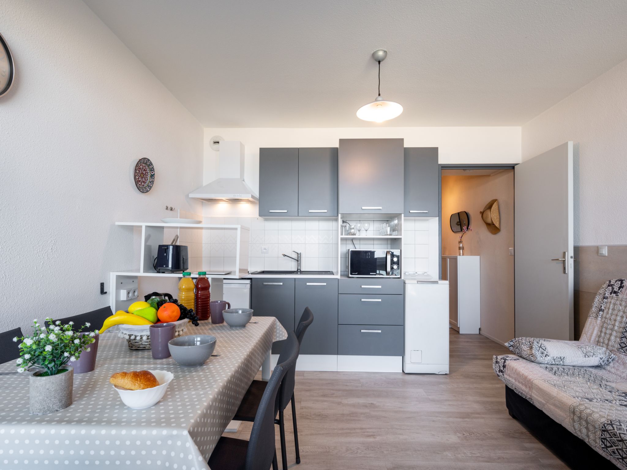 Canet Plage: Residenz "Le Beaupré", auf 7 Stockwerken. Im Ortsteil Canet Sud, 50 m vom Meer, 50 m vom Strand. Zur Alleinbenutzung: Garten (eingezäunt). In der Anlage: Fahrstuhl. Einkaufsgeschäft 350 m, Einkaufszentrum 8 km, Restaurant, Bäckerei 350 m, Bahnstation "Perpignan" 12 km, Sandstrand 50 m, Park "Aqualand St Cyprien" 12 km, Tauchzentrum 18 km, Freibad 3 km, Hallenbad 3 km, See Etang de Canet 1 km. Sporthafen 5 km, Golfplatz (18 Loch) 8 km, Tennis 3 km, Minigolf 1 km. Nahe gelegene Sehenswürdigkeiten: Perpignan 12 km, Collioure 25 km, Banyuls 37 km, Espagne 35 km, Andorre 180 km, Barcelone 200 km. Bekannte Seen in der Umgebung sind gut erreichbar: Lac de Villeneuve de la Raho 19 km, Lac de St Jean Pla de Corts 39 km, Gorges de Gouleyrous 42 km. Wandergebiete: Abbaye de st Martin du Canigou 70 km, Pic de Canigou 77 km, Lac des Bouillouses 105 km.