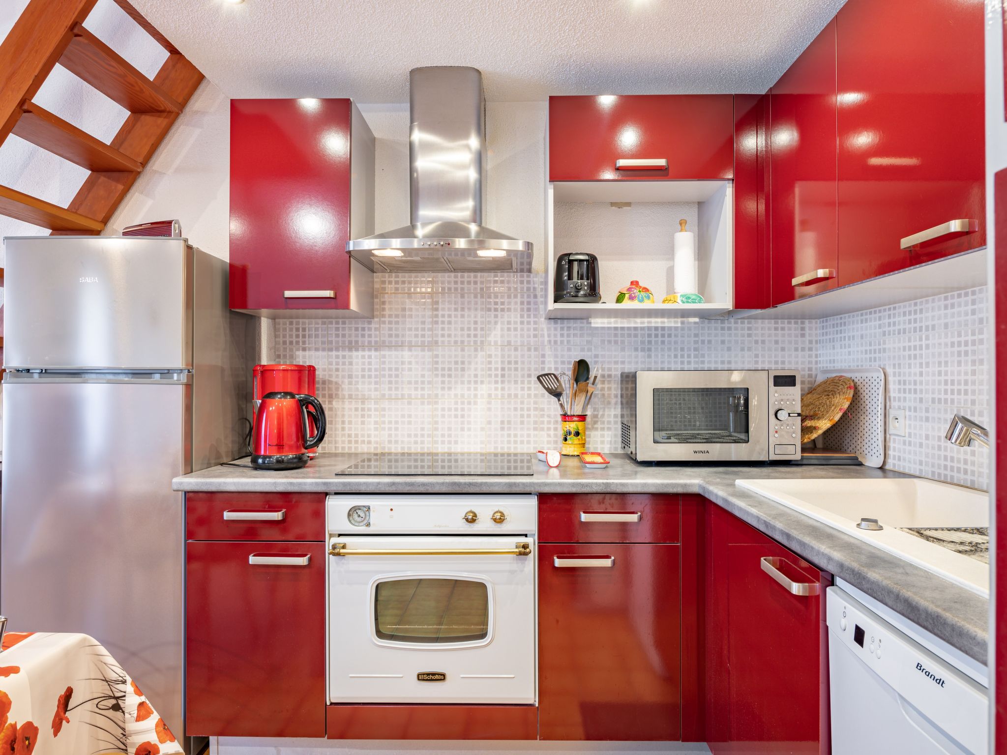 1-Zimmer-Reihenhaus 37 m2 auf 2 Stockwerken. Wohn-/Esszimmer mit 1 Doppeldiwanbett (140 cm, Länge 190 cm), TV (Flachbildschirm), DVD und Heimkino. Ausgang zur Terrasse. Kochnische (Backofen, Geschirrspüler, 3 Induktionskochplatten, Tiefkühler, elektrische Kaffeemaschine, Kombinationsmikrowelle). Dusche/WC. Obergeschoss: (steile Treppe) abgeschrägte Galerie mit 1 franz. Bett (140 cm, Länge 190 cm), Klimaanlage. Terrasse 12 m2, Ostlage. Terrassenmöbel, Elektrogrill. Zur Verfügung: Internet (Wireless LAN, extra). Parkplatz Nr. 23. Bitte beachten: Rauchmelder. Inserat einer Privatperson nach Artikel 155, IV, CGI.