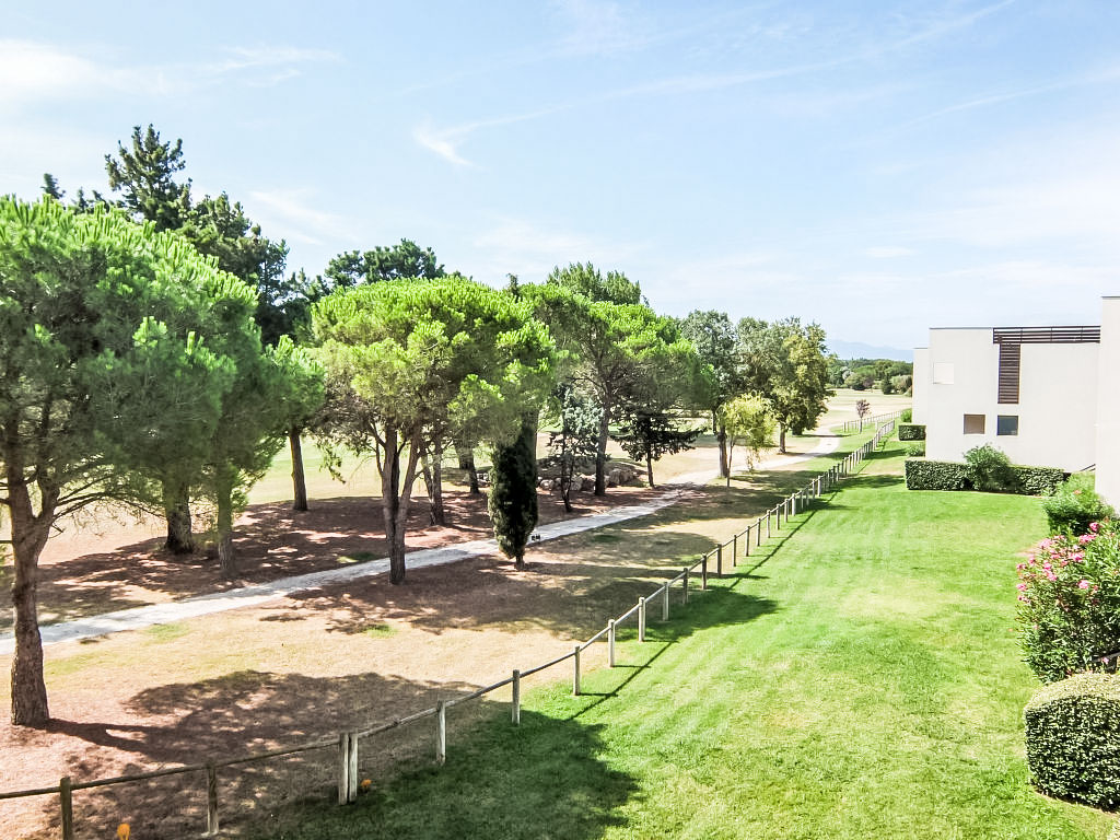 2-Zimmer-Wohnung 33 m2 im 2. Stock. Wohn-/Esszimmer mit 1 Doppeldiwanbett (140 cm, Länge 200 cm), TV (Flachbildschirm). Ausgang zur Terrasse. 1 Zimmer mit 1 franz. Bett (140 cm, Länge 200 cm). Kochnische (Backofen, Geschirrspüler, 4 Glaskeramikherd Platten, Mikrowelle, Tiefkühler, elektrische Kaffeemaschine). Dusche/WC. Klimaanlage. Terrasse 10 m2, überdacht. Terrassenmöbel. Schöne Sicht auf den Golfplatz. Zur Verfügung: Waschmaschine. Internet (Wireless LAN, extra). Parkplatz. Bitte beachten: Rauchmelder. Inserat einer Privatperson nach Artikel 155, IV, CGI.