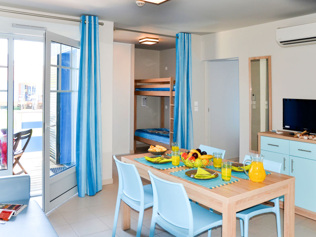 Kinderfreundliche Ferienanlage "La Grenadine", auf 2 Stockwerken, Baujahr 2013. 90 Häuser in der Residenz. 1.8 km vom Zentrum von Marseillan-Plage, am Ortsrand, 8 km vom Zentrum von Cap d'Agde, 32 km vom Zentrum von Béziers, 200 m vom Meer. Zur Mitbenutzung: Grundstück (eingezäunt), Schwimmbad beheizt (16 x 8 m, saisonale Verfügbarkeit: 15.Apr.-15.Okt.). WC im Poolbereich, Kinderbecken, Aussendusche, Tischtennis, Boccia, Kinderspielplatz. In der Anlage: Empfang, Bar, Bistro, Sauna (extra). Fitnessraum, Dampfbad (extra). Waschmaschine, Wäschetrockner (zur Mitbenutzung, extra). Brötchenservice. Treppenweg (3 Stufen) bis zum Haus. Parkplatz. Einkaufsgeschäft 1.8 km, Supermarkt 7 km, Sandstrand 200 m. Jacht-Hafen 1 km. Bitte beachten: autofreie Ferienanlage. Geeignet für Familien. Das Foto ist nur ein Hausbeispiel. Die Mietobjekte können sich in Wohnfläche, Raumaufteilung, Ausstattung und Einrichtung unterscheiden.