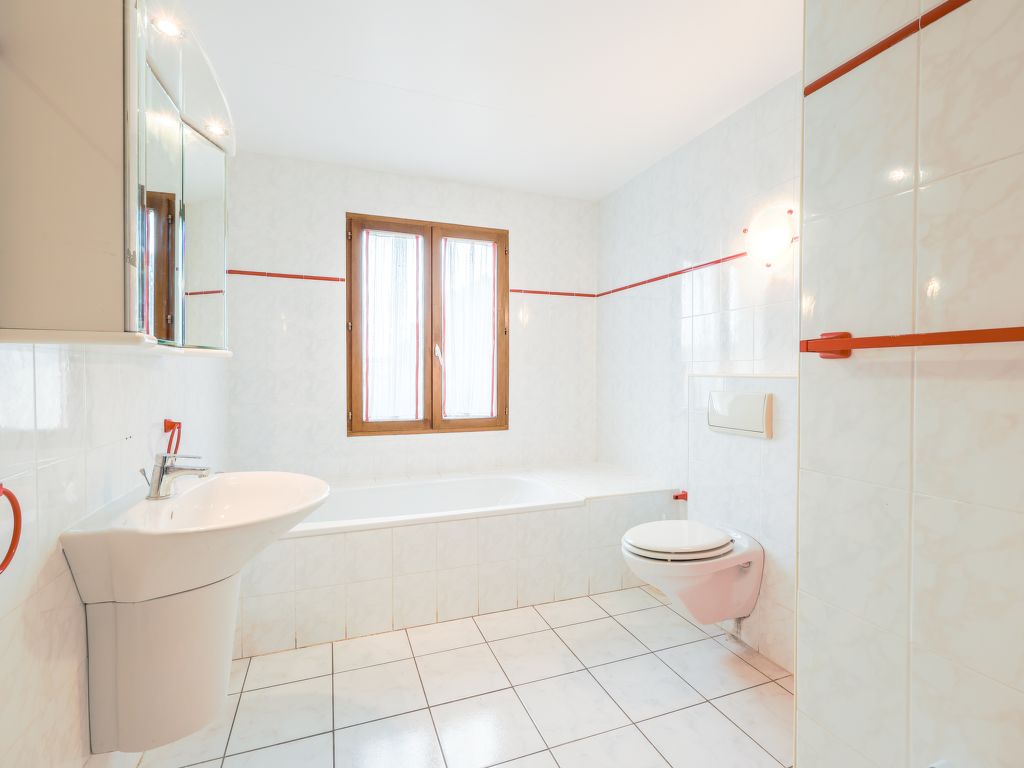 7-Zimmer-Haus 150 m2 auf 2 Stockwerken. Zweckmässig und schön eingerichtet: Wohn-/Esszimmer mit TV. Ausgang zur Terrasse. 3 Zimmer, jedes Zimmer mit 2 Betten (90 cm). Küche (4 Kochplatten, Backofen, Geschirrspüler, Mikrowelle, Tiefkühler). Sep. WC, Bad/Dusche/WC. Obergeschoss: 1 Zimmer mit 1 franz. Bett (140 cm). 1 Zimmer mit 1 franz. Bett (200 cm). Bad/Dusche/WC. E-Heizung. Grosser Garten 600 m2. Terrassenmöbel. Zur Verfügung: Waschmaschine. Internet (Wireless LAN, extra). Parkplatz (2 Autos). Bitte beachten: 1 kleines Haustier/Hund erlaubt. TV nur DE. Rauchmelder. Inserat einer Privatperson nach Artikel 155, IV, CGI.