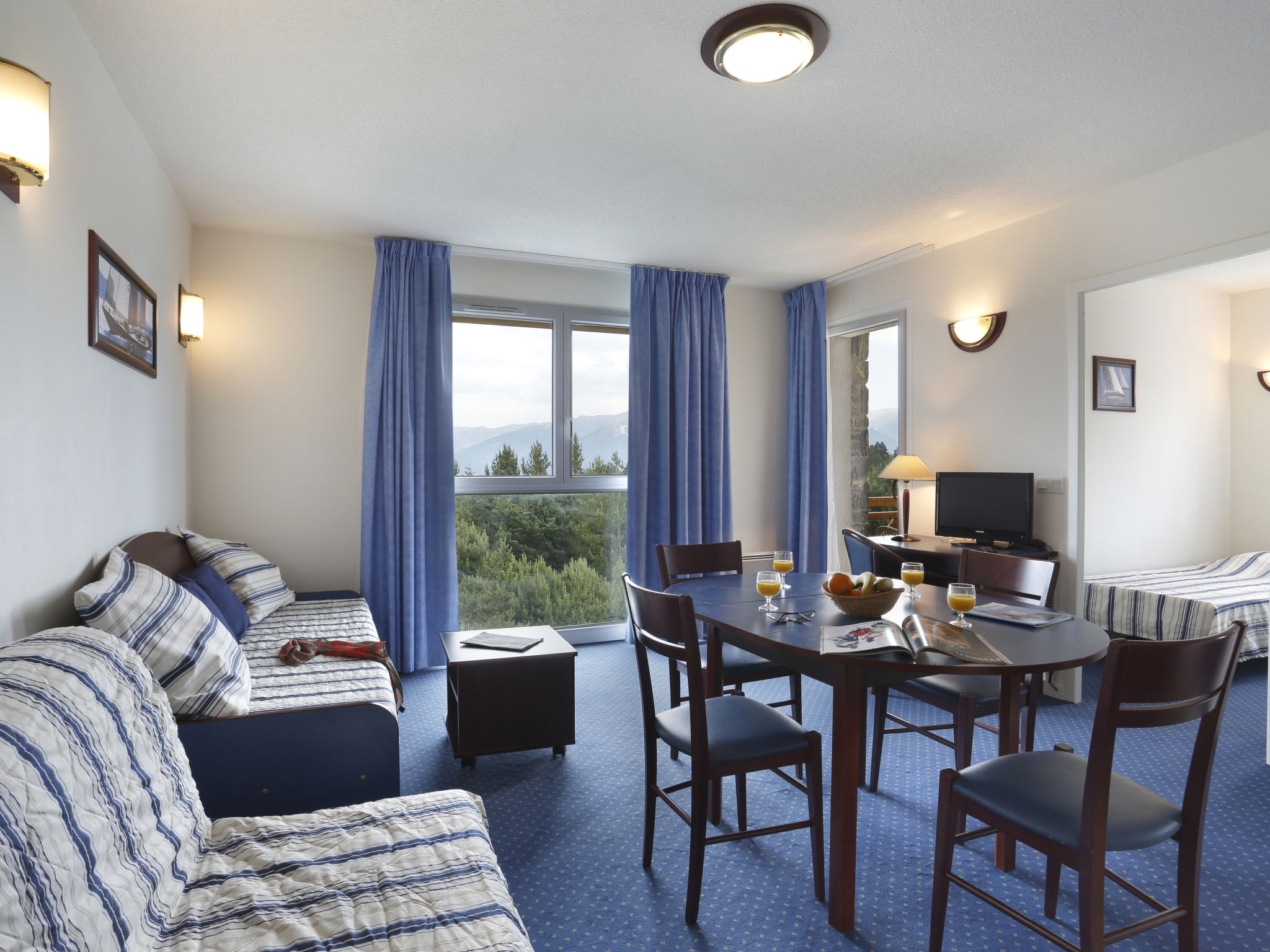 Residenz "Appart Vacances Pyrénées 2000", auf 4 Stockwerken. 148 Wohnungen in der Residenz. Im Ort Bolquère Pyrénées 2000, 400 m vom Skigebiet. In der Anlage: Empfang, Restaurant, Frühstücksraum, Wireless LAN, Sauna (extra). Fitnessraum, Dampfbad (extra). Sprudelbad (extra). Spielzimmer, Fahrstuhl, Skiraum, Zentralheizung, Waschmaschine (extra), Wäschetrockner (extra). Brötchenservice. Parkplatz (beschränkte Anzahl), Gemeinschaftsgarage. Parkplatz/Garage nur für kleine - mittlere Fahrzeuge geeignet. Maße: Höhe 190 cm. Elektroauto-Ladestation. Einkaufsgeschäft, Lebensmittelgeschäft, Supermarkt, Restaurant 200 m. Tennis 400 m, Skipisten 300 m. Nahe gelegene Sehenswürdigkeiten: Perpignan 90 km. Bekannte Skigebiete sind gut erreichbar: Pyrénées 2000 400 m. Wandergebiete: Parc Naturel Régional des Pyrénées. Bitte beachten: Fahrzeug empfohlen. Das Foto ist nur ein Hausbeispiel. Das Foto ist nur ein Wohnungsbeispiel. Die Mietobjekte können sich in Wohnfläche, Raumaufteilung, Ausstattung und Einrichtung unterscheiden.