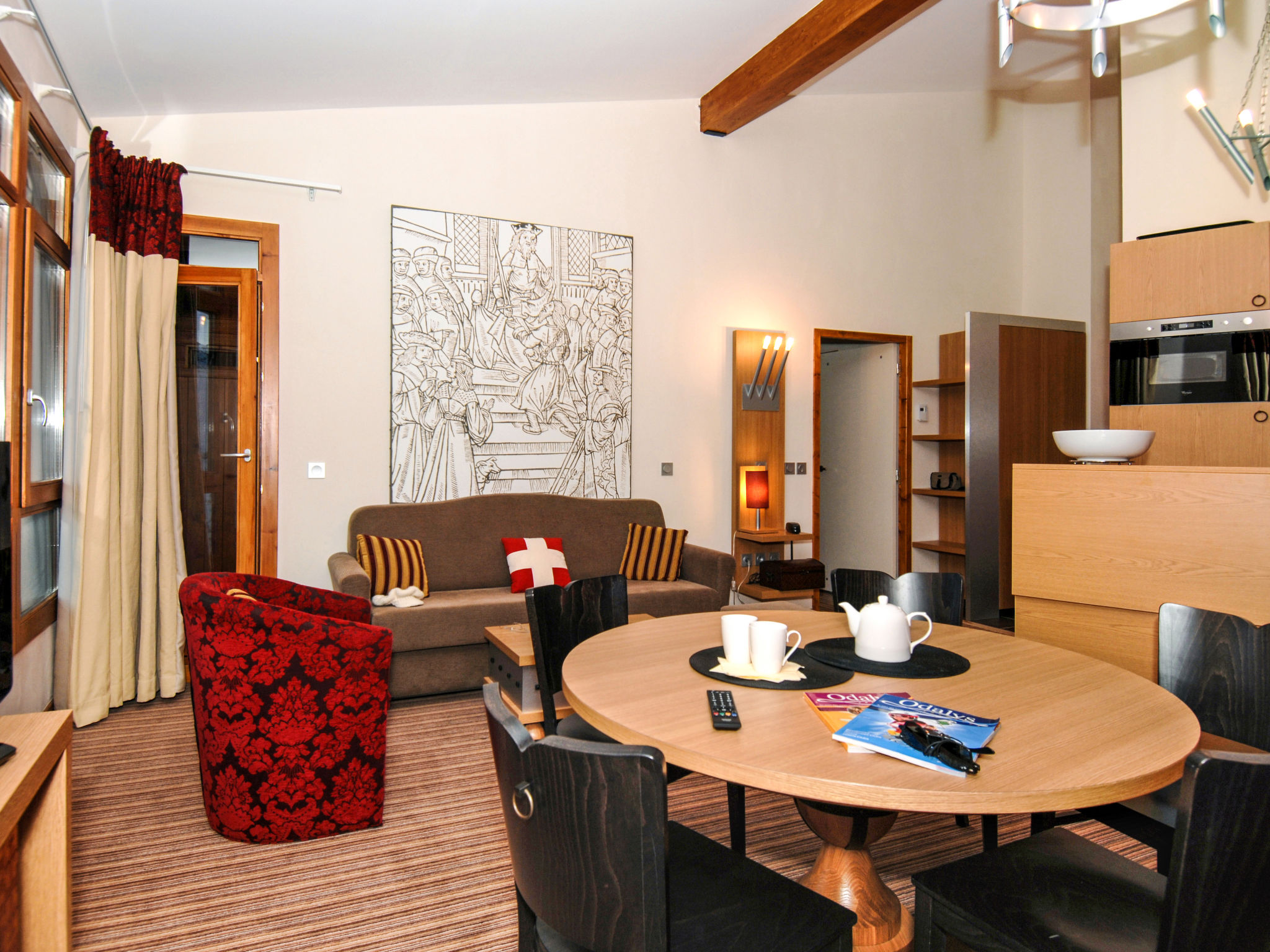 Die ODALYS-Residenz EDENARC steht in sonniger Panoramalage in ARC 1800, oberhalb des Ortsteils Village du Chantel. Direkter Zugang zu den Pisten. Zur Kabinenbahn 'Dahu', die die Residenz mit dem Ort verbindet ca. 100 m. Bushaltestelle ca. 50 m. Tiefgarage (ca. € 50 pro Woche, je nach Verfügbarkeit, Einfahrtshöhe 2,10 m). Golfplatz ‘Les Arcs’ in unmittelbarer Nähe. In der Anlage großer Empfangsraum mit stundenweise besetzter Rezeption, Brötchenservice und gemütlicher Sitzecke. Aufzüge zu den Etagen. Skiraum mit 1 Skibox pro Wohnung. Im Preis enthalten: kleines Hallenbad (ca. 100 m²), Whirlpool, Fitnessraum, Sauna und Dampfbad. Alle Wohnungen haben Balkon oder Terrasse. Gute, geschmackvolle Einrichtung mit Kochecke, Sat-TV, Internetzugang für 2 Endgeräte (WLAN, inklusive), Fußbodenheizung.