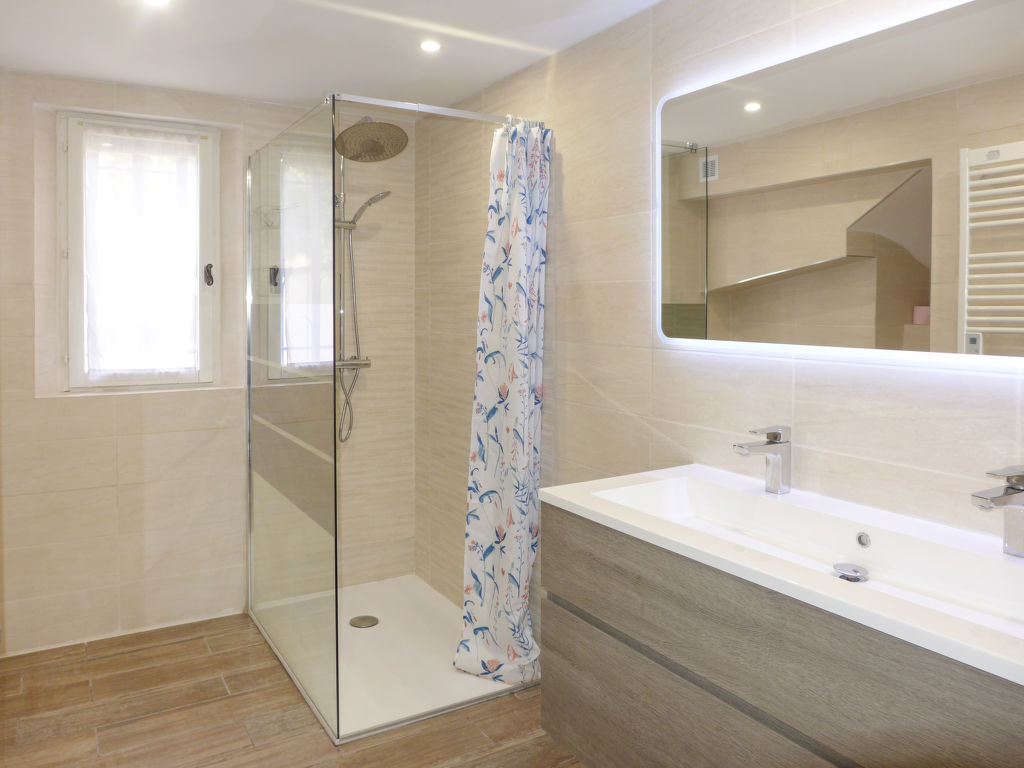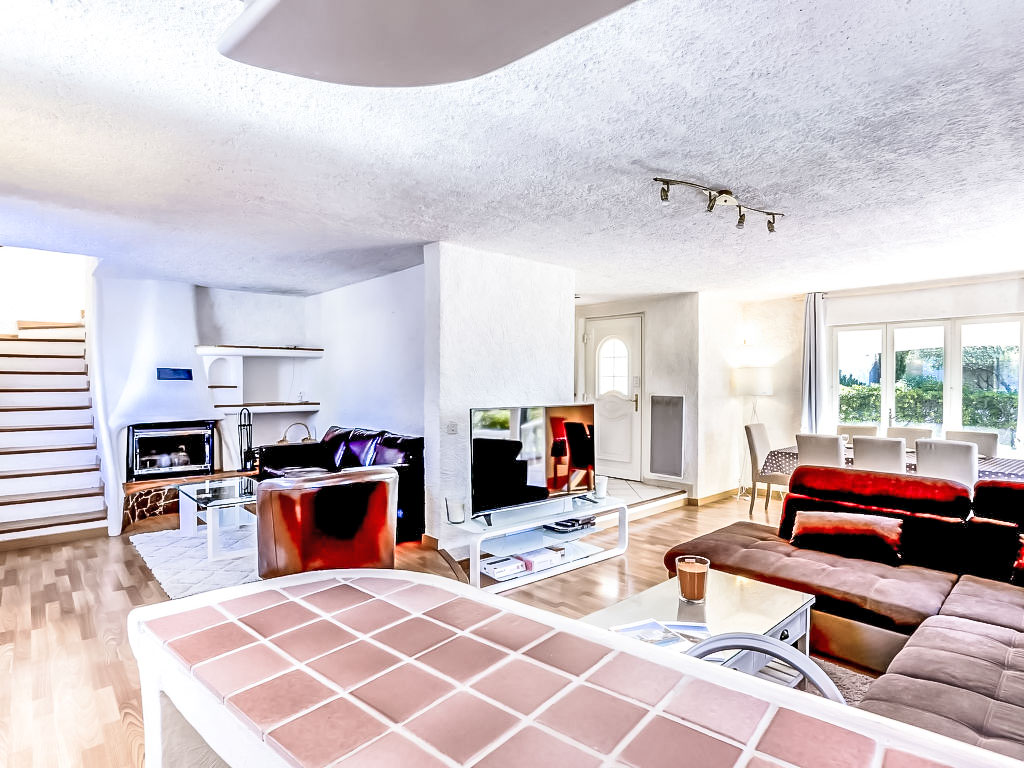 4-Zimmer-Villa 140 m2. Wohn-/Esszimmer mit 1 Doppeldiwanbett (1 x 140 cm, Länge 190 cm), offenem Kamin, Bar und TV (Flachbildschirm), Klimaanlage. Ausgang zur Terrasse. 2 Zimmer, jedes Zimmer mit 1 franz. Bett (1 x 140 cm, Länge 190 cm), TV (Flachbildschirm), Klimaanlage. Grosse, offene Küche (Backofen, Geschirrspüler, 4 Glaskeramikherd Platten, Toaster, Wasserkocher, Mikrowelle, Tiefkühler, elektrische Kaffeemaschine). Dusche/WC, sep. WC, Doppelwaschbecken. Obergeschoss: 1 Zimmer mit 1 franz. Bett (1 x 140 cm, Länge 190 cm), Dusche/WC und TV (Flachbildschirm), Klimaanlage. Ausgang zum Balkon. Grosse Terrasse. Terrassenmöbel, Liegestühle (8). Zur Verfügung: Waschmaschine, Wäschetrockner, Bügeleisen, Haartrockner. Internet (Wireless LAN, gratis). Bitte beachten: Nichtraucher-Haus. Rauchmelder. Inserat einer Privatperson nach Artikel 155, IV, CGI. 83107000211AQ