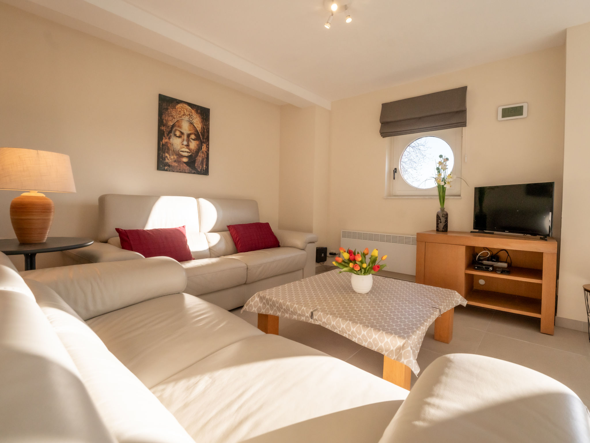 "Athene 002", 2-Zimmer-Wohnung 80 m2, im Erdgeschoss. Objekt geeignet für 2 Erwachsene + 2 Kinder. Zweckmässig und gemütlich eingerichtet: Eingang mit sep. WC. Wohn-/Esszimmer mit Esstisch, TV und Internationale TV-Sender (Flachbildschirm). Ausgang zur Terrasse. 1 kleines Kinderzimmer, ohne Fenster mit 1 x 2 Etagenbetten (90 cm, Länge 200 cm). 1 Zimmer mit 1 Doppelbett (1 x 170 cm, Länge 200 cm). Offene Küche (Geschirrspüler, 4 Glaskeramikherd Platten, Mikrowelle, Tiefkühler, elektrische Kaffeemaschine). Dusche. E-Heizung. 2 Terrassen. Terrassenmöbel. Zur Verfügung: Waschmaschine, Haartrockner. Internet (Wireless LAN, gratis). Garage Nr. 96 auf dem Grundstück (1 Auto). Bitte beachten: Nichtraucher-Haus. Rauchmelder, Feuerlöscher.