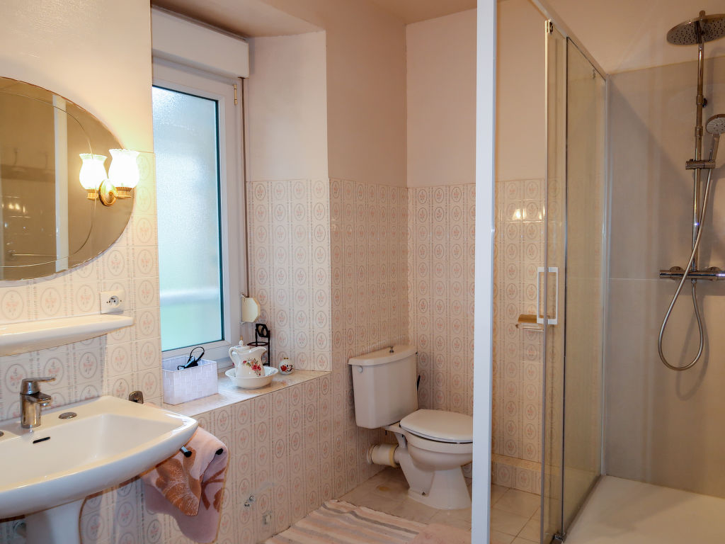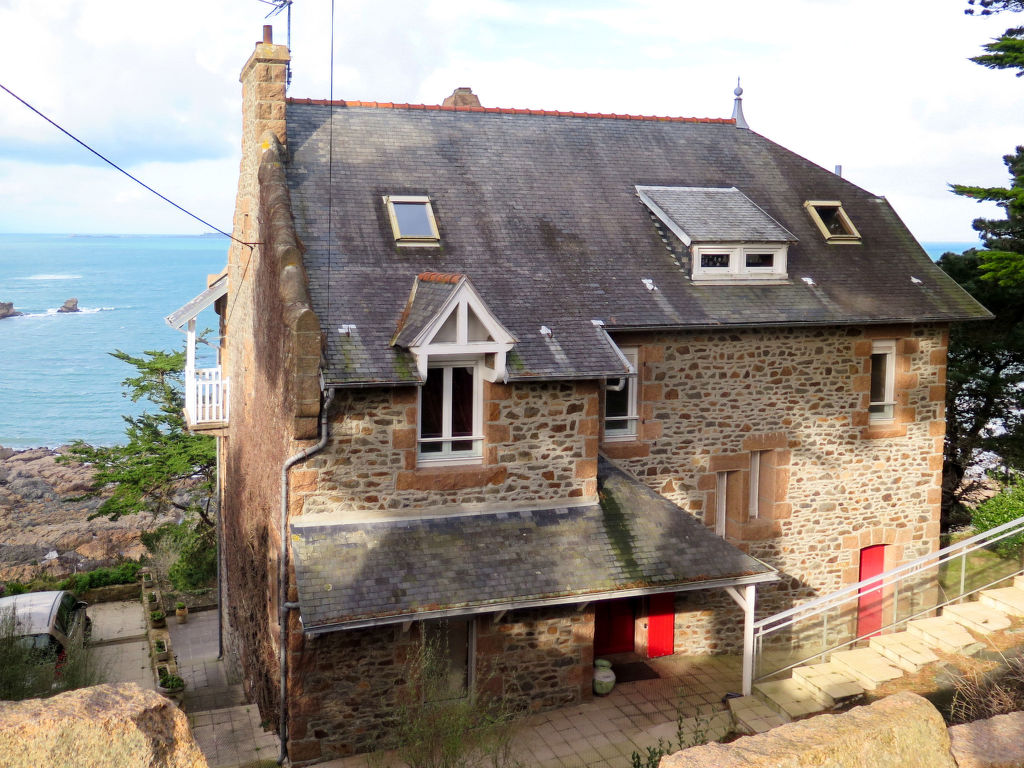 Das Natursteinhaus steht in Hanglage mit schönem Blick aufs Meer, ca. 300 m von der Ortsmitte von Perros-Guirec mit Einkaufsmöglichkeiten entfernt. Zum 1,4 km langen Sandstrand 'Trestraou' 1 km. Supermarkt 500 m. Trégastel mit Hallenbad 8 km. Golfplatz 9 km. Stark abfallendes, von Zaun, Hecke und Mauer umgebenes Grundstück (Einfahrtstor) mit Bäumen. Zur Meerseite großer Balkon sowie überdachte Terrasse (zugänglich vom Untergeschoss). Jeweils Mobiliar. Gemauerter und transportabler Grill, 4 Sonnenliegen, Sonnenschirm. Parkmöglichkeit für 2 Pkw auf dem Grundstück (steile, kurvige Zufahrt) oder an der Straße beim Haus. Ansprechende, gepflegte Einrichtung, teils mit Antiquitäten. Fliesen- und Parkettboden. 2x TV. DVD, Stereoanlage. Internetzugang (WLAN, inklusive). Waschmaschine, Bügeleisen/-brett. Öl-Zentralheizung. Hinweis: Rauchen ist im Haus nicht gestattet.