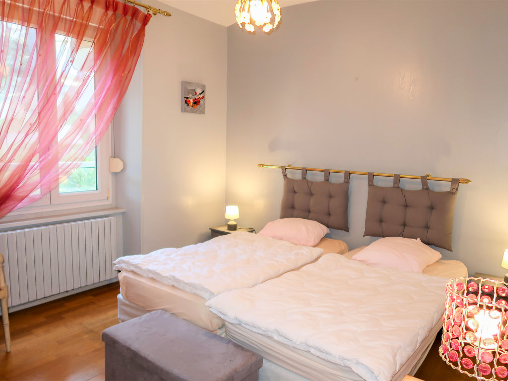 6-Zimmer-Haus, 2 Etagen, ca. 180 m². Erdgeschoss: Wohnraum mit Sitzgruppe, Kamin (Einsatz, Holz inklusive), Essplatz und Balkonausgang. Esszimmer. Küche (4 Flammen, Backofen, Mikrowelle, Geschirrspüler, Kühlschrank, Kaffeemaschine, Kaffeepadmaschine, Wasserkocher, Toaster, Gefrierschrank im Untergeschoss) mit Essplatz für 4 Personen. Sep.WC. Obergeschoss: Schlafzimmer mit franz. Bett, kleinem Bad (Sitzbadewanne)/WC und Ausgang zu kleinem Balkon. Schlafzimmer mit franz. Bett (1,60 m breit) und Ausgang zu kleinem Balkon. Schlafzimmer mit franz. Bett. Zweibettzimmer. Dusche/WC. Untergeschoss: einfache Dusche. Inserat einer Privatperson nach Artikel 155, IV, CGI.