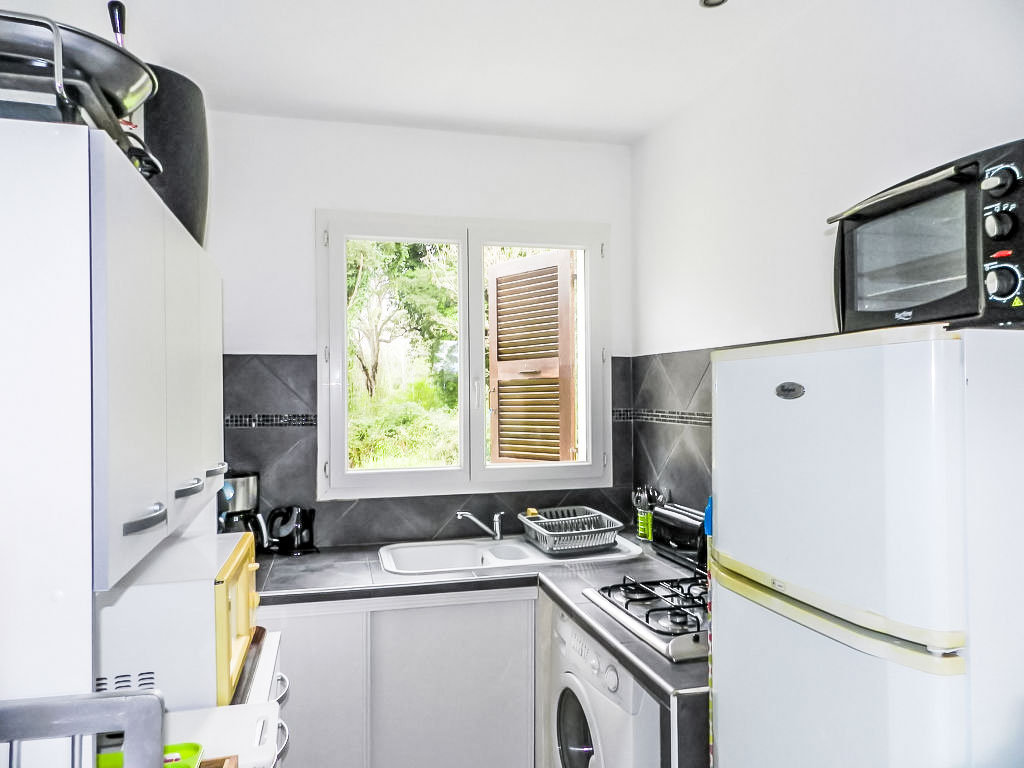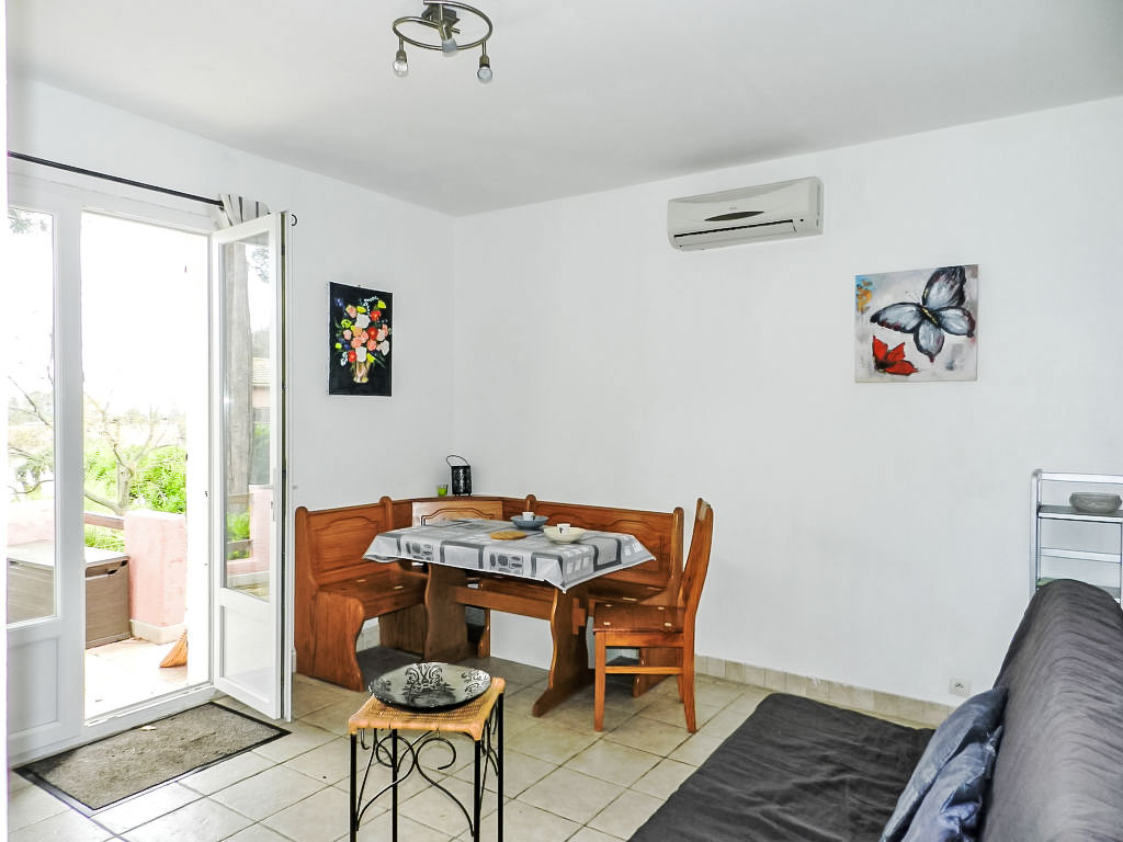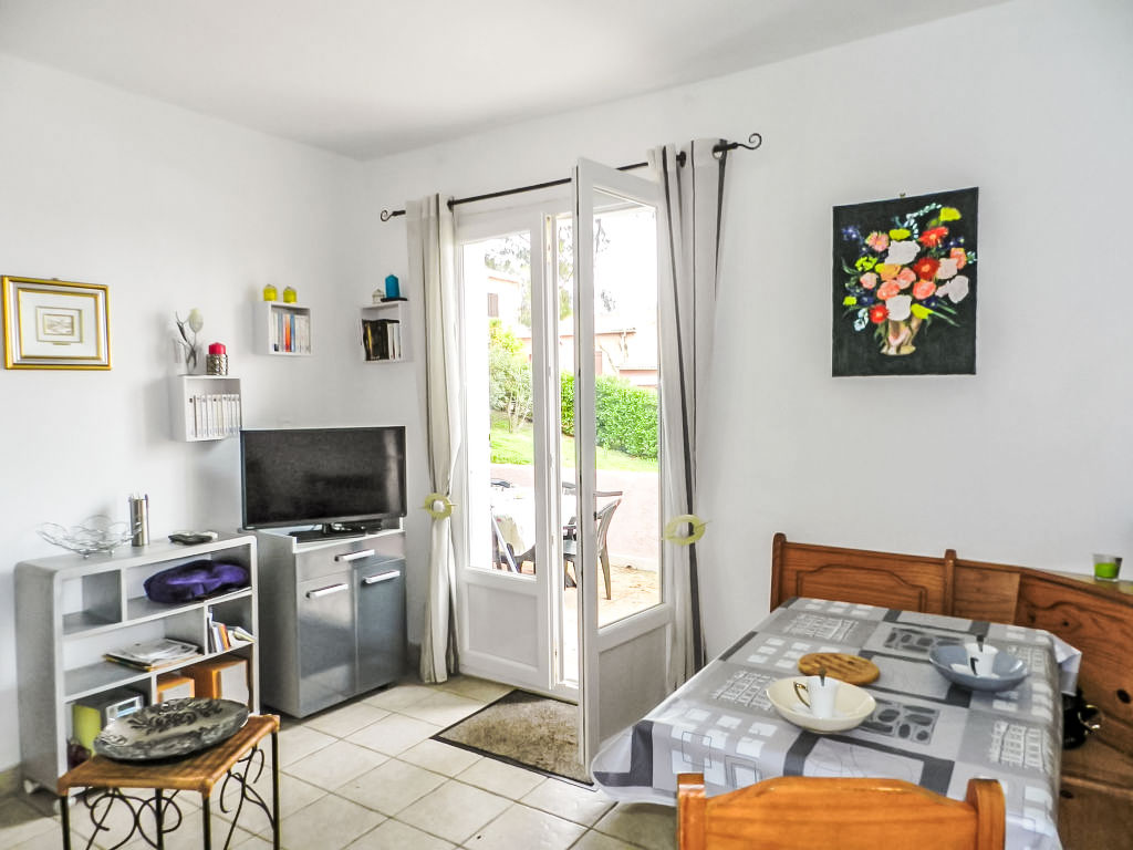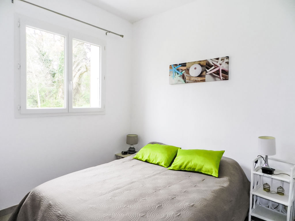 3-Zimmer-Reihenhaus 50 m2. Wohn-/Esszimmer mit TV (Flachbildschirm), Klimaanlage. Ausgang zur Terrasse. 2 Zimmer, jedes Zimmer mit 1 franz. Bett (140 cm, Länge 190 cm). Kleine, offene Küche (4 Kochplatten, Backofen, Mikrowelle, Tiefkühler, elektrische Kaffeemaschine). Dusche, sep. WC. Terrasse 20 m2. Terrassenmöbel. Zur Verfügung: Waschmaschine, Babybett bis 2 Jahre. Internet (Wireless LAN). Bitte beachten: Nichtraucher-Haus. Inserat einer Privatperson nach Artikel 155, IV, CGI.