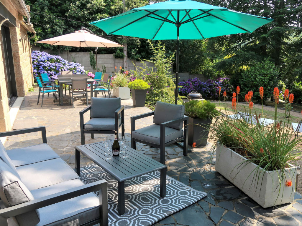 Das bretonische Natursteinhaus steht in einem Villenviertel, 1,2 km von der Ortsmitte von Morlaix mit Einkaufsmöglichkeit und Supermarkt. Zum Fluss und Jachthafen ca. 600 m (Fußweg, gezeitenabhängig). Die Sandstrände bei Carantec und Plougasnou liegen in 12-15 km Entfernung. Ca. 1500 m² großes, von Hecke und Mauer umgebenes Gartengrundstück (Einfahrtstor) in Hanglage mit Büschen und Bäumen. Terrasse in Südwestlage mit Gartenmobiliar, Sitzgruppe (Polyrattan), 4 Sonnenliegen, Sonnenschirm und transportablem Grill. Parkmöglichkeit auf dem Grundstück und an der Straße beim Haus. Garage als Abstellraum für Fahrräder und Surfbretter. Das 2016 von einem Architekten neu konzipierte und aufwendig renovierte Ferienhaus ist geschmackvoll und in hellen Farben eingerichtet. Parkett- und Fliesenboden. TV (8 deutsche Programme). DVD. Internetzugang (WLAN, inklusive). Waschmaschine, Trockner. Elektroheizung. Hinweis: Rauchen ist im Haus nicht gestattet.
