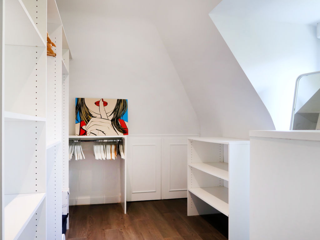 5-Zimmer-Haus, 2 Etagen, ca. 200 m². Erdgeschoss: Eingangsbereich mit Schreibtisch. Großer Wohnraum mit Sitzgruppe, Kamin (Einsatz), Essplatz und Glasschiebetüren zur Terrasse, zum Wohnraum offene Küche (3 Induktionsfelder, Backofen, Mikrowelle, Geschirrspüler, Kühl-/Gefrierkombination, Kaffeemaschine, Wasserkocher, Toaster) mit Essplatz für 4 Personen (Barhocker). Sep.WC. Vom Wohnraum Treppe ins Obergeschoss (teils leichte Dachschräge): Schlafzimmer mit franz. Bett (1,60 m breit) mit Sitzecke, Ankleideraum und Dusche/Doppelwaschbecken/WC. 2 Schlafzimmer, jeweils mit franz. Bett (eines davon 1,60 m breit). Zweibettzimmer. Bad/WC.Hinweis: Bei Buchung zum Preis für 4 Personen bleiben 2 Schlafzimmer verschlossen. Schwedenofen aufamfrage. Inserat einer Privatperson nach Artikel 155, IV, CGI.