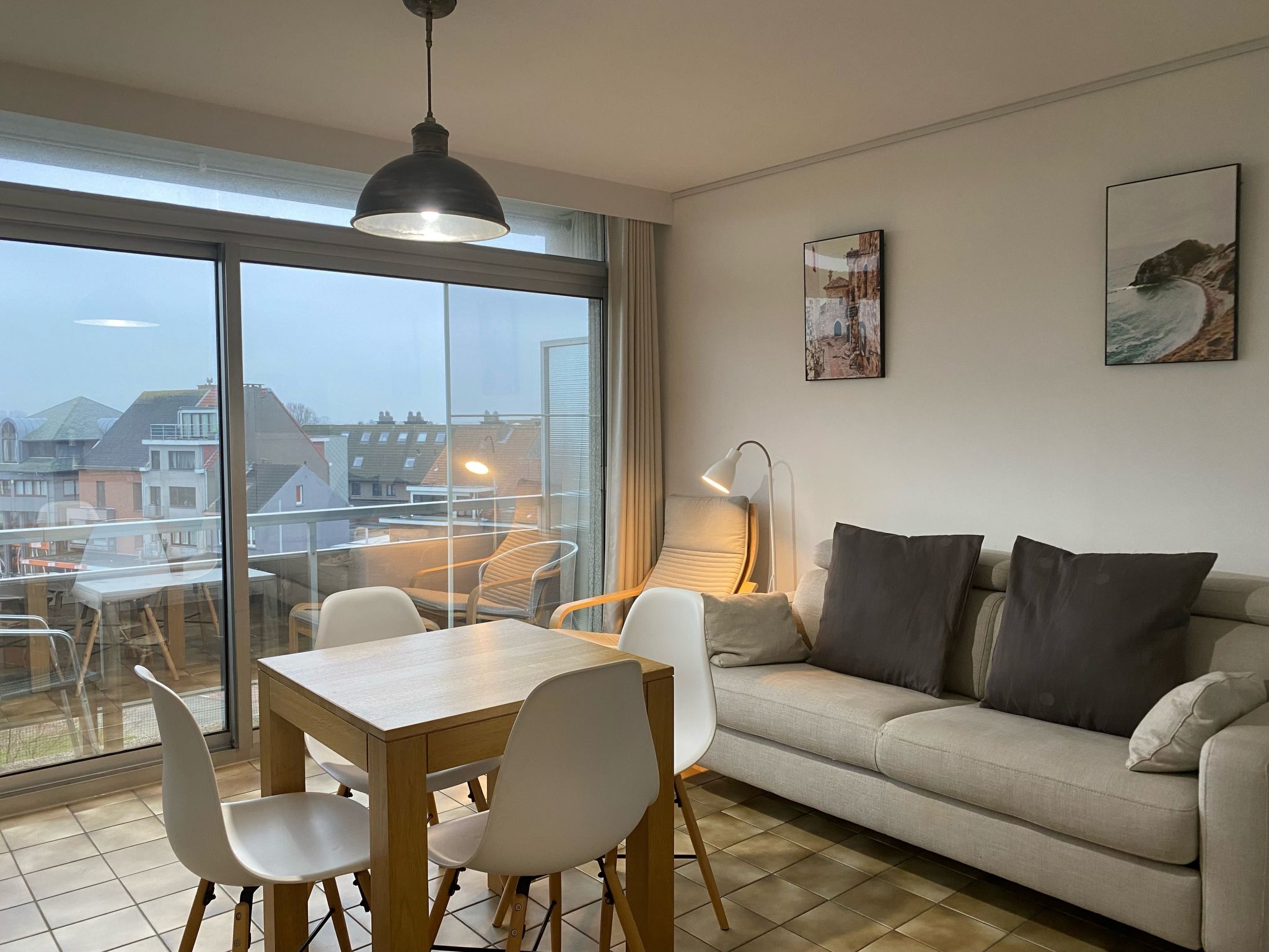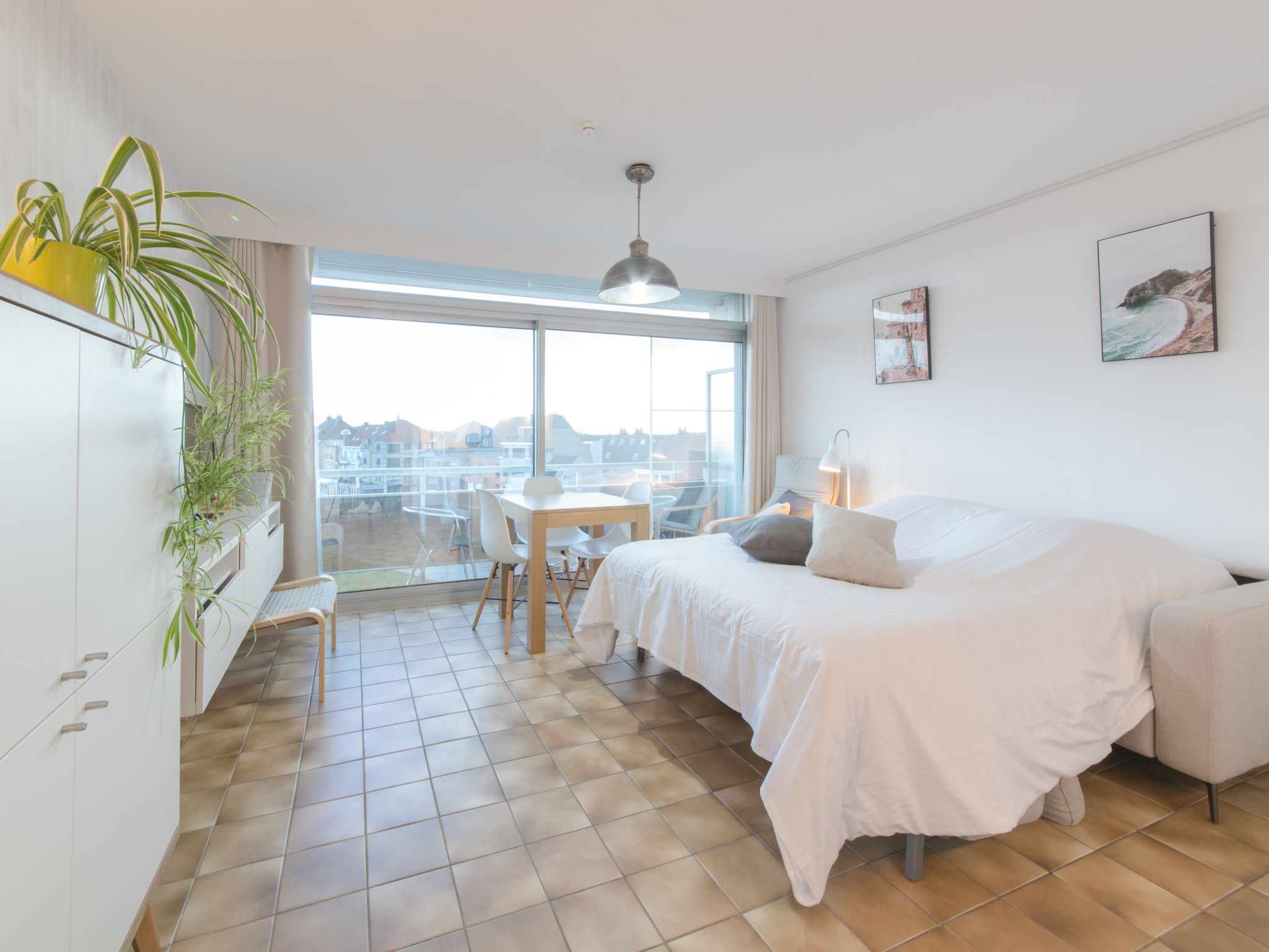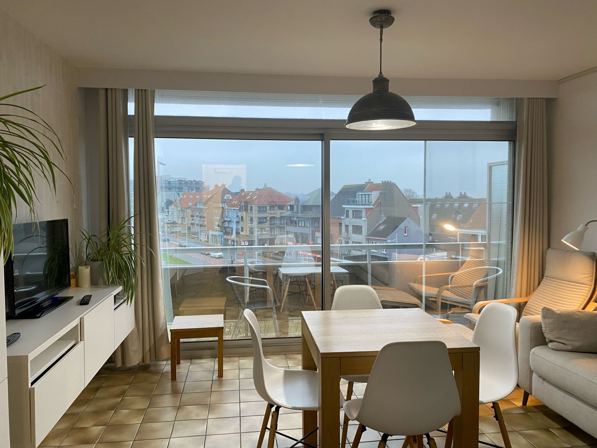 "Ochtendstemming", 1-Zimmer-Studio 25 m2 im 4. Stock, Ostlage. Hell, teilweise renoviert im Jahre 2020, komfortabel und gemütlich eingerichtet: Eingang. Wohn-/Esszimmer mit 1 Diwanbett (140 cm, Länge 200 cm), Esstisch, TV und Internationale TV-Sender (Flachbildschirm), Radio. Kochnische (Geschirrspüler, 4 Induktionskochplatten, Toaster, Wasserkocher, elektrische Kaffeemaschine, Dampfgarer, Kombinationsmikrowelle). Bad/WC. E-Heizung, Boiler (100 Liter). Balkon 3 m2, Ostlage. Balkonmöbel. Zur Verfügung: Bügeleisen, Haartrockner. Internet (Wireless LAN, gratis). Bitte beachten: Nichtraucher-Haus, kein Parkplatz. 1 kleines Haustier/Hund erlaubt. Rauchmelder, Feuerlöscher.