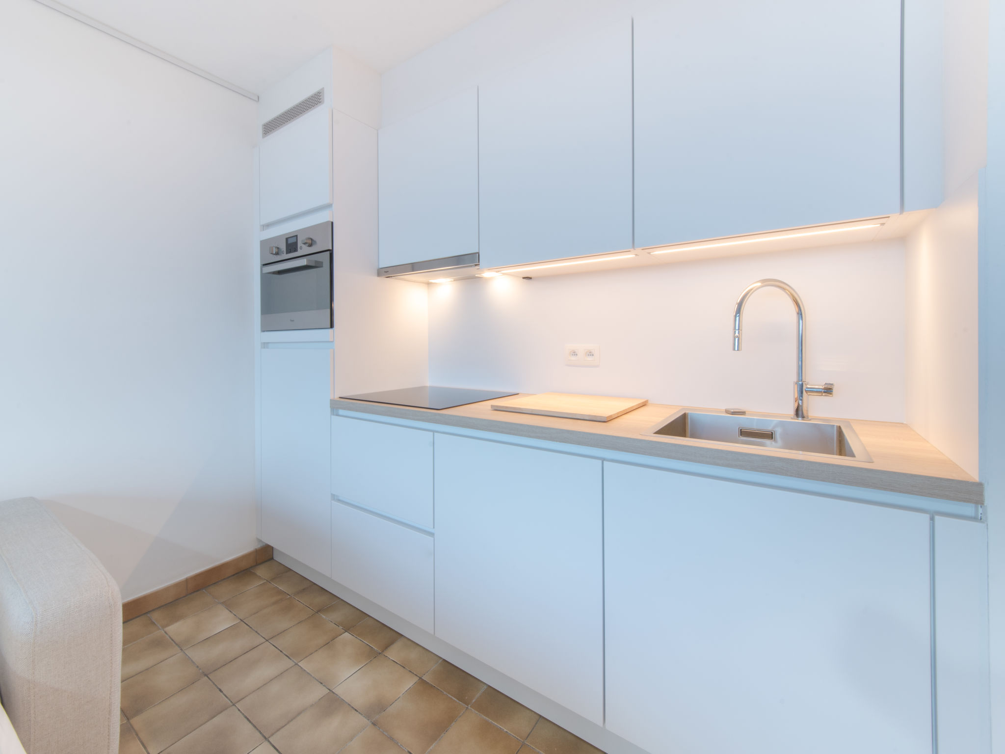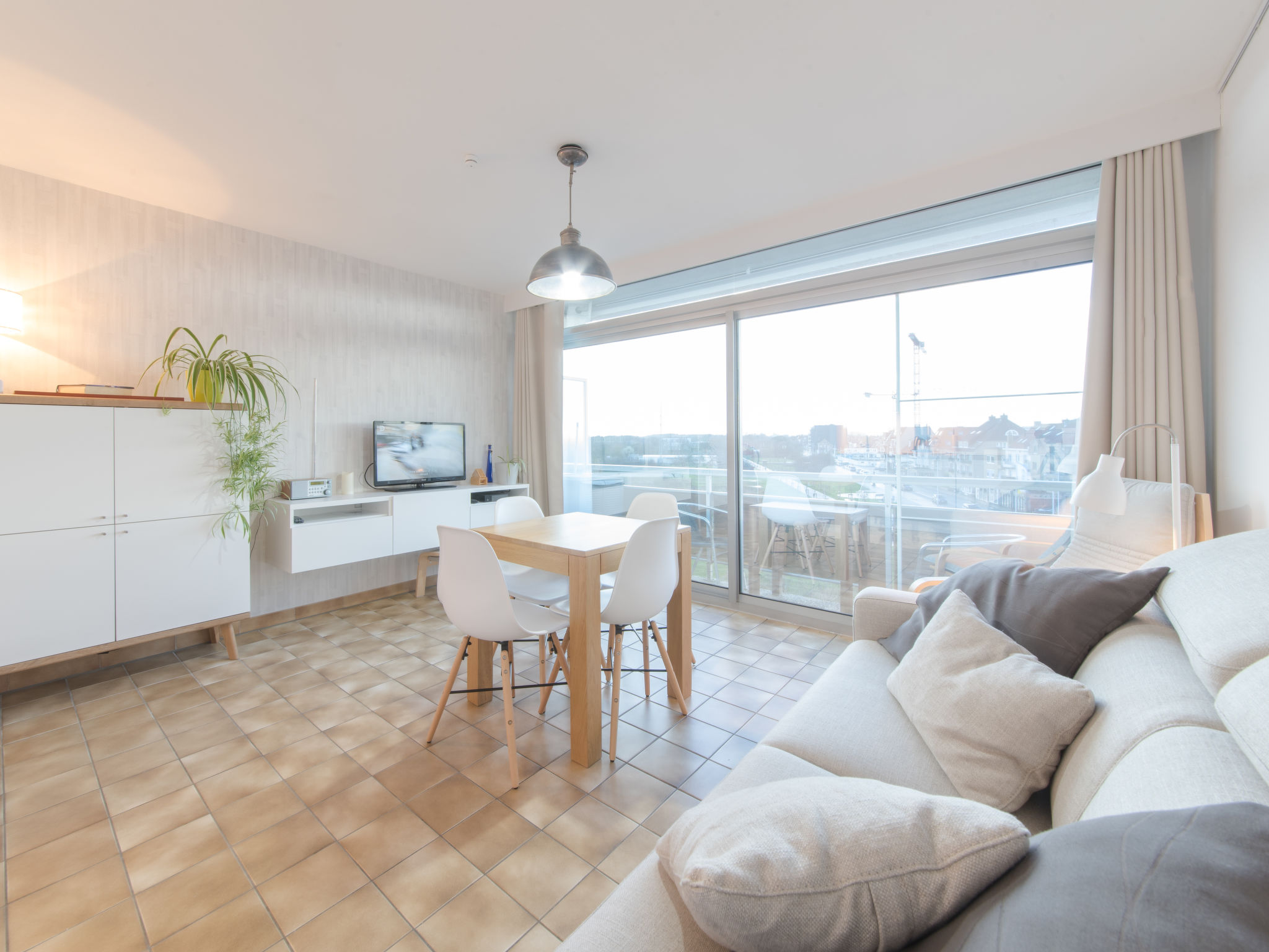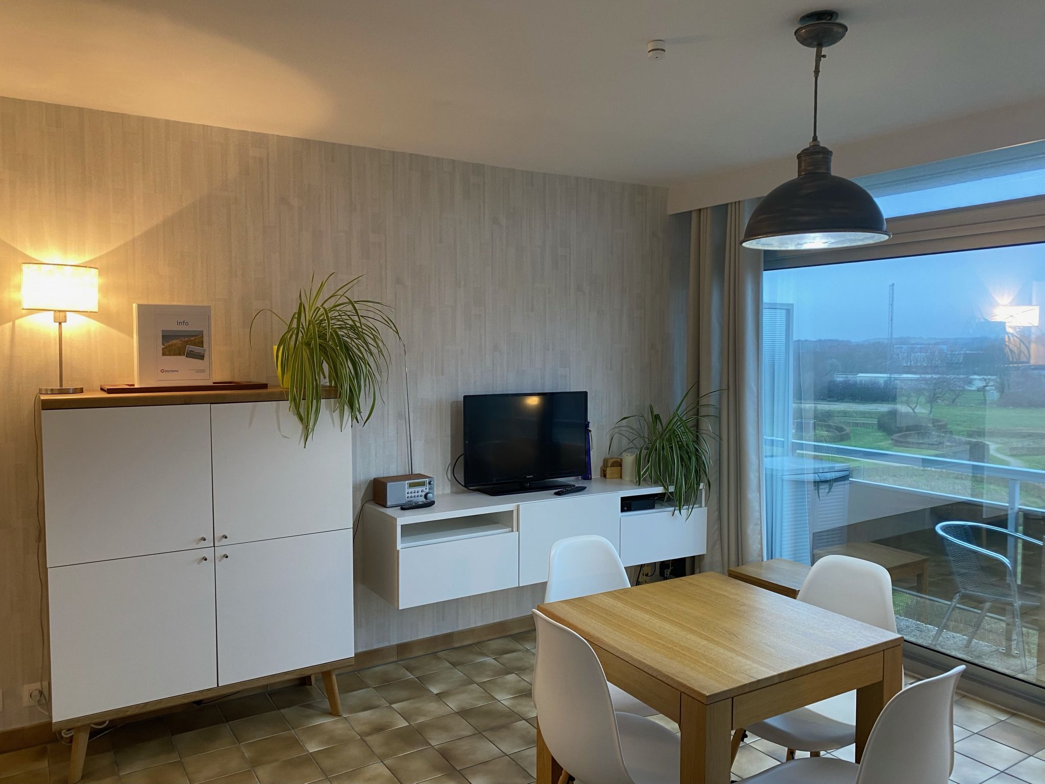 "Ochtendstemming", 1-Zimmer-Studio 25 m2 im 4. Stock, Ostlage. Hell, teilweise renoviert im Jahre 2020, komfortabel und gemütlich eingerichtet: Eingang. Wohn-/Esszimmer mit 1 Diwanbett (140 cm, Länge 200 cm), Esstisch, TV und Internationale TV-Sender (Flachbildschirm), Radio. Kochnische (Geschirrspüler, 4 Induktionskochplatten, Toaster, Wasserkocher, elektrische Kaffeemaschine, Dampfgarer, Kombinationsmikrowelle). Bad/WC. E-Heizung, Boiler (100 Liter). Balkon 3 m2, Ostlage. Balkonmöbel. Zur Verfügung: Bügeleisen, Haartrockner. Internet (Wireless LAN, gratis). Bitte beachten: Nichtraucher-Haus, kein Parkplatz. 1 kleines Haustier/Hund erlaubt. Rauchmelder, Feuerlöscher.