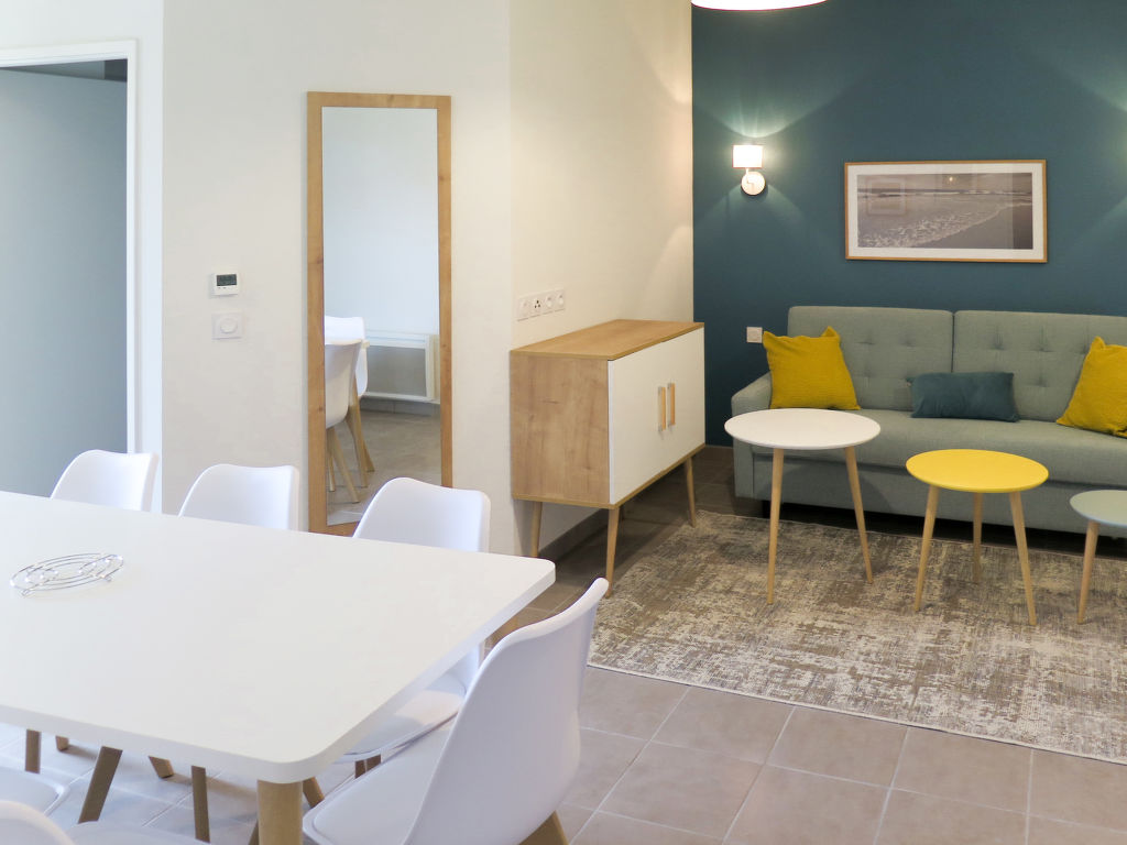 "Le Marché de la Plage (MIZ093)", 3-Zimmer-Wohnung 53 m2. Modern und gemütlich eingerichtet: Wohn-/Schlafzimmer mit 1 Doppeldiwanbett, Esstisch und Sat-TV. 1 Zimmer mit 1 franz. Bett (160 cm). 1 kleines Zimmer mit 1 x 2 Etagenbetten (80 cm). Offene Schlafnische mit 1 x 2 Etagenbetten (80 cm). Kochnische (Geschirrspüler, 4 Glaskeramikherd Platten, Toaster, Wasserkocher, Tiefkühler, elektrische Kaffeemaschine, Kombinationsmikrowelle). Dusche/WC. E-Heizung. Kleiner Balkon oder kleine Terrasse überdacht. Zur Verfügung: Internet (Wireless LAN, gratis). Bitte beachten: Nichtraucher-Unterkunft. Maximal 1 Haustier/Hund erlaubt. Rauchmelder, Feuerlöscher. Beim Mietobjekt handelt es sich um ein Typenhaus bzw. Um eine Typenwohnung. Bedingt durch das Coronavirus (COVID-19) ergreift diese Unterkunft Maßnahmen, um die Sicherheit der Gäste und Mitarbeiter zu gewährleisten. Einige Services und Einrichtungen können daher nur eingeschränkt bzw. teilweise auch gar nicht nutzbar sein.