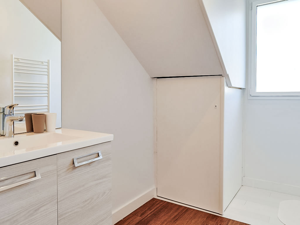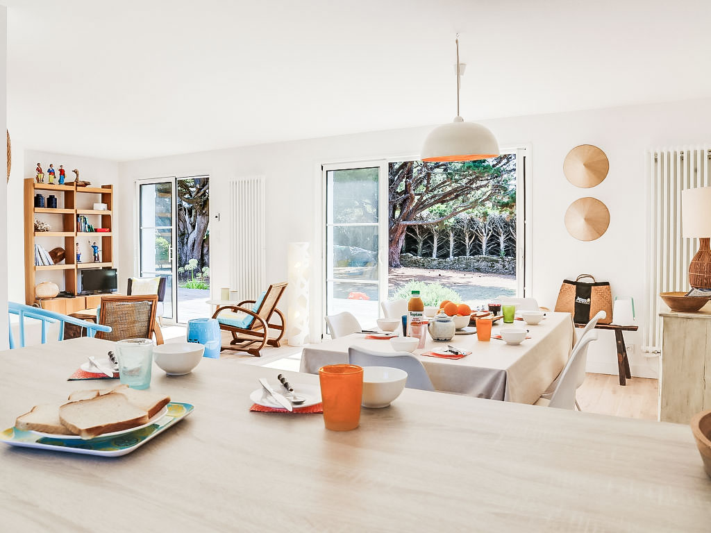 St Pierre Quiberon 4 km von Quiberon: Schönes Einfamilienhaus "Les Pins du Rohu", renoviert im Jahre 2013. Am Ortsrand, 1.4 km vom Zentrum von St Pierre Quiberon, 350 m vom Meer, 350 m vom Strand. Zur Alleinbenutzung: gepflegter Garten 1'000 m2 (eingezäunt), Parkplatz auf dem Grundstück. Einkaufsgeschäft 1.4 km, Lebensmittelgeschäft 1.4 km, Supermarkt 2.5 km, Sandstrand "Plage de Kerbourgnec" 350 m. Golfplatz (18 Loch) 18 km, Surfschule 6 km, Segelschule 500 m, Reitstall 2 km. Nahe gelegene Sehenswürdigkeiten: Presqu'ile de Quiberon, Belle ile en Mer, Houat, Hoedic, Carnac et les Alignments 12 km, La Trinité sur Mer 16 km, Vannes 35 km, lorient 55 km.