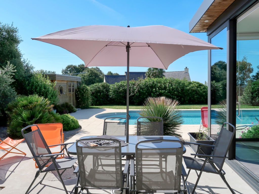 Das Ferienhaus steht in einem Wohngebiet, 4,5 km außerhalb von Cast. Erste Einkaufsmöglichkeiten in Quéménéven 1,5 km, Supermarkt in Briec 11 km. Nächste Sandstrände in Sainte Anne La Palud (16 km) und Pentrez-Plage (21 km, mit Wassersportmöglichkeiten). Zum Haus gehört ein ca. 2000 m² großes, teils von Hecke umgebenes Gartengrundstück mit Rasenfläche und Bäumen. Beheizbarer Pool (10 x 5 m, 1,20 - 2 m tief, 30.05.20-12.09.20) mit umlaufender Terrasse. Gartenmobliar, 6 Liegestühlen, Sonnenschirm und gemauerter Grill. 2 Parkmöglichkeiten auf dem Grundstück. Freundliche Einrichtung mit Fliesen- und Parkettboden. Sat-TV. Internetzugang (WLAN, inklusive). Waschmaschine, Trockner, Bügeleisen/-brett. Abstellraum (Garage). Elektroheizung und Wärmepumpenheizung. Hinweis: Rauchen ist im Haus nicht gestattet.