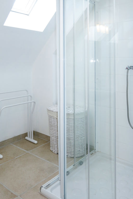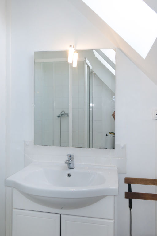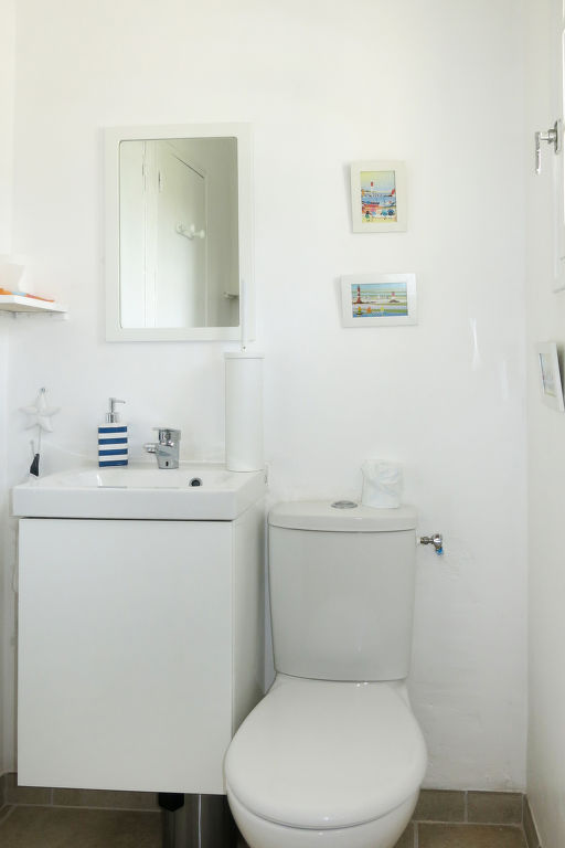 7-Zimmer-Haus, 2 Etagen, ca. 150 m². Über Treppe (6 Stufen) ins Hochparterre: Wohnraum mit Sitzgruppe, Kamin (nur Dekoration) und Essplatz, 2x Terrassenausgang. Küche (3 Induktionsfelder, Backofen, Mikrowelle, Geschirrspüler, Kühl-/Gefrierkombination, Kaffeemaschine, Kaffeekapselmaschine, Wasserkocher, Toaster), Gartenausgang. Schlafzimmer mit Doppelbettcouch, Terrassenausgang. Bad. Dusche/WC. Sep.WC. Obergeschoss (Dachschräge, teils eingeschränkte Stehhöhe): Schlafzimmer mit franz. Bett und etwas Meerblick. Schlafzimmer mit Etagenbett. Zweibettzimmer (Betten 0,80 m breit und zusammenstellbar). Schlafzimmer mit Einzel- und Ausziehbett (ausgezogen 1,60 m breit). Einzelzimmer (Bett 0,80 m breit, 1,60-1,60 m lang) für Kind bis 12 Jahre. Dusche. Sep.WC. Maximale Belegung: 8 Personen. Inserat einer Privatperson nach Artikel 155, IV, CGI.