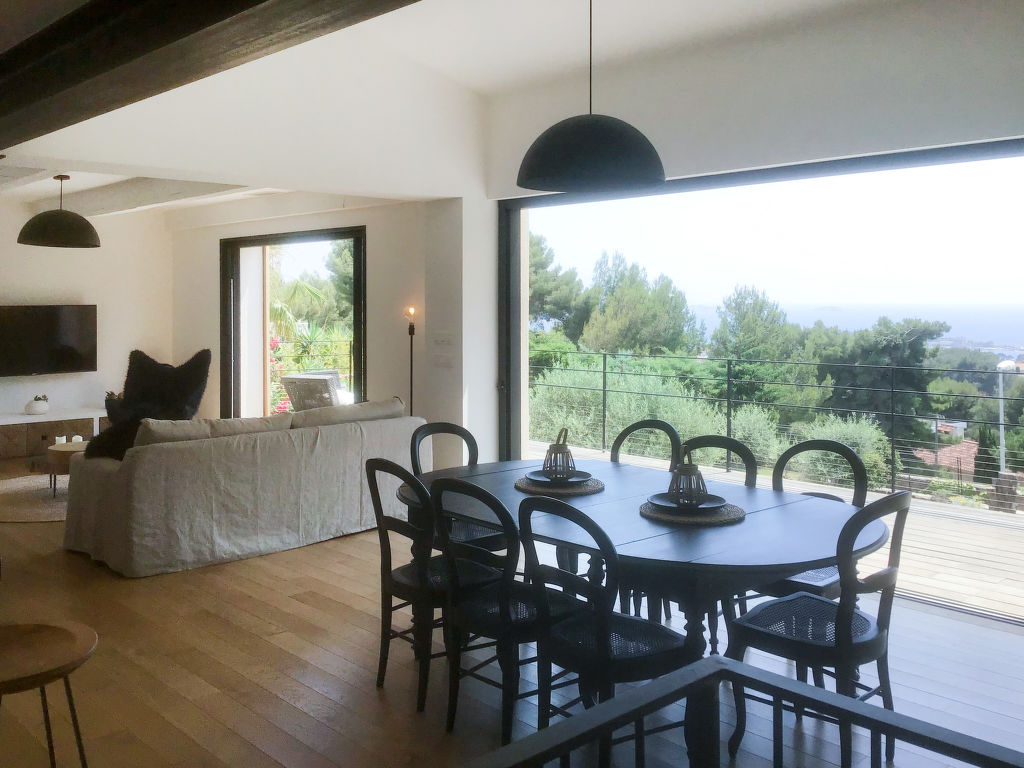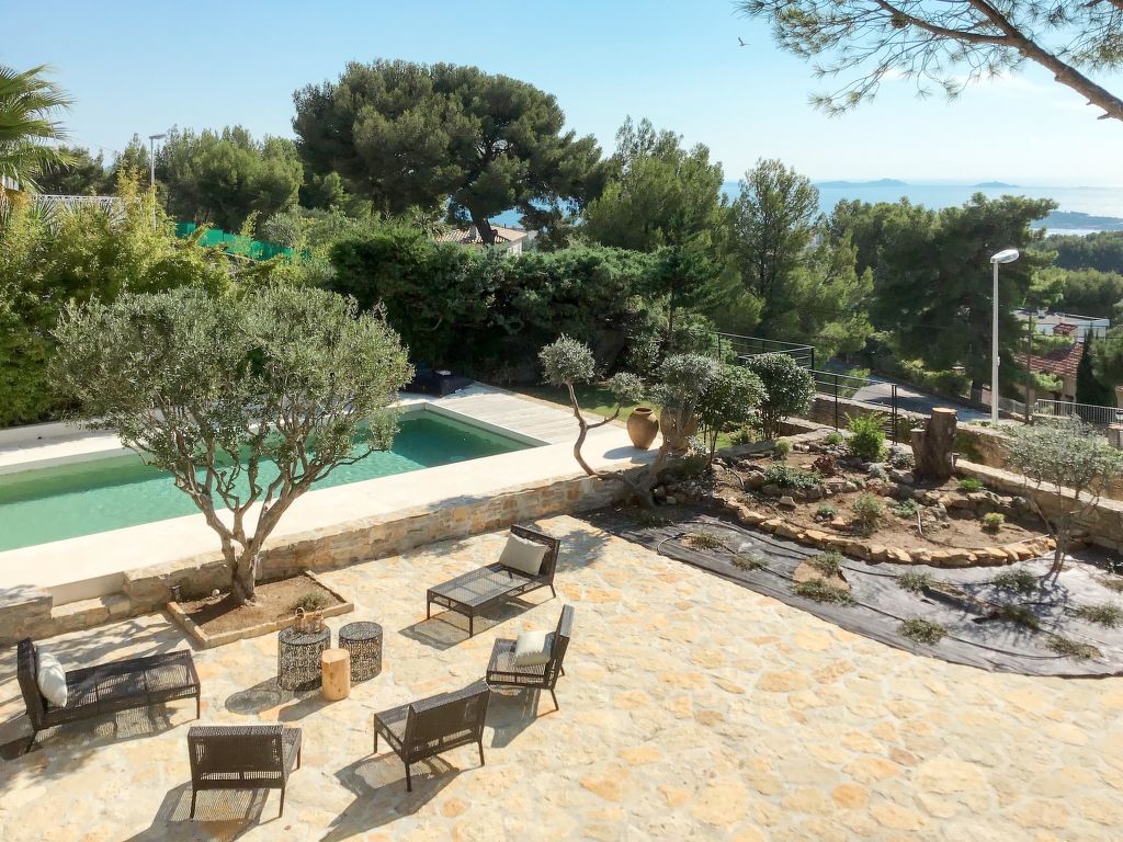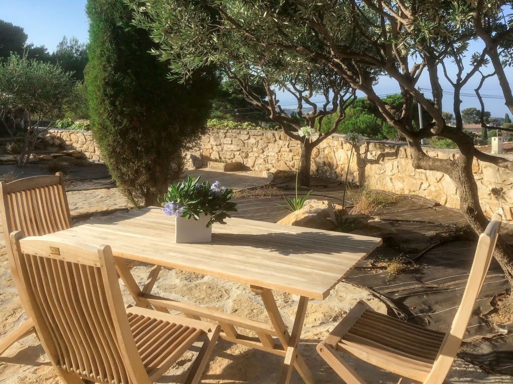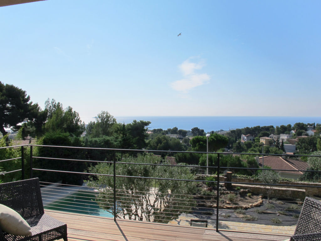 Modernes, schönes, komfortables Einfamilienhaus "Rêve d'Eté", renoviert im Jahre 2018. 2 km vom Zentrum von Bandol, 8.5 km vom Zentrum von Sanary-sur-Mer, 20 km vom Zentrum von Toulon, am Hang, im Villenviertel, 2.6 km vom Meer, 2.6 km vom Strand. Zur Alleinbenutzung: schöner, gepflegter Terrassengarten, 1'050 m2 (eingezäunt) mit Pflanzen und Bäumen, Schwimmbad geschützt (8 x 4 m, 140 - 150 cm tief, 01.01.-31.12.). Aussendusche, Terrasse. Treppenweg (19 Stufen) bis zum Haus. Parkplatz, Einzelgarage, öffentliche Parkplätze auf der Strasse. Einkaufsgeschäft 1 km, Supermarkt 1 km, Sandstrand 2.6 km. Golfplatz (18 Loch) 3.3 km.