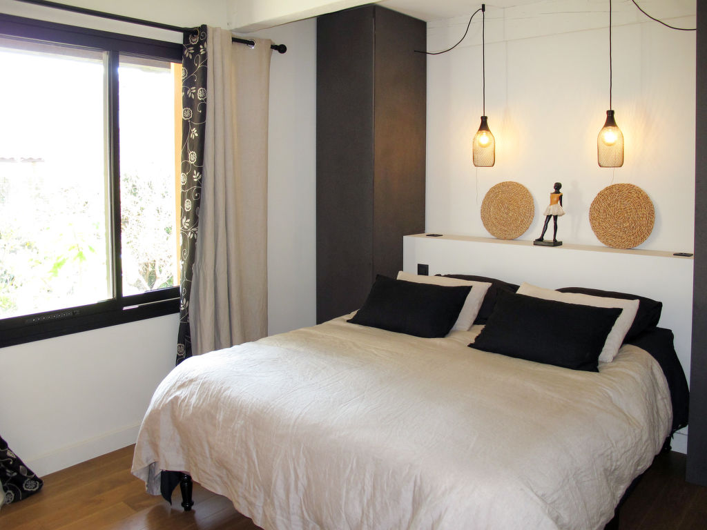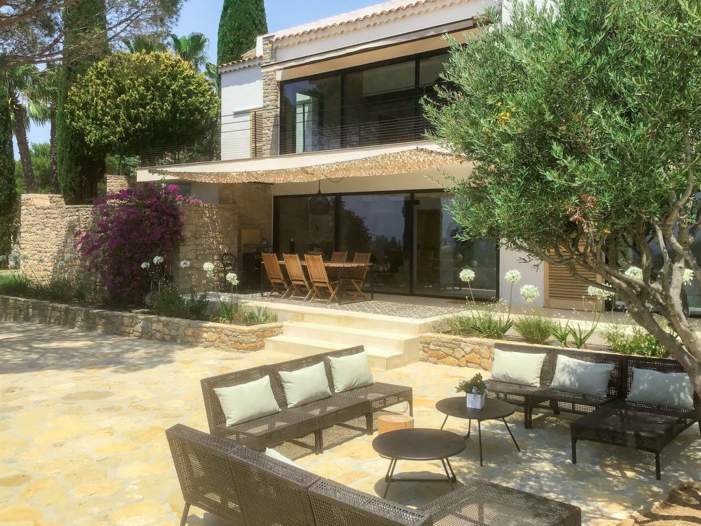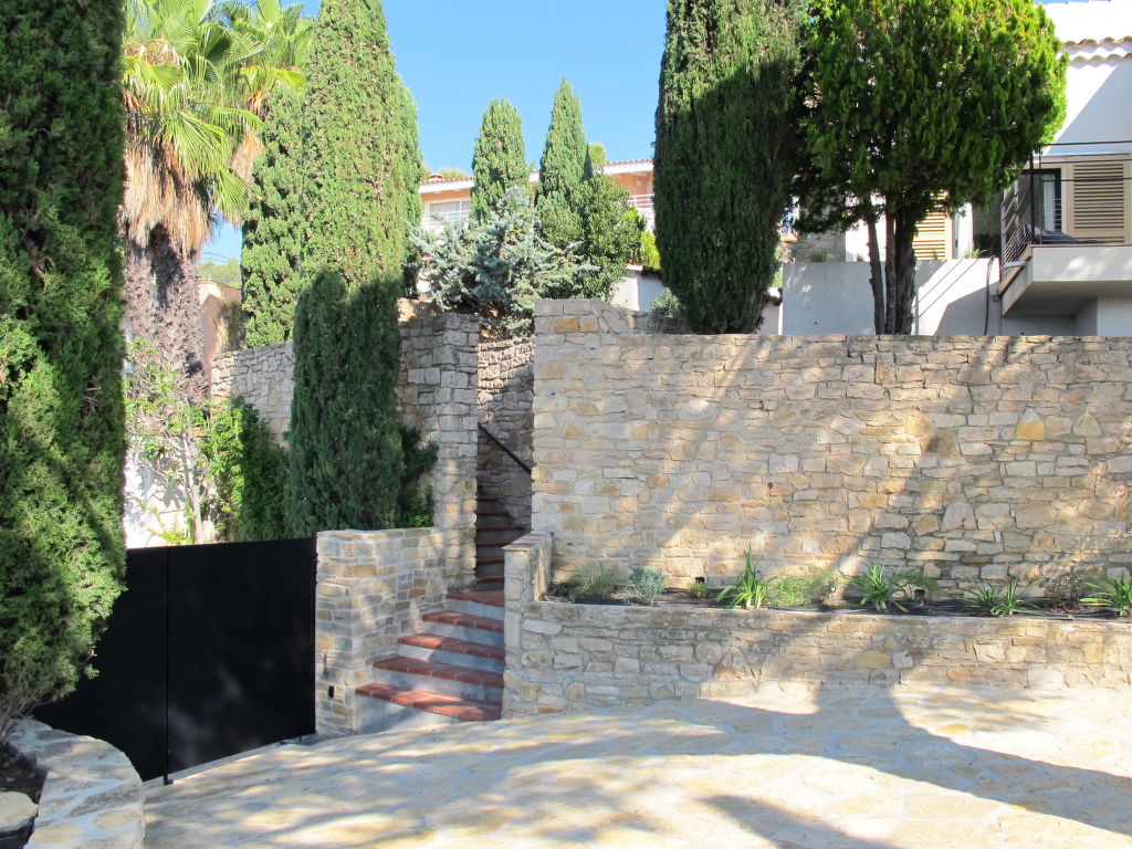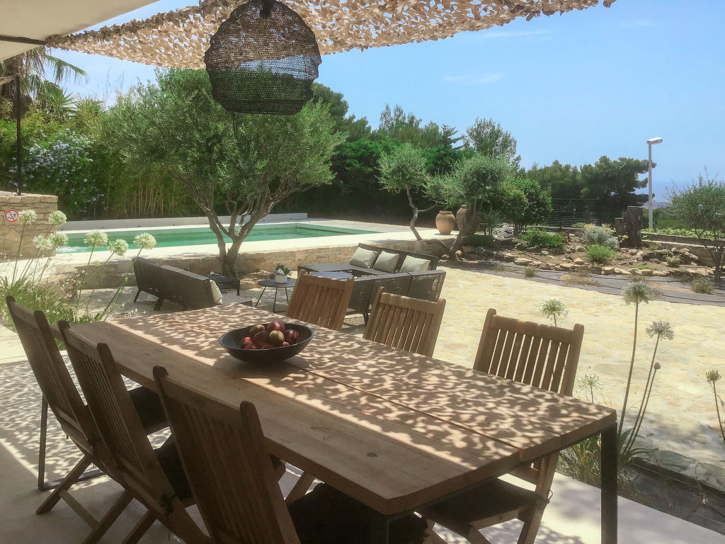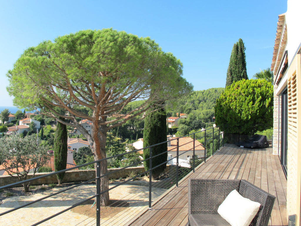 Modernes, schönes, komfortables Einfamilienhaus "Rêve d'Eté", renoviert im Jahre 2018. 2 km vom Zentrum von Bandol, 8.5 km vom Zentrum von Sanary-sur-Mer, 20 km vom Zentrum von Toulon, am Hang, im Villenviertel, 2.6 km vom Meer, 2.6 km vom Strand. Zur Alleinbenutzung: schöner, gepflegter Terrassengarten, 1'050 m2 (eingezäunt) mit Pflanzen und Bäumen, Schwimmbad geschützt (8 x 4 m, 140 - 150 cm tief, 01.01.-31.12.). Aussendusche, Terrasse. Treppenweg (19 Stufen) bis zum Haus. Parkplatz, Einzelgarage, öffentliche Parkplätze auf der Strasse. Einkaufsgeschäft 1 km, Supermarkt 1 km, Sandstrand 2.6 km. Golfplatz (18 Loch) 3.3 km.