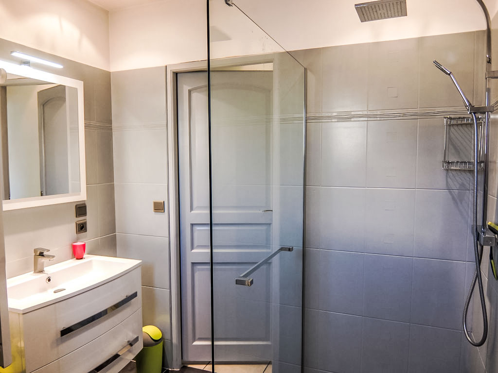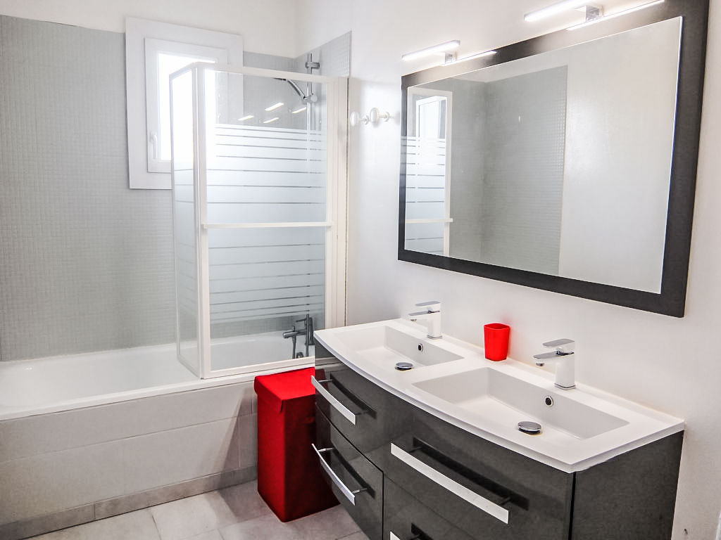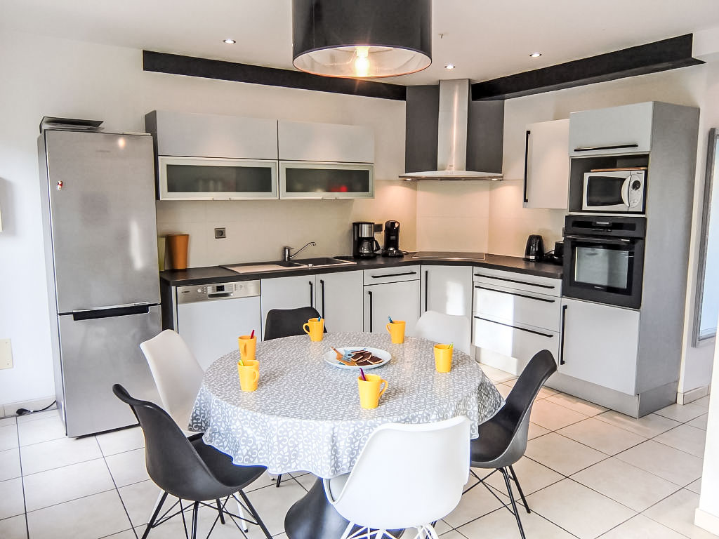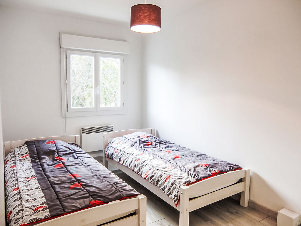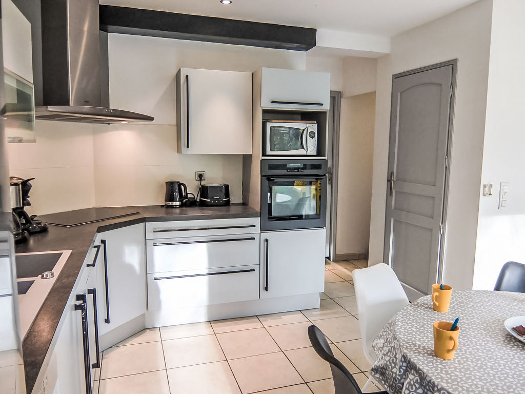 5-Zimmer-Reihenhaus 120 m2 auf 2 Stockwerken. Komfortabel eingerichtet: Wohn-/Esszimmer mit TV und Klimaanlage. Ausgang zum Garten, zur Terrasse. Offene Küche (Backofen, Geschirrspüler, 3 Induktionskochplatten, Mikrowelle, Tiefkühler). Dusche/WC. Obergeschoss: Spielzimmer. Ausgang zum Balkon. 2 Zimmer, jedes Zimmer mit 1 franz. Bett (140 cm). 1 Zimmer mit 2 Betten (90 cm). Bad, sep. WC. Terrasse 40 m2, Westlage. Terrassenmöbel, Gartengrill. Zur Verfügung: Waschmaschine, Babybett. Internet (Wireless LAN, gratis). Bitte beachten: Nichtraucher-Haus. Rauchmelder. Inserat einer Privatperson nach Artikel 155, IV, CGI.