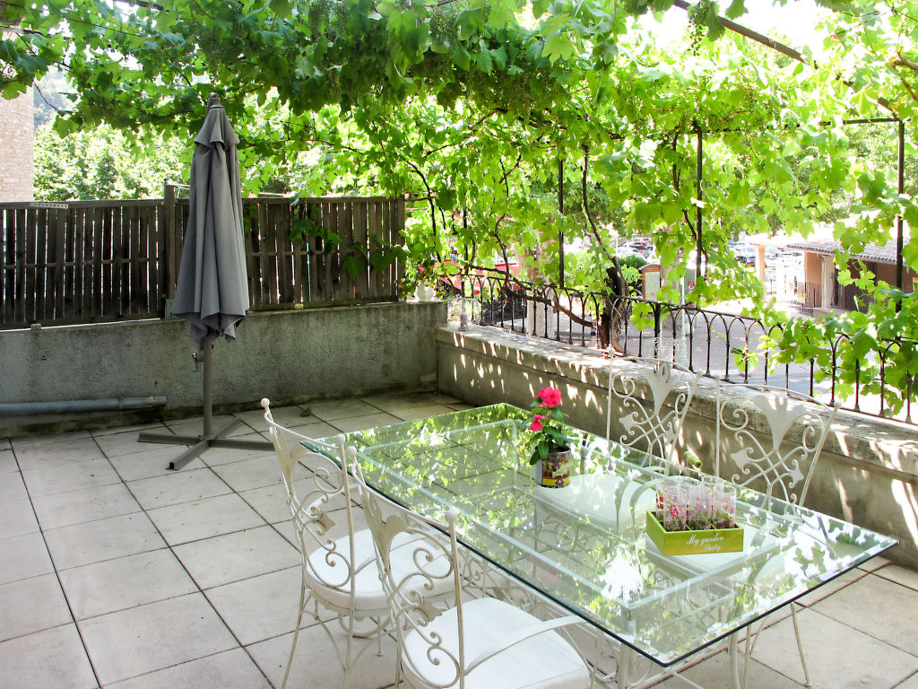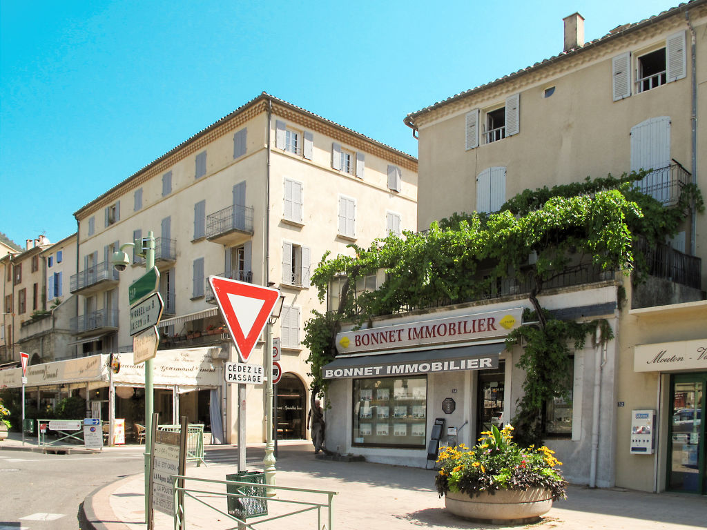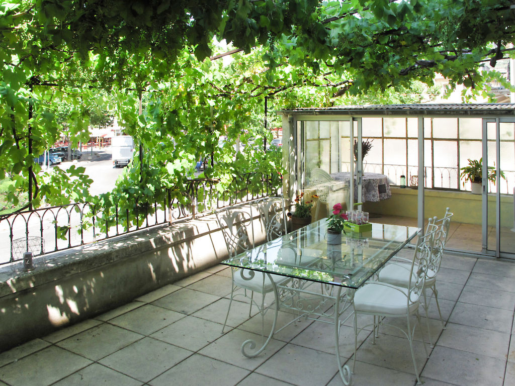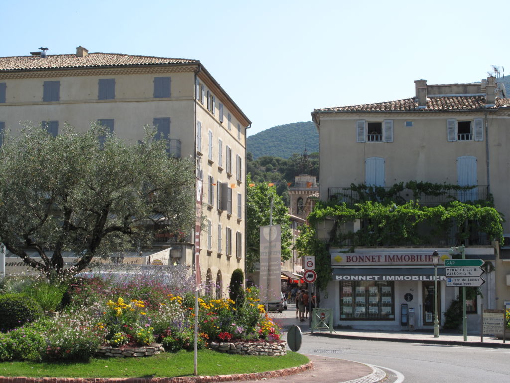 Die 2016 renovierte Ferienwohnung liegt in einem Mehrfamilienhaus, einem alten Stadthaus, in der Ortsmitte von Nyons und in unmittelbarer Nachbarschaft zu Marktplatz (ca. 10 m), Geschäften, Bars und Restaurants. Im Erdgeschoss des Hauses ein Immobilienbüro. Be- und Entladen vor dem Haus möglich, reservierter, privater, kostenfreier Parkplatz in ca. 300 m Entfernung. Im Haus Aufzug. Die Wohnung hat einen ca. 35 m² großen Balkon mit weinberankter Pergola, Mobiliar und Elektrogrill. Gute, ansprechende Einrichtung. Fliesen- und Parkettboden. Sat-TV (deutsche Programme). Internetzugang (WLAN, inklusive). Waschmaschine. Gas-Zentralheizung. Im Wohnraum Klimaanlage.