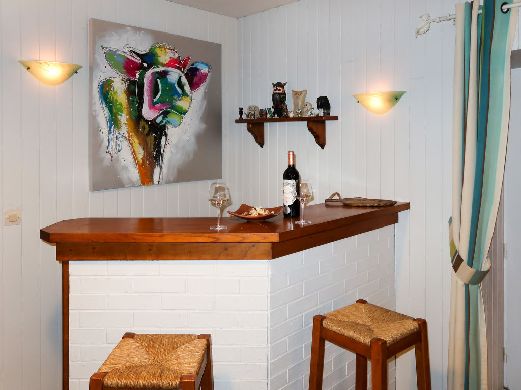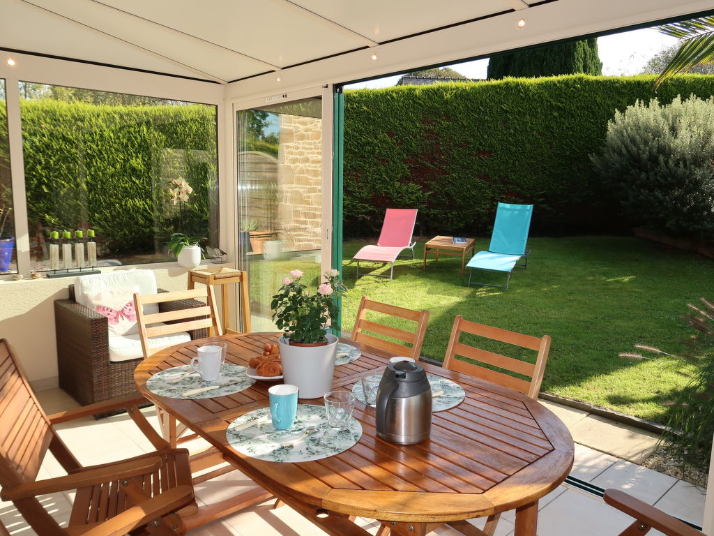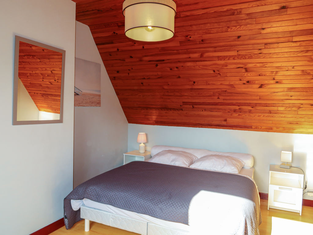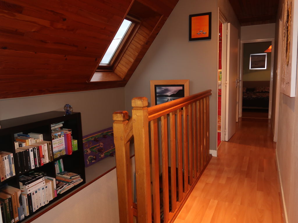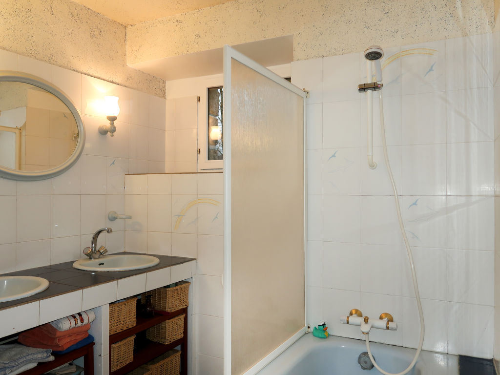 5½-Zimmer-Haus, 2 Etagen, ca. 130 m². Erdgeschoss: Wohnraum mit Sitzgruppe, Kamin (Einsatz), Essplatz und Zugang zu verglaster Veranda mit Sitzgruppe, Essplatz, Ausgang ins Freie. Zum Wohnraum offene, durch Theke abgeteilte Küche (3 Flammen, 1 Ceranfeld, Backofen, Mikrowelle, Geschirrspüler, Kaffeemaschine, Wasserkocher, Toaster, Kühl-/Gefrierkombination im Abstellraum) mit Essplatz für 5 Personen (teils Hocker). Bad/Doppelwaschbecken. Sep.WC. Vom Wohnraum Treppe ins Obergeschoss (Dachschräge, Dachfenster): 2 Schlafzimmer, jeweils mit franz. Bett. Schlafzimmer mit franz. Bett (1,60 m breit). Schlafzimmer mit franz. Bett (1,80 m breit). Dusche. Sep.WC. Inserat einer Privatperson nach Artikel 155, IV, CGI.