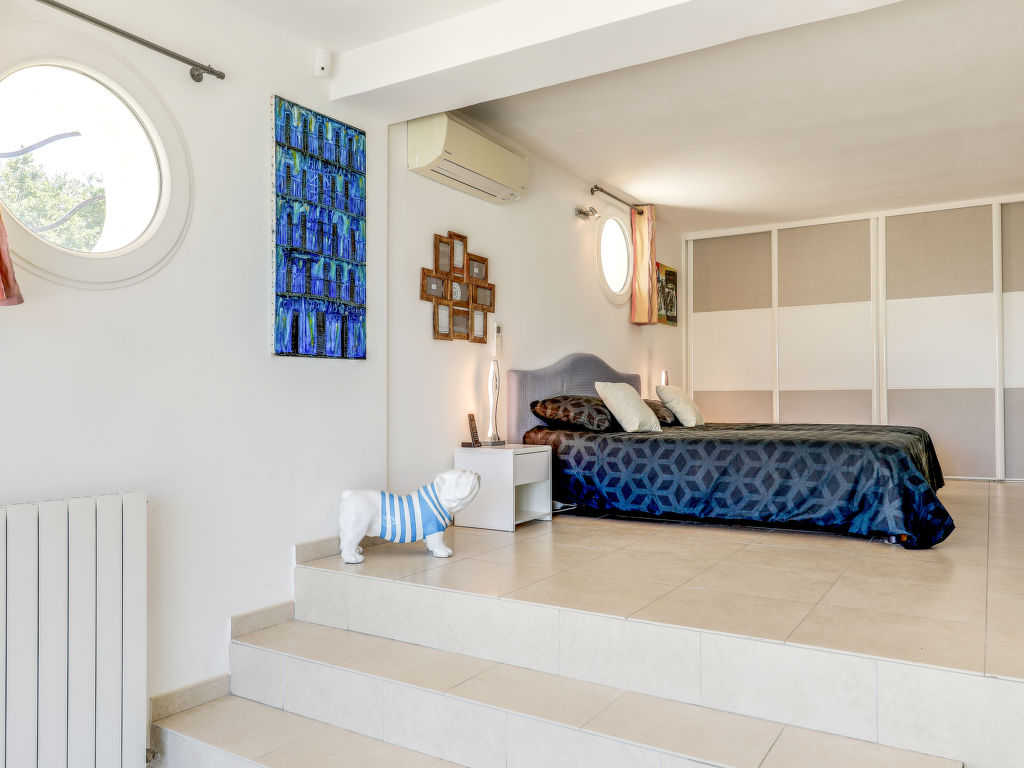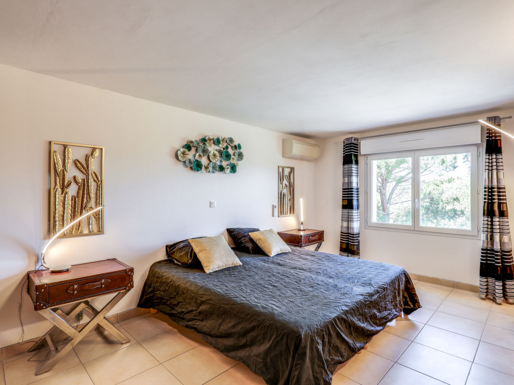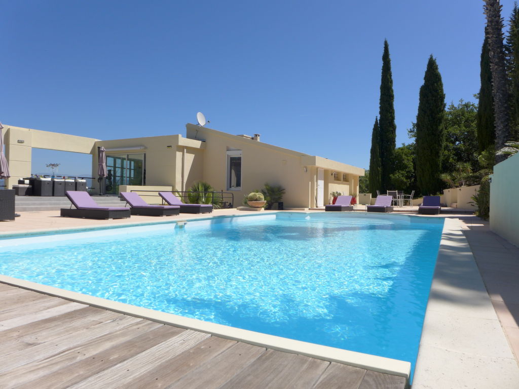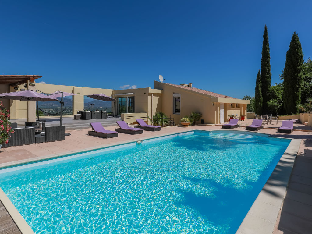 7-Zimmer-Haus 300 m2 auf 2 Stockwerken. Komfortabel und modern eingerichtet: Eingang mit Dusche/WC. Salon mit TV (Flachbildschirm), Klimaanlage. Ausgang zur Terrasse. Grosses Wohn-/Esszimmer mit Panoramafenster mit Klimaanlage. Ausgang zur Terrasse, zum Schwimmbad. Offene Küche (Backofen, Geschirrspüler, 4 Induktionskochplatten, Mikrowelle, Tiefkühler, elektrische Kaffeemaschine). Ausgang zum Schwimmbad. Unteres Geschoss: 1 grosses Zimmer mit begehbarer Kleiderschrank mit 1 franz. Bett (1 x 180 cm, Länge 200 cm), Bad, sep. WC, Bad/Dusche, Doppelwaschbecken, Sprudelbad und Klimaanlage. Ausgang zum Garten. 1 Zimmer mit 1 franz. Bett (1 x 160 cm, Länge 200 cm). 1 Zimmer mit 1 franz. Bett (1 x 140 cm, Länge 200 cm), Waschbecken. Ausgang zur Terrasse, zum Schwimmbad. Dusche/WC. Terrasse 100 m2, Südwestlage Terrasse 70 m2, Ostlage, Garten. Terrassenmöbel, Gartengrill, Liegestühle (6). Sehr schöne Panoramasicht auf die Landschaft und den Wald. Zur Verfügung: Waschmaschine, Wäschetrockner, Bügeleisen, Haartrockner. Internet (Wireless LAN, gratis). Parkplatz (eingezäunt, 4 Autos). Bitte beachten: für Kleinkinder nicht geeignet. 1 Haustier/Hund erlaubt. Rauchmelder. Nebengebäude (Zugang über Aussentreppe): 1 Schlafzimmer mit 1 Doppelbett (180x200), Klimaanlage. 1 Zimmer mit 2 Betten (2x 90x200), Klimaanlage. Bad/separates WC. Inserat einer Privatperson nach Artikel 155, IV, CGI. 8310700023358
