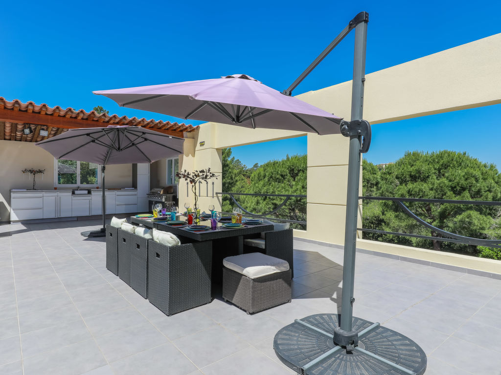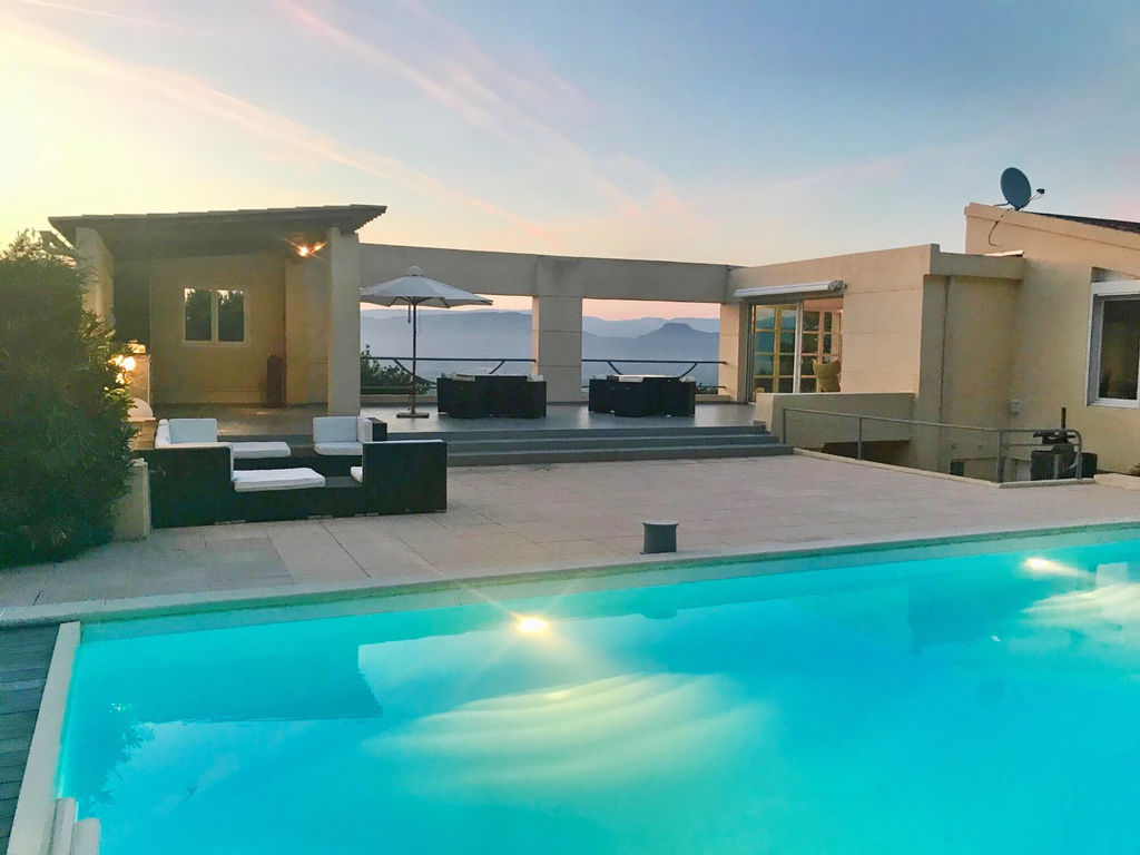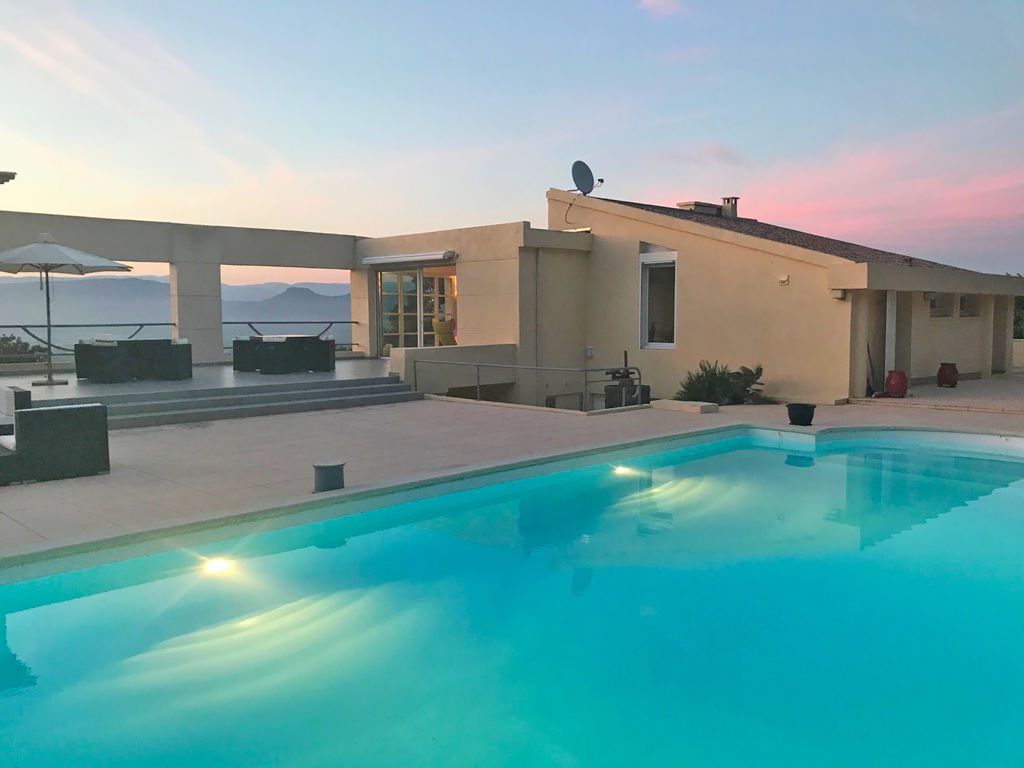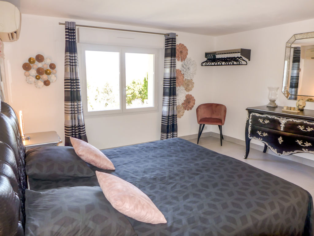 7-Zimmer-Haus 300 m2 auf 2 Stockwerken. Komfortabel und modern eingerichtet: Eingang mit Dusche/WC. Salon mit TV (Flachbildschirm), Klimaanlage. Ausgang zur Terrasse. Grosses Wohn-/Esszimmer mit Panoramafenster mit Klimaanlage. Ausgang zur Terrasse, zum Schwimmbad. Offene Küche (Backofen, Geschirrspüler, 4 Induktionskochplatten, Mikrowelle, Tiefkühler, elektrische Kaffeemaschine). Ausgang zum Schwimmbad. Unteres Geschoss: 1 grosses Zimmer mit begehbarer Kleiderschrank mit 1 franz. Bett (1 x 180 cm, Länge 200 cm), Bad, sep. WC, Bad/Dusche, Doppelwaschbecken, Sprudelbad und Klimaanlage. Ausgang zum Garten. 1 Zimmer mit 1 franz. Bett (1 x 160 cm, Länge 200 cm). 1 Zimmer mit 1 franz. Bett (1 x 140 cm, Länge 200 cm), Waschbecken. Ausgang zur Terrasse, zum Schwimmbad. Dusche/WC. Terrasse 100 m2, Südwestlage Terrasse 70 m2, Ostlage, Garten. Terrassenmöbel, Gartengrill, Liegestühle (6). Sehr schöne Panoramasicht auf die Landschaft und den Wald. Zur Verfügung: Waschmaschine, Wäschetrockner, Bügeleisen, Haartrockner. Internet (Wireless LAN, gratis). Parkplatz (eingezäunt, 4 Autos). Bitte beachten: für Kleinkinder nicht geeignet. 1 Haustier/Hund erlaubt. Rauchmelder. Nebengebäude (Zugang über Aussentreppe): 1 Schlafzimmer mit 1 Doppelbett (180x200), Klimaanlage. 1 Zimmer mit 2 Betten (2x 90x200), Klimaanlage. Bad/separates WC. Inserat einer Privatperson nach Artikel 155, IV, CGI. 8310700023358
