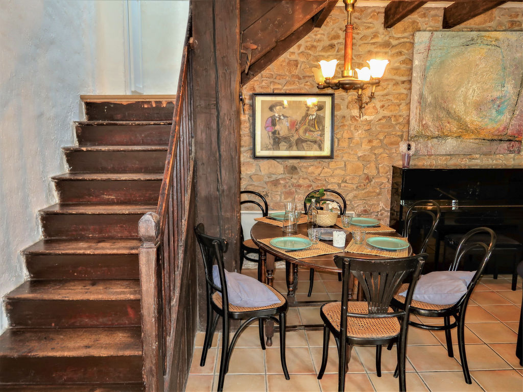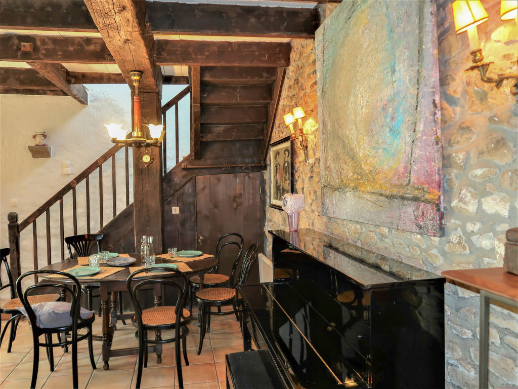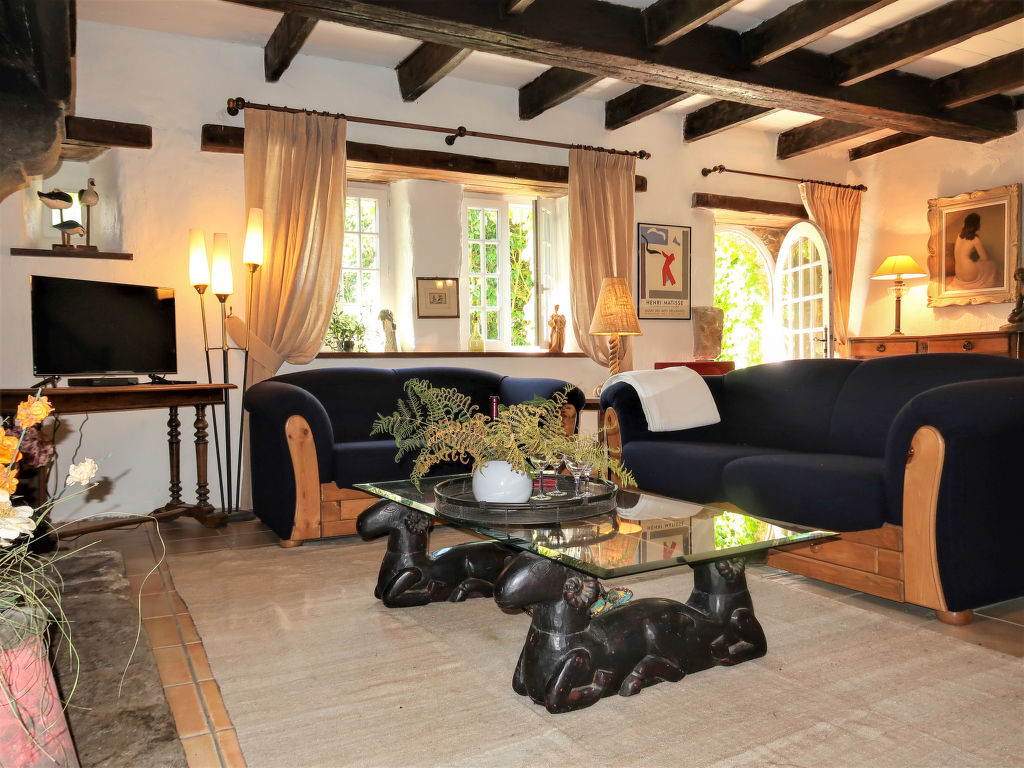 4-Zimmer-Haus, 2 Etagen, ca. 120 m². Erdgeschoss: Wohnraum mit Sitzgruppe, Kamin (Holz inklusive) und Essplatz, Gartenausgang. Küche (4 Flammen, Mini-Backofen, Geschirrspüler, Kühlschrank, Kaffeemaschine, Wasserkocher, Toaster), Gartenausgang. Bad/WC. Von der Küche steile Treppe zu offener Galerie (eingeschränkte Stehhöhe, Dachfenster): zur Treppe offenes Schlafzimmer mit franz. Bett. Vom Wohnraum Treppe ins Dachgeschoss (eingeschränkte Stehhöhe, teils Dachfenster): Schlafzimmer mit franz. Bett. Zweibettzimmer. Sep.WC. Inserat einer Privatperson nach Artikel 155, IV, CGI.