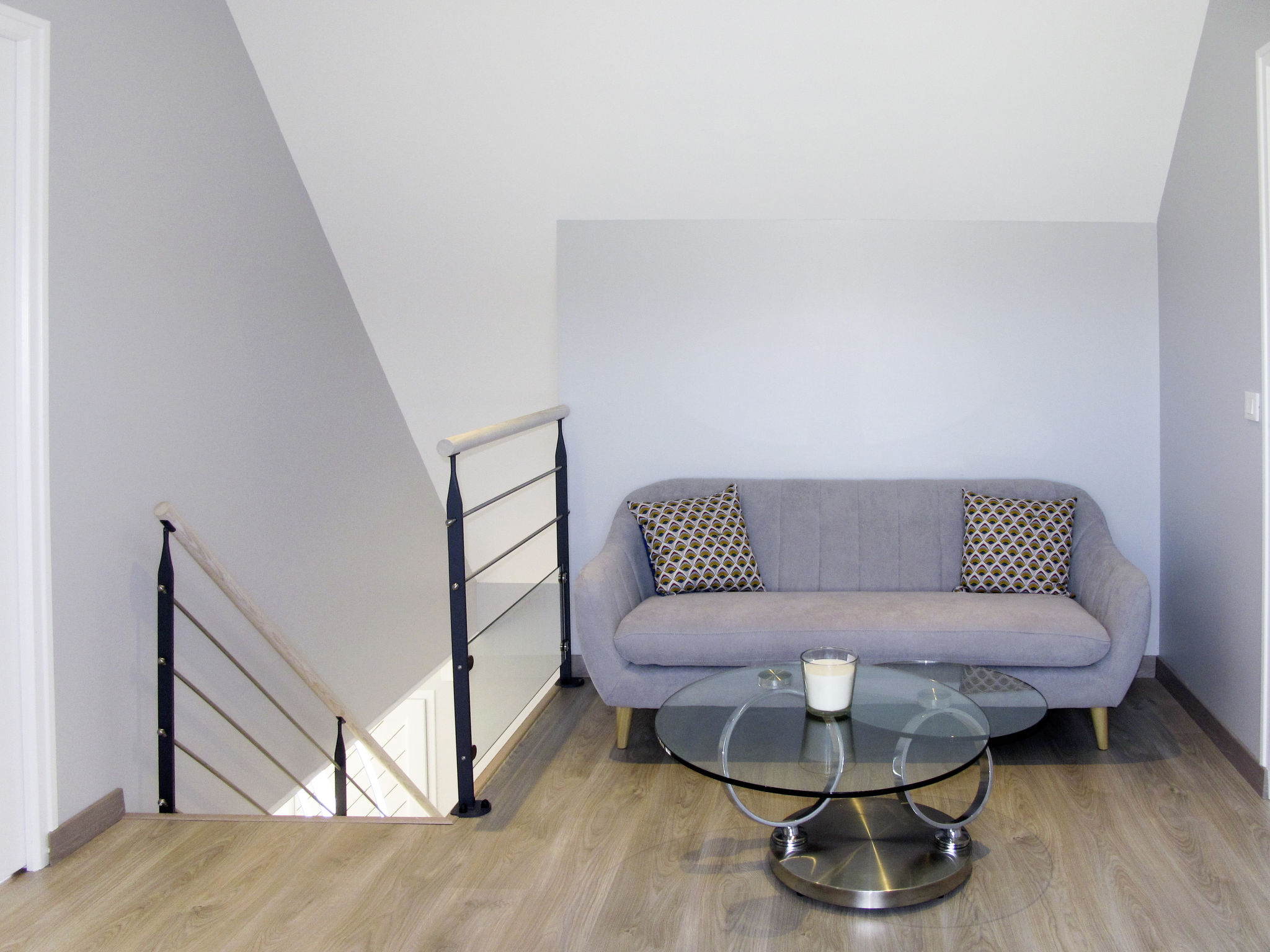 4½-Zimmer-Haus, 2 Etagen, ca. 125 m². Erdgeschoss: Wohnraum mit Sitzgruppe und Essplatz, Ausgang ins Freie, durch Theke (4 Barhocker) abgeteilte Küche (4 Ceranfelder, Backofen, Mikrowelle, Geschirrspüler, Kühl-/Gefrierkombination, Kaffeemaschine, Wasserkocher, Toaster). Schlafzimmer mit franz. Bett. Doppelzimmer. Dusche. Sep.WC. Vom Wohnraum Treppe ins Obergeschoss: offene Galerie mit Sitzcouch. Zweibettzimmer. Bad. Sep.WC. Alle Schlafzimmer mit Ankleideraum. Inserat einer Privatperson nach Artikel 155, IV, CGI.