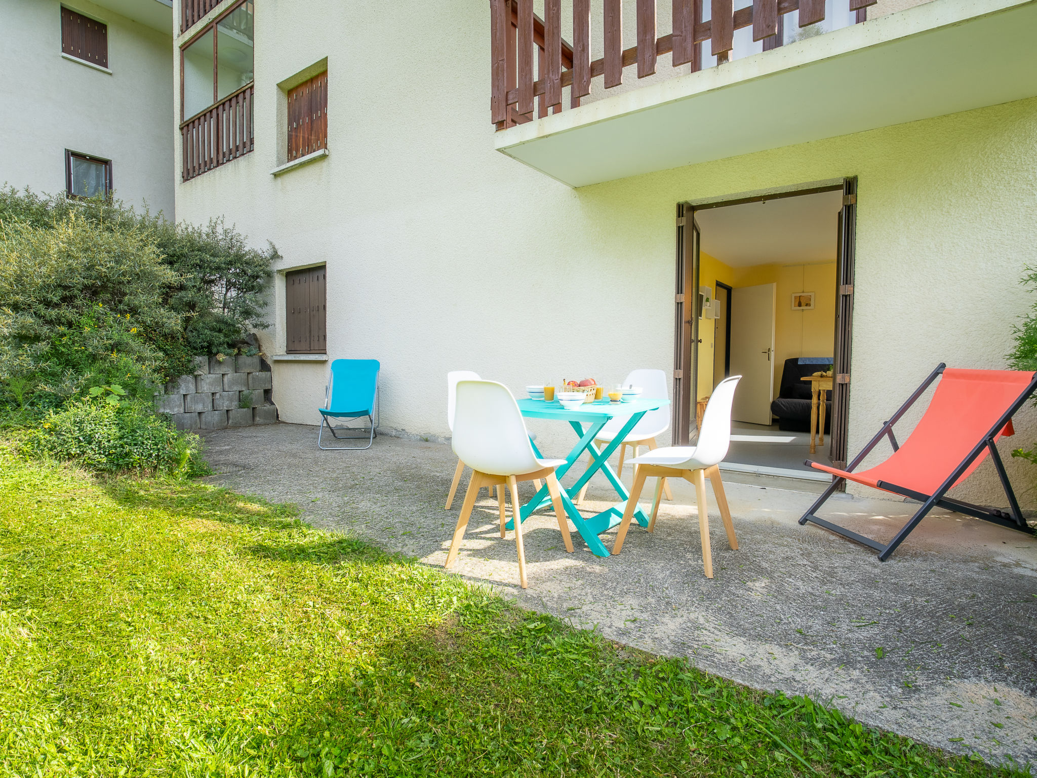 2-Zimmer-Wohnung 30 m2, im Erdgeschoss, Südlage. Schön eingerichtet: Schlafnische mit 1 x 2 Etagenbetten (90 cm, Länge 190 cm). 1 Zimmer mit 1 franz. Bett (140 cm, Länge 190 cm). Wohn-/Esszimmer mit TV und DVD. Ausgang zur Terrasse. Küche (2 Kochplatten, elektrische Kaffeemaschine, Kombinationsmikrowelle). Bad/WC. Grosse Terrasse 20 m2. Sicht auf die Berge und den Garten. Zur Verfügung: Haartrockner. Bitte beachten: Nichtraucher-Unterkunft. Rauchmelder. Inserat einer Privatperson nach Artikel 155, IV, CGI.