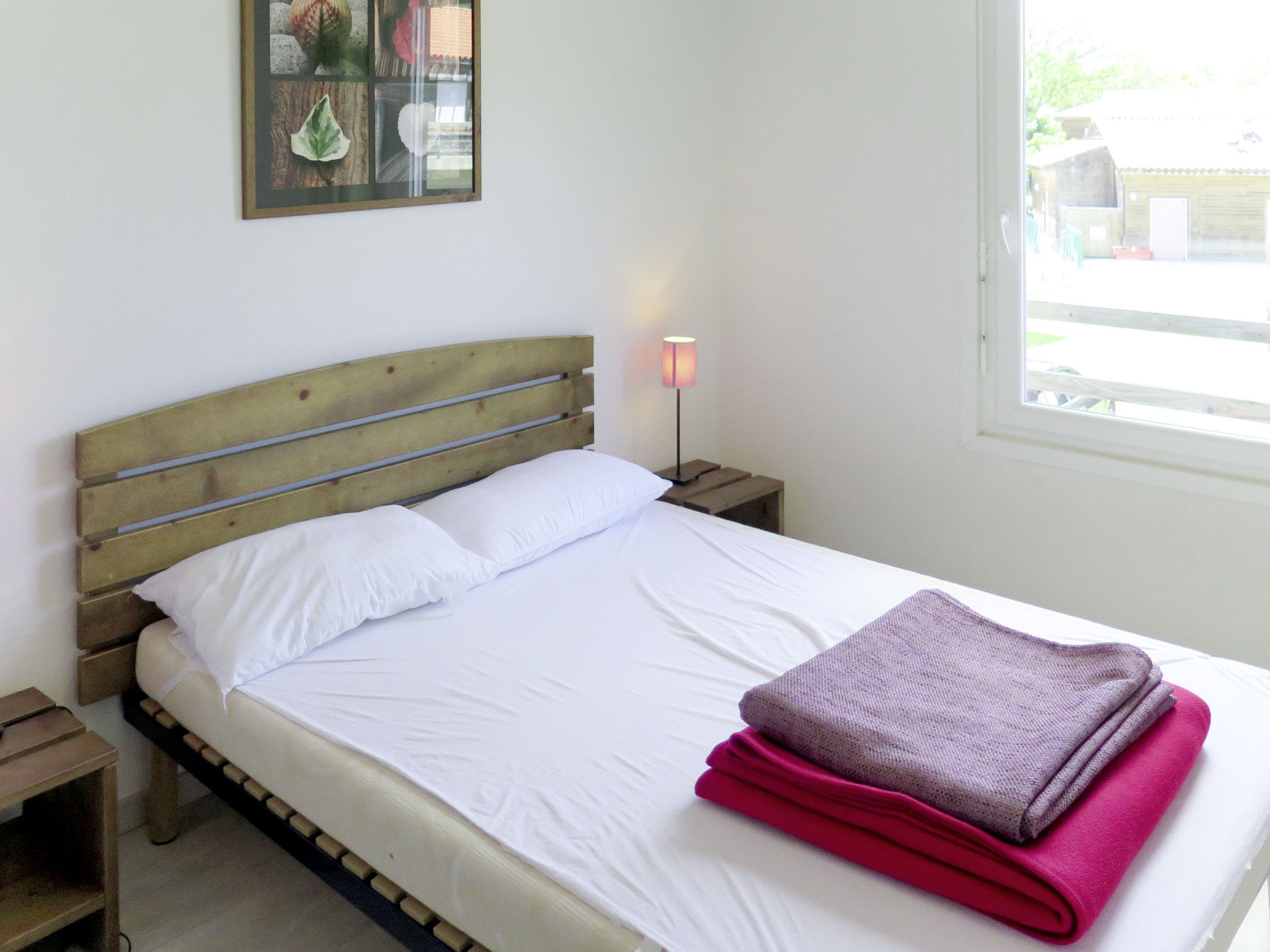 Ferienanlage "Les Terrasses du Lac", auf 2 Stockwerken. 70 Wohnungen in der Residenz. 4 km vom Zentrum von Mimizan, 40 km vom Zentrum von Biscarosse, 110 km vom Zentrum von Bordeaux, 10 km vom Meer, 50 m vom See, im Grünen. Zur Mitbenutzung: Grundstück, Schwimmbad beheizt (15 x 7 m, saisonale Verfügbarkeit: 01.Jul.-31.Aug.). Kinderbecken. In der Anlage: Empfang, Tischtennis, Billard, Tischfussball, Einstellraum für Fahrräder, Waschmaschine, Wäschetrockner (zur Mitbenutzung, extra). Supermarkt 3 km, Sandstrand 10 km, Kieselstrand "Étang d'Aureilhan" 50 m. Radweg 300 m. Bitte beachten: kein Fahrstuhl vorhanden. Das Foto ist nur ein Wohnungsbeispiel. Die Mietobjekte können sich in Wohnfläche, Raumaufteilung, Ausstattung und Einrichtung unterscheiden.