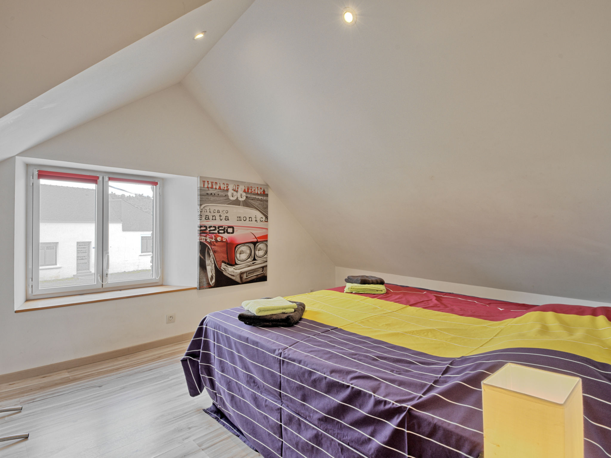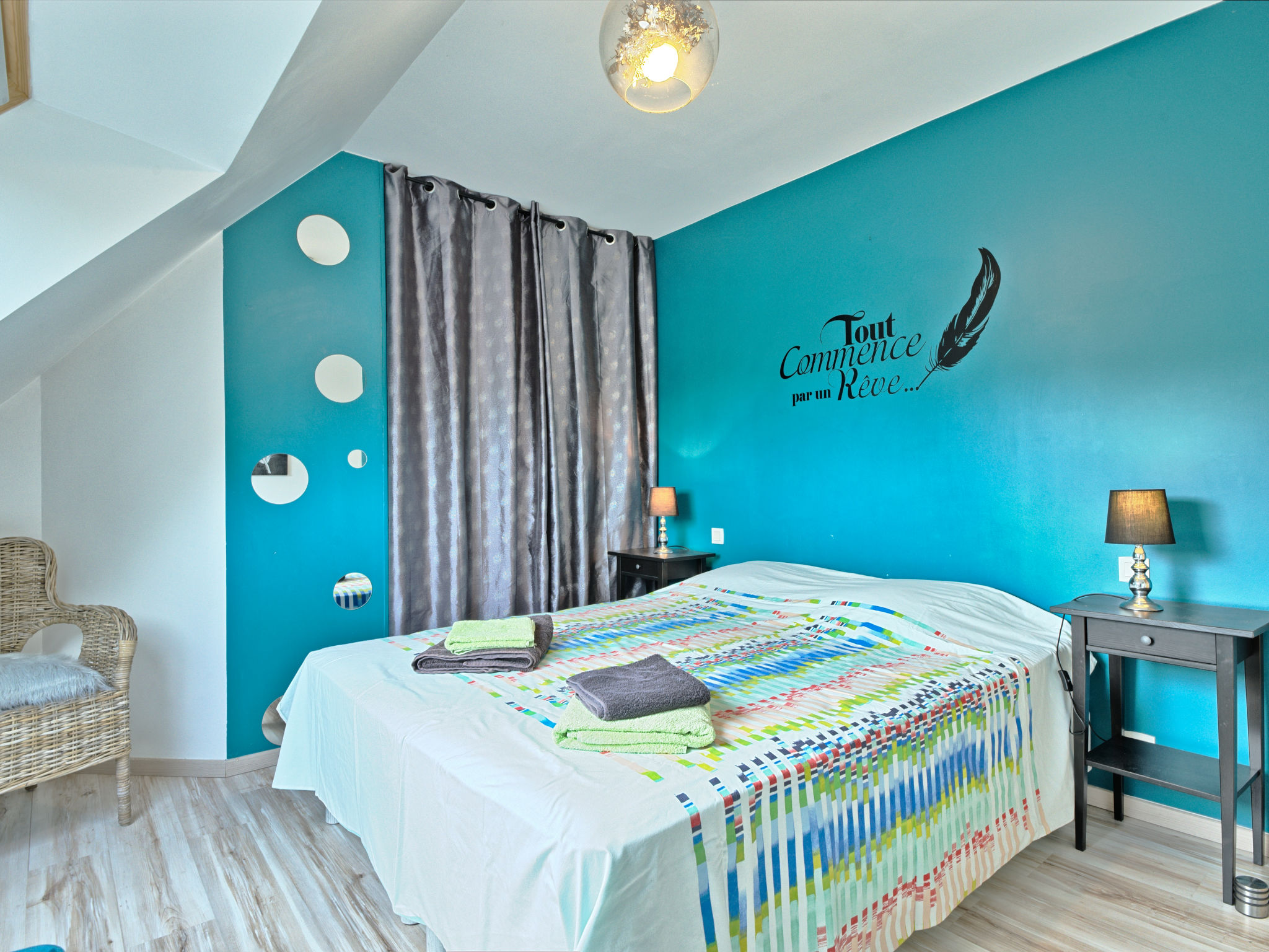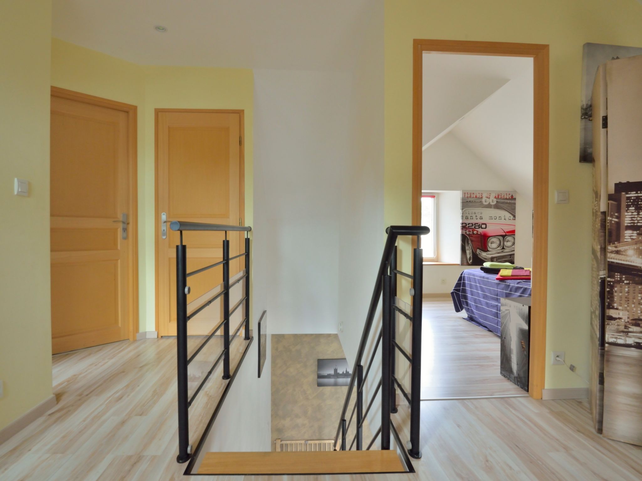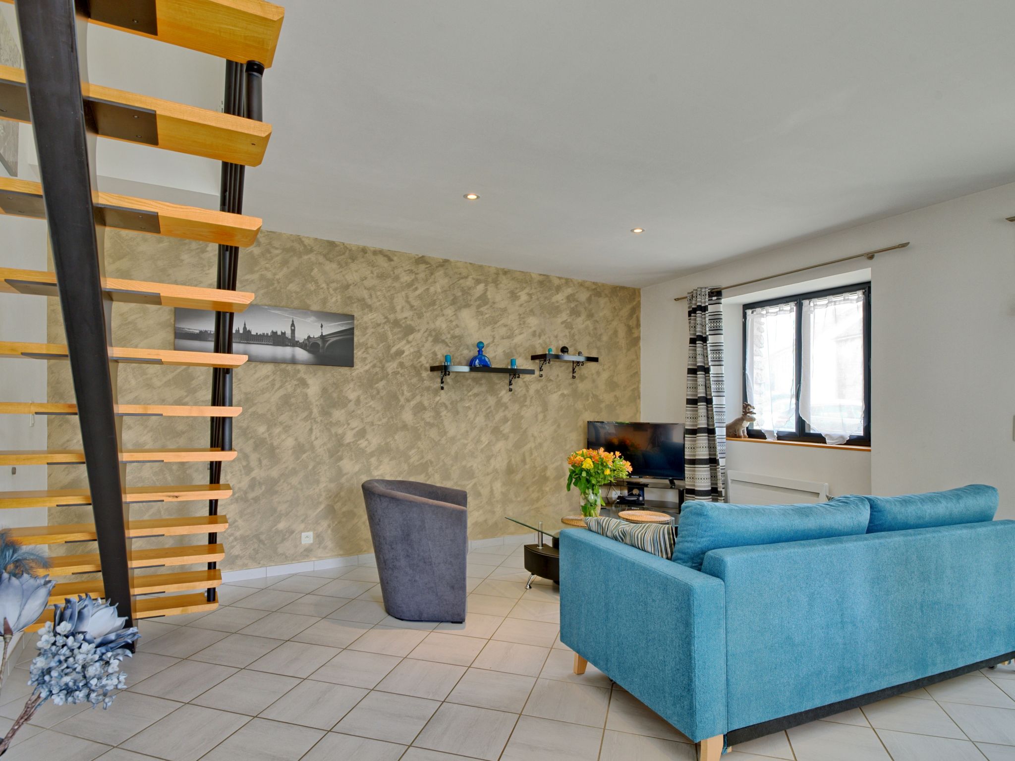 3,5 Zimmer-Haus, 2 Etagen, ca. 70 m². Erdgeschoss: Wohnraum mit Sitzcouch, Essplatz, Gartenausgang. Sep.WC. Zwei Stufen höher: Zum Wohnraum offene Küche (4 Flammen, Backofen, Mikrowelle, Geschirrspüler, Kühl-/Gefrierkombination, Kaffeemaschine, Wasserkocher, Toaster) mit Essplatz für 2 Personen (Barhocker). Vom Wohnraum Treppe ins Obergeschoss (Dachschräge, eingeschränkte Stehhöhe): offene Galerie mit Bettcouch. Zweibettzimmer (Betten zusammenstellbar). Schlafzimmer mit franz. Bett (1,60 m breit). Bad. Sep.WC. Inserat einer Privatperson nach Artikel 155, IV, CGI.