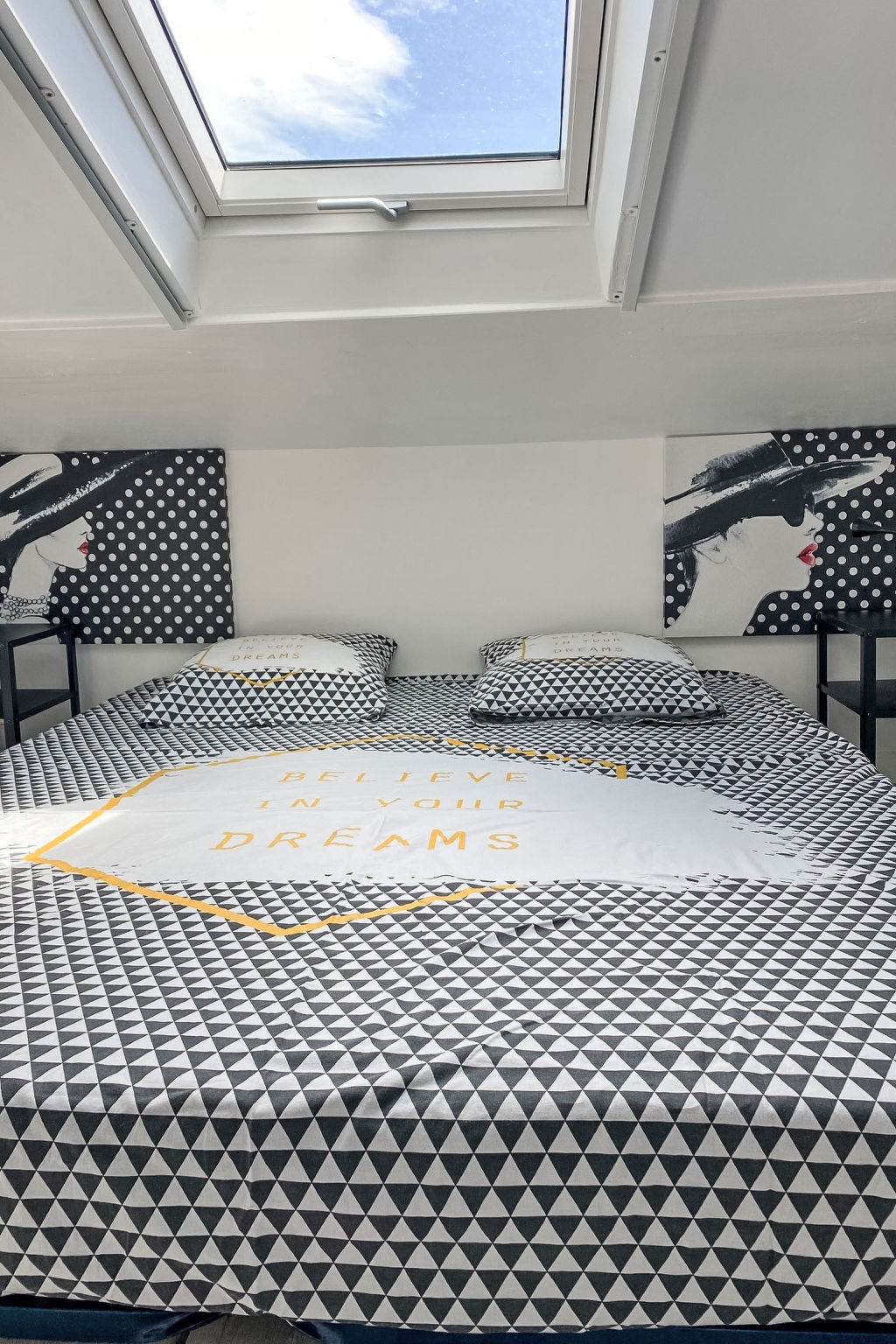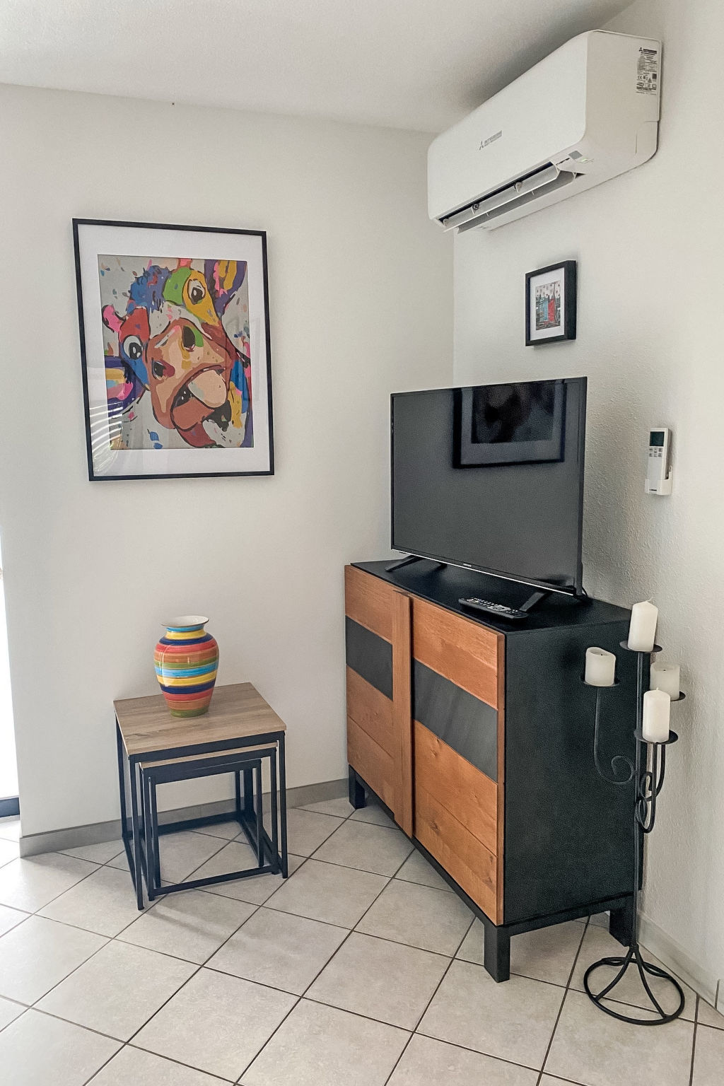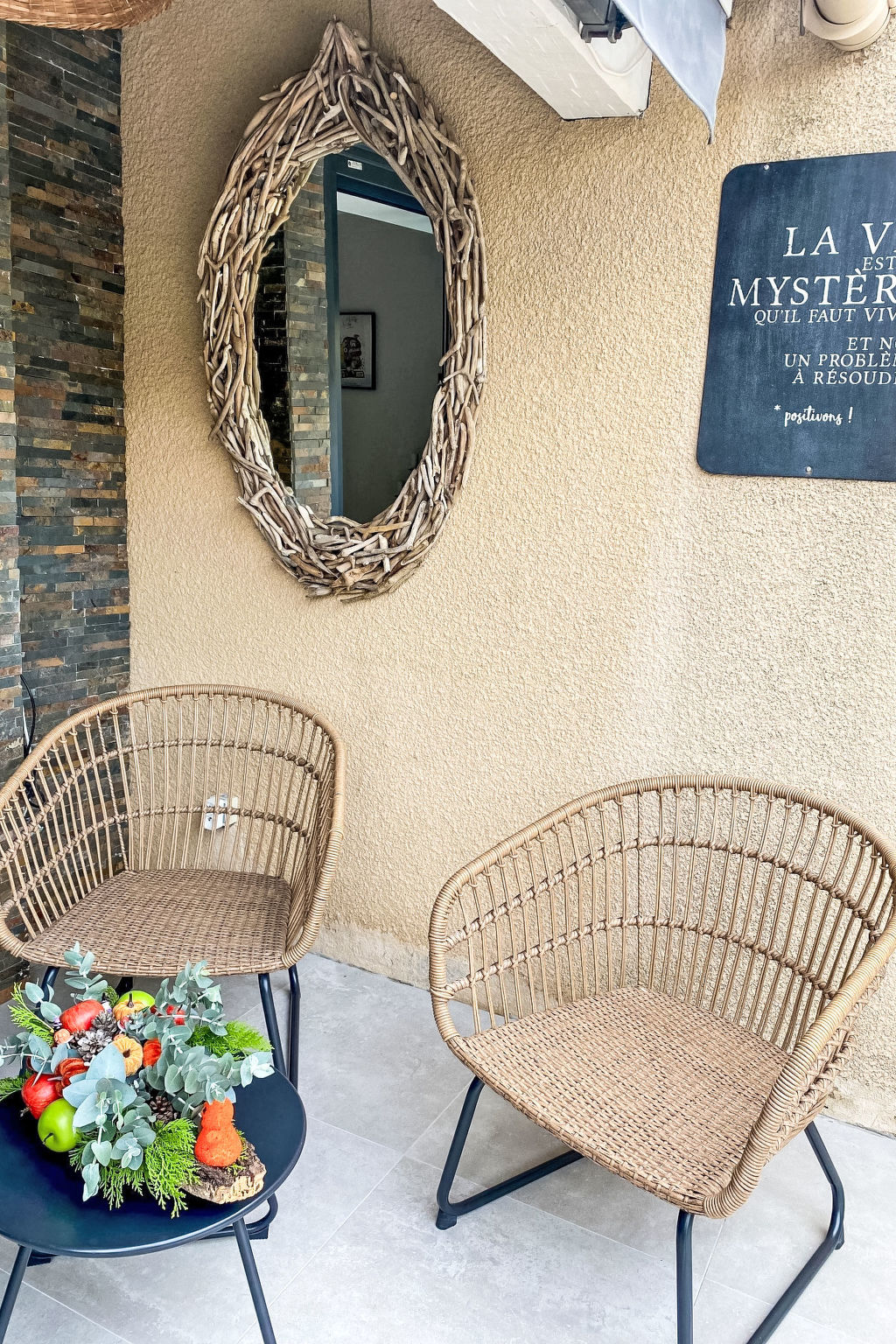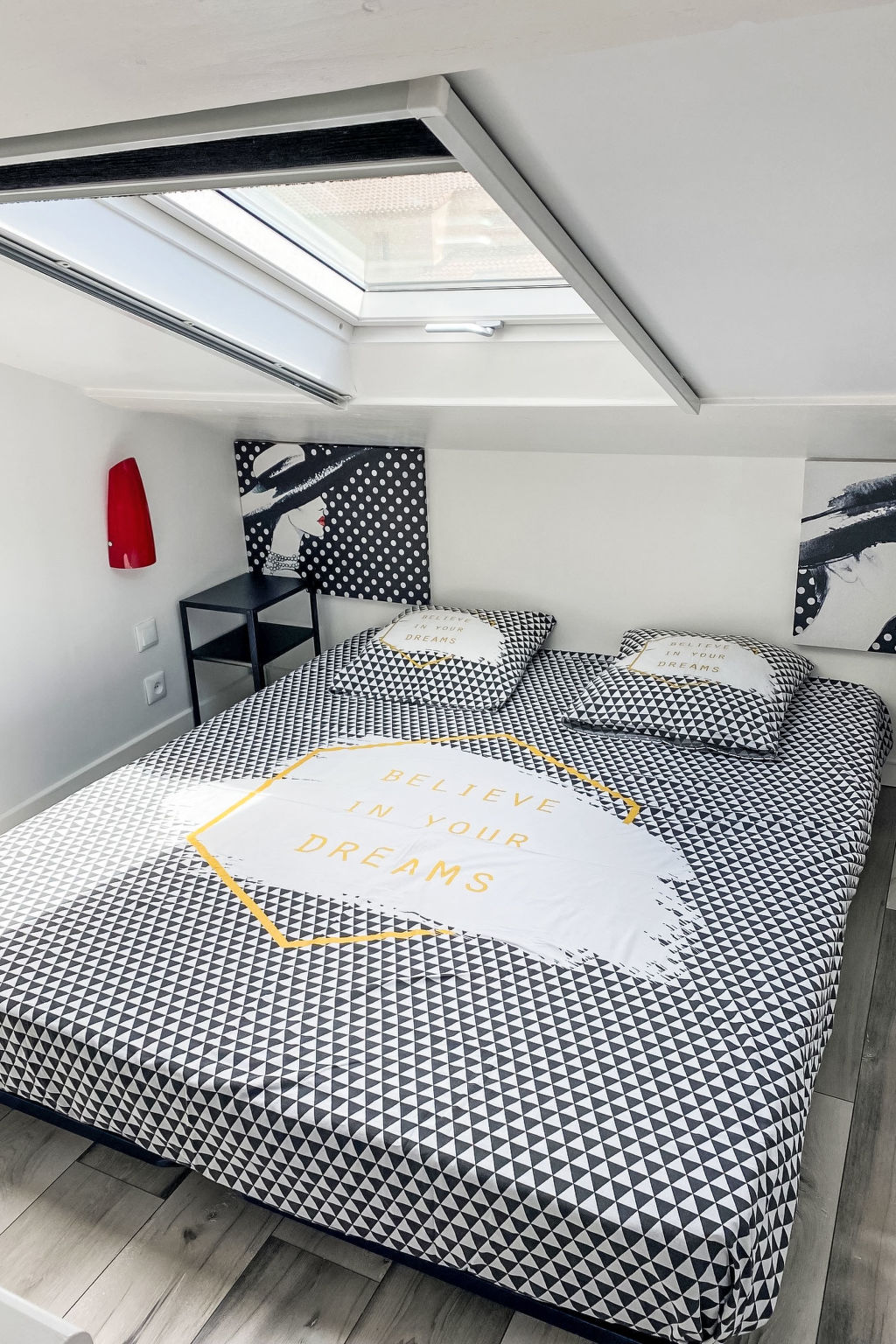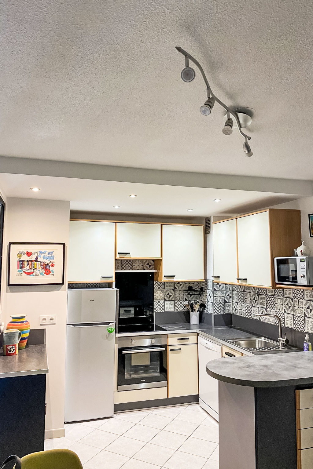 3-Zimmer-Reihenhaus 55 m2 auf 2 Stockwerken. Komfortabel und schön eingerichtet: Wohn-/Esszimmer mit TV (Flachbildschirm). Offene Küche (Backofen, Geschirrspüler, 4 Induktionskochplatten, Mikrowelle, elektrische Kaffeemaschine). Sep. WC. Obergeschoss: 1 Zimmer mit 1 franz. Bett (160 cm, Länge 200 cm), TV (Flachbildschirm), Klimaanlage. (steile Treppe) abgeschrägte, offene Galerie mit Dachfenster mit 2 Betten (80 cm, Länge 200 cm). Dusche/WC. Terrasse 30 m2. Terrassenmöbel, Gartengrill, Liegestühle (4). Zur Verfügung: Waschmaschine, Bügeleisen. Internet (Wireless LAN, extra). Parkplatz beim Haus. Bitte beachten: Nichtraucher-Haus. TV nur FR. Rauchmelder. Inserat einer Privatperson nach Artikel 155, IV, CGI. 83070 000994 74