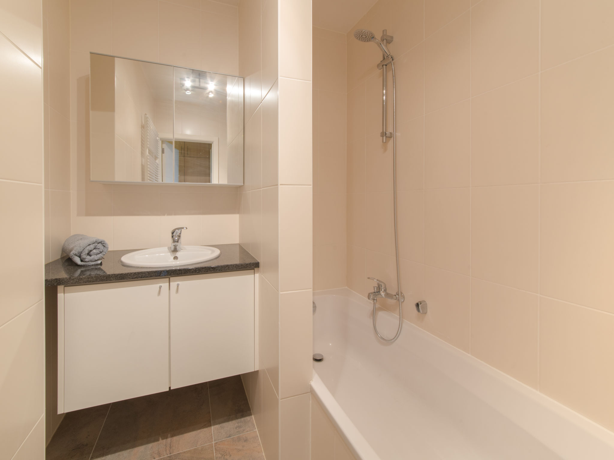 "Seaside 2.02", 2-Zimmer-Wohnung 65 m2 im 2. Stock. Objekt geeignet für 2 Erwachsene + 2 Kinder. Zweckmässig und gemütlich eingerichtet: Eingang mit sep. WC. Offenes Wohn-/Esszimmer mit 1 Wandschrankbett (140 cm, Länge 200 cm), Esstisch, Digital-TV, Internationale TV-Sender und DVD. Ausgang zum Balkon. 1 Kinderzimmer mit 1 x 2 Etagenbetten (90 cm, Länge 200 cm). Offene Küche (Geschirrspüler, 4 Induktionskochplatten, Toaster, Wasserkocher, Kombinationsmikrowelle). Bad/Dusche. Kleiner Balkon, Nordwestlage. Zur Verfügung: Haartrockner. Internet (Wireless LAN, gratis). Garage Nr. 6 auf dem Grundstück (1 Auto). Bitte beachten: Nichtraucher-Haus. 1 kleines Haustier/Hund erlaubt. Rauchmelder, Feuerlöscher.