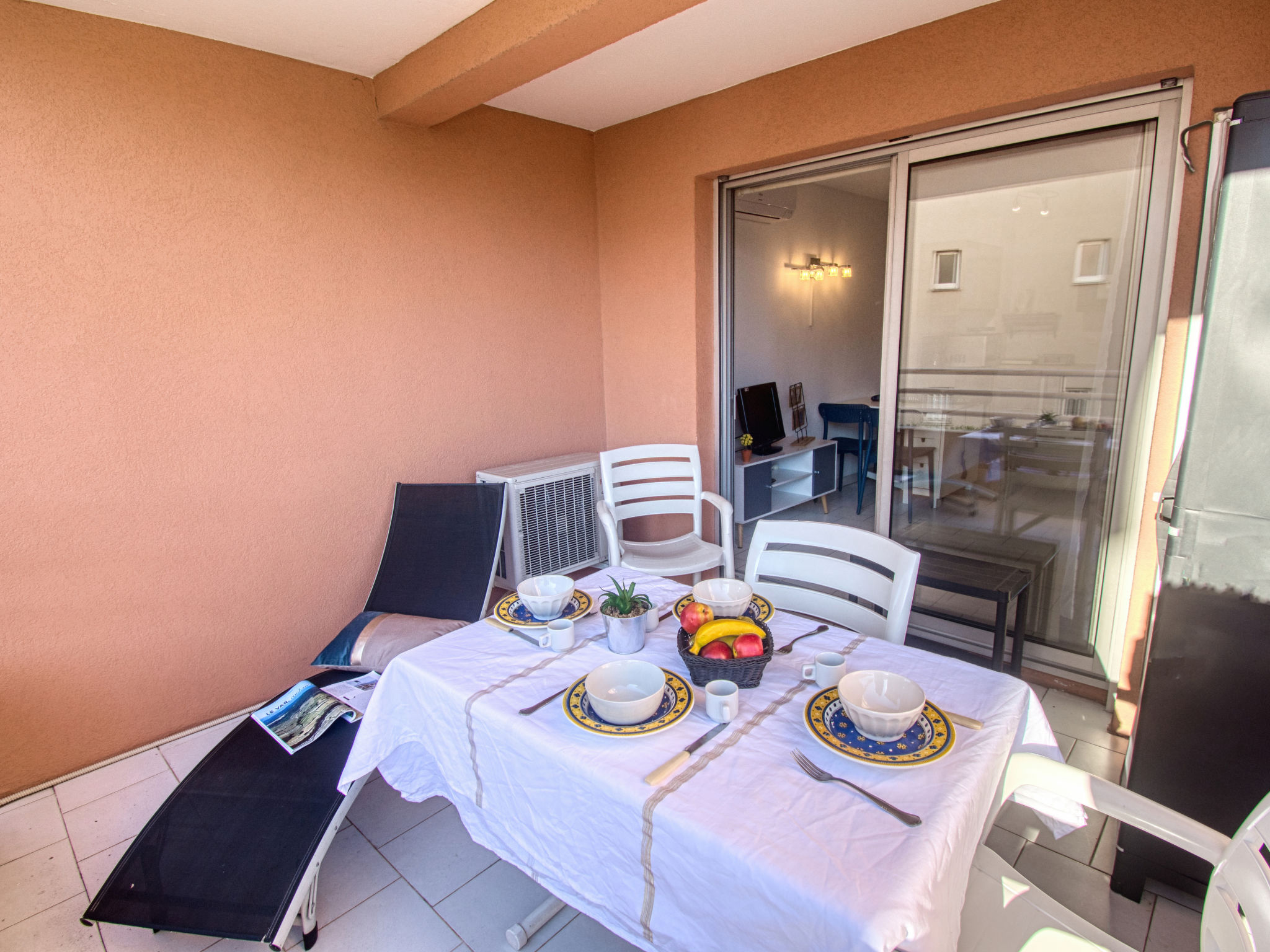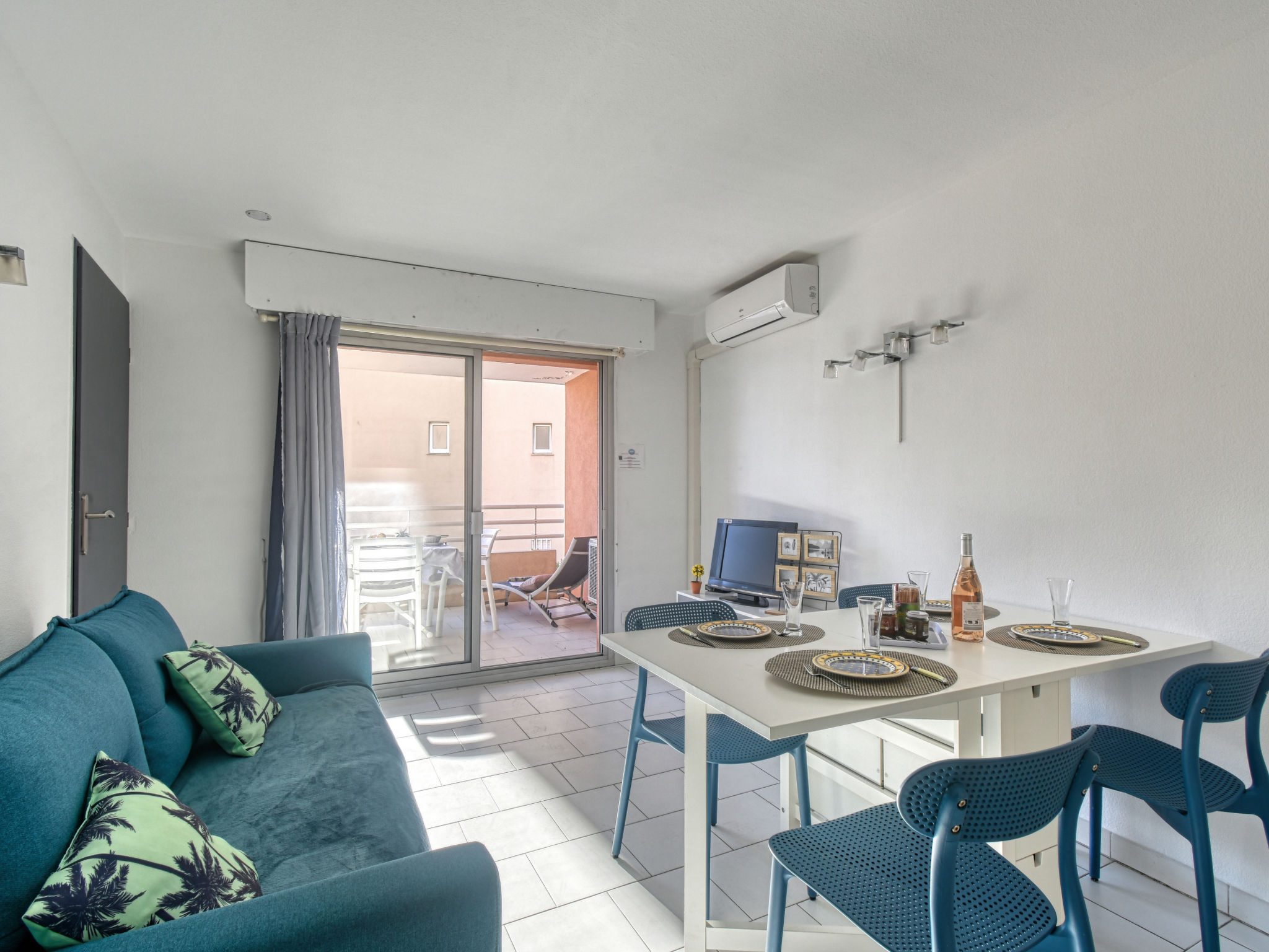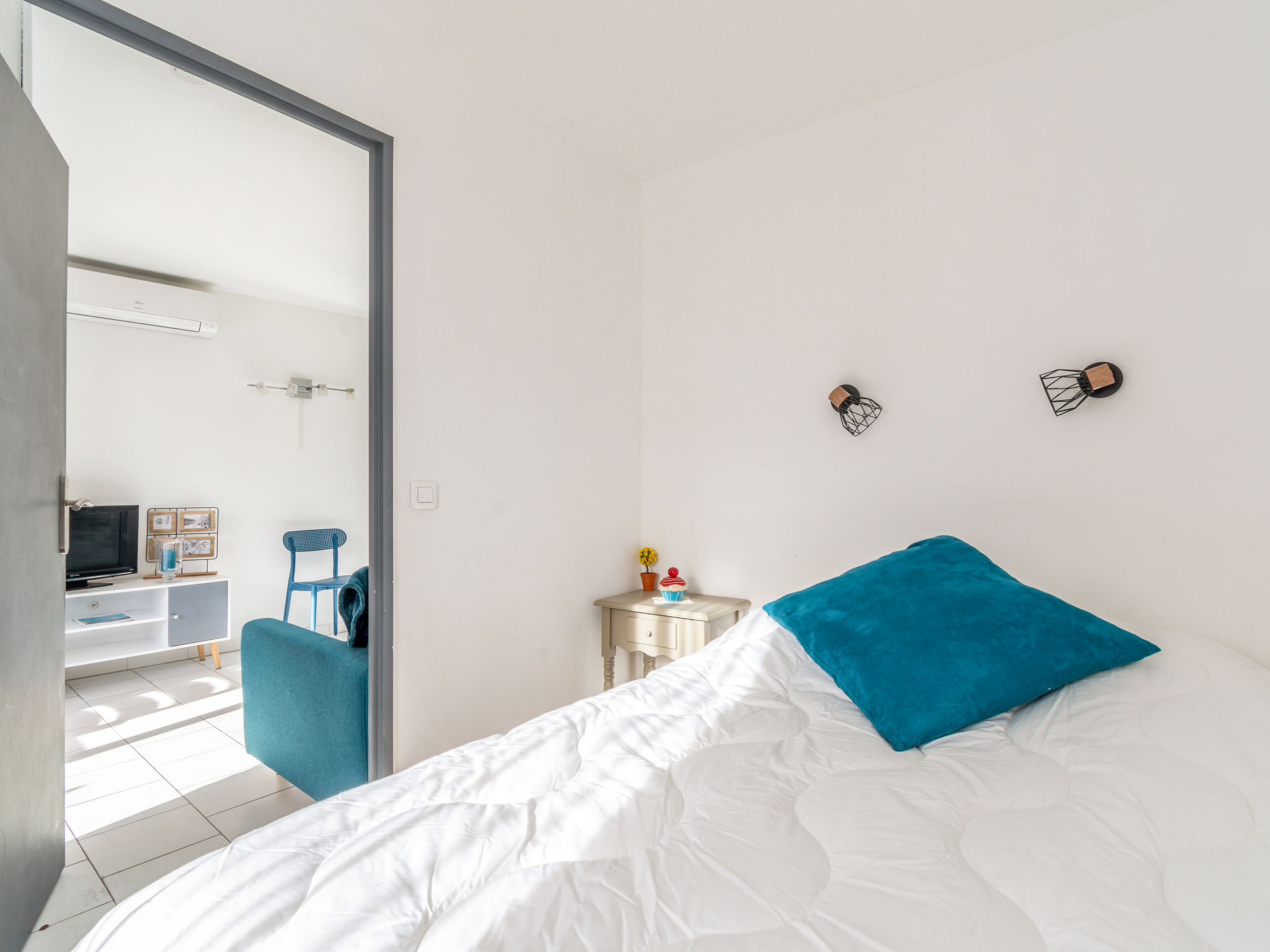 2-Zimmer-Wohnung 29 m2 im 3. Stock. Objekt geeignet für 2 Erwachsene + 2 Kinder. Renoviert im Jahre 2020: Wohn-/Esszimmer mit 1 Doppeldiwanbett (1 x 140 cm, Länge 200 cm), Essecke, TV und Klimaanlage. Ausgang zur Terrasse. 1 kleines Zimmer mit 1 franz. Bett (1 x 140 cm, Länge 190 cm). Kochnische (1 Induktionskochplatten, Wasserkocher, elektrische Kaffeemaschine, Kombinationsmikrowelle). Dusche, sep. WC. Terrasse. Terrassenmöbel. Zur Verfügung: Waschmaschine. Internet (Wireless LAN, extra). Parkplatz Nr. 20 (überdacht), Höhe 190 cm, Breite 205 cm. Bitte beachten: Nichtraucher-Unterkunft. TV nur FR. Rauchmelder. Inserat einer Privatperson nach Artikel 155, IV, CGI.