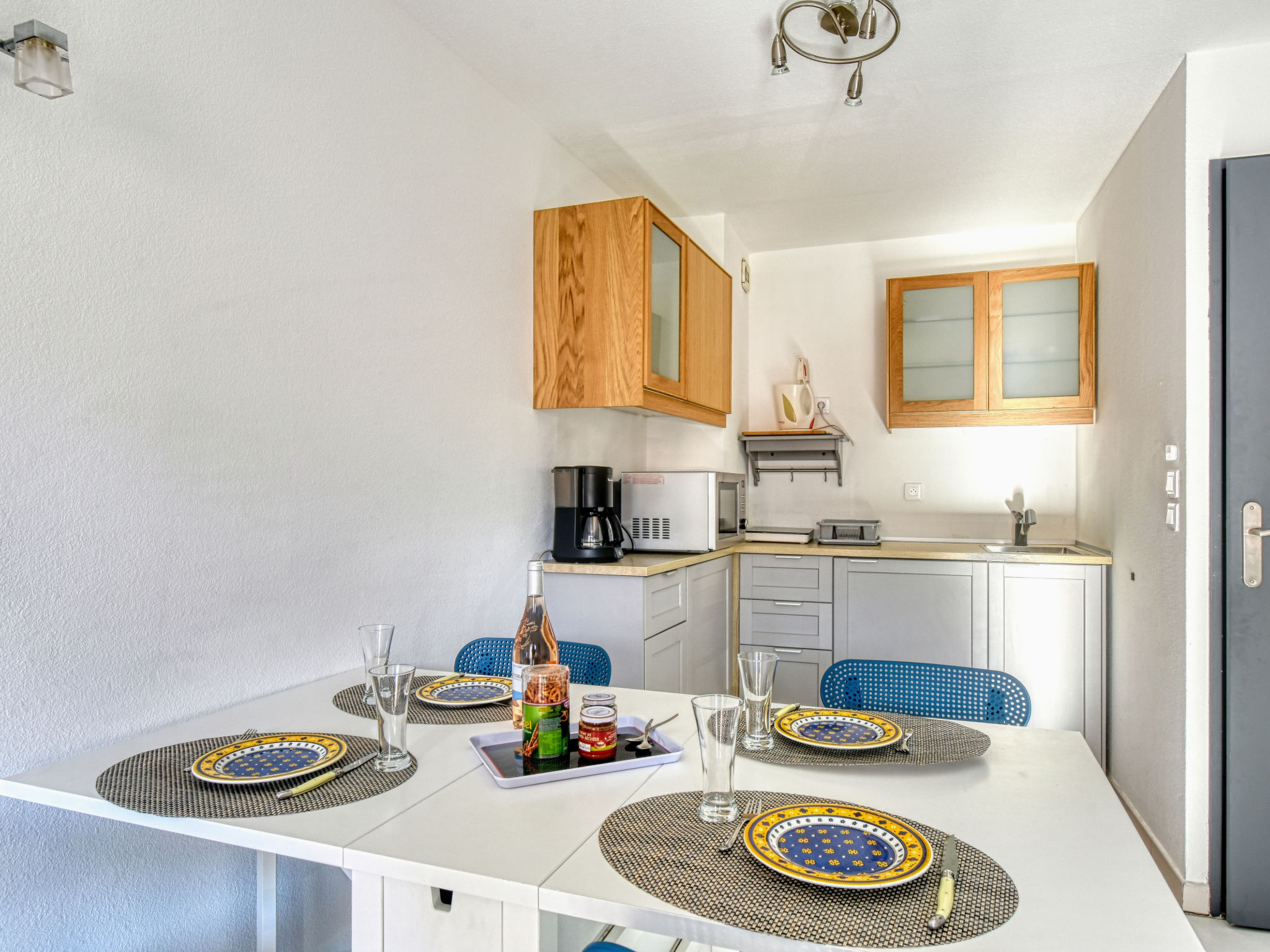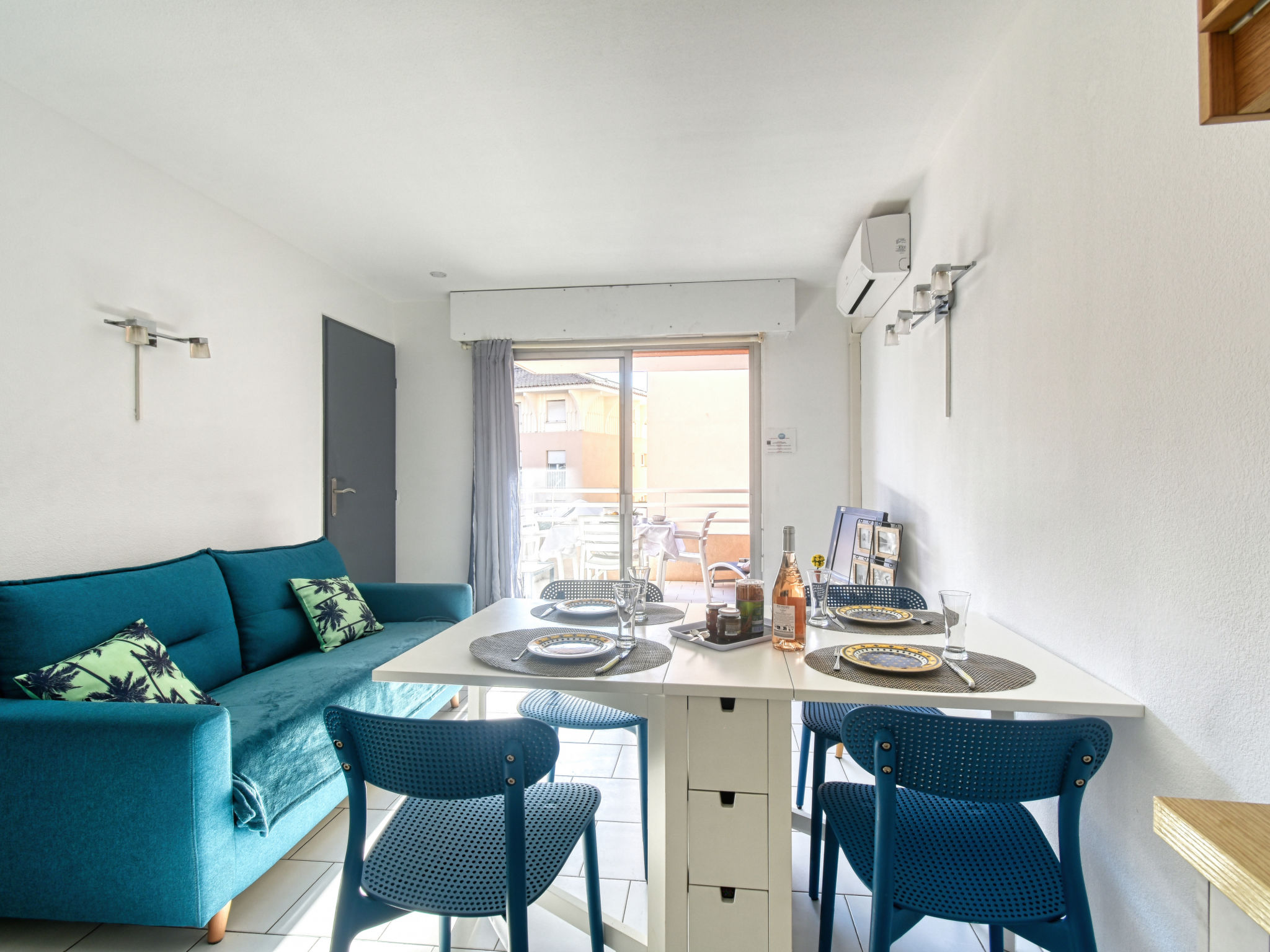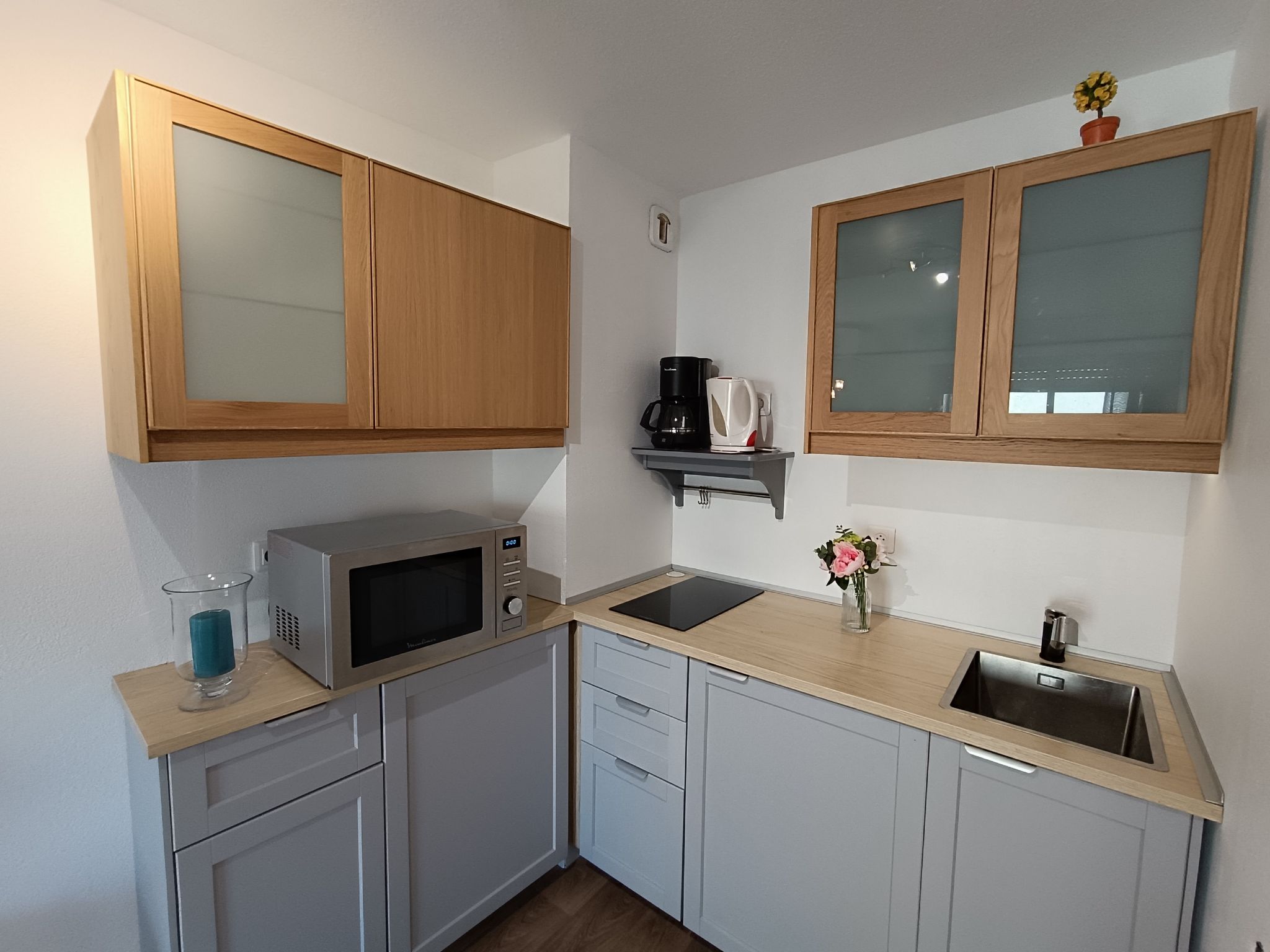 2-Zimmer-Wohnung 29 m2 im 3. Stock. Objekt geeignet für 2 Erwachsene + 2 Kinder. Renoviert im Jahre 2020: Wohn-/Esszimmer mit 1 Doppeldiwanbett (1 x 140 cm, Länge 200 cm), Essecke, TV und Klimaanlage. Ausgang zur Terrasse. 1 kleines Zimmer mit 1 franz. Bett (1 x 140 cm, Länge 190 cm). Kochnische (1 Induktionskochplatten, Wasserkocher, elektrische Kaffeemaschine, Kombinationsmikrowelle). Dusche, sep. WC. Terrasse. Terrassenmöbel. Zur Verfügung: Waschmaschine. Internet (Wireless LAN, extra). Parkplatz Nr. 20 (überdacht), Höhe 190 cm, Breite 205 cm. Bitte beachten: Nichtraucher-Unterkunft. TV nur FR. Rauchmelder. Inserat einer Privatperson nach Artikel 155, IV, CGI.