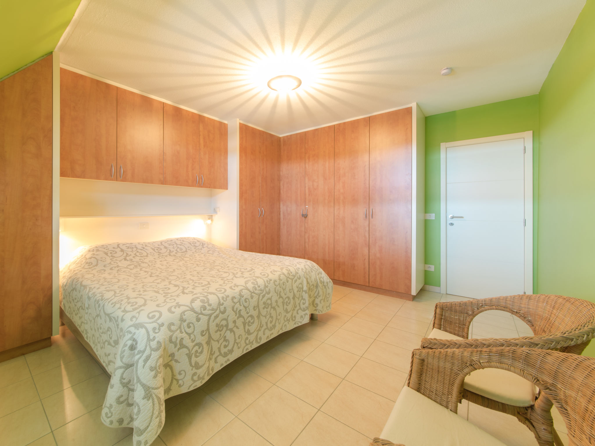 "Goldsands II 402", 3-Zimmer-Wohnung 120 m2 im 4. Stock. Objekt geeignet für 4 Erwachsene. Geräumig, zweckmässig und komfortabel eingerichtet: Wohn-/Esszimmer mit Digital-TV, Internationale TV-Sender und DVD. 1 Zimmer mit 1 Doppelbett (180 cm, Länge 200 cm). 1 Zimmer mit 2 Betten (90 cm, Länge 200 cm). Küche (Geschirrspüler, 4 Glaskeramikherd Platten, Toaster, Wasserkocher, Tiefkühler, elektrische Kaffeemaschine, Kombinationsmikrowelle). Bad/Dusche, sep. WC. Kleiner Balkon 7 m2. Balkonmöbel. Zur Verfügung: Waschmaschine. Internet (Wireless LAN). Bitte beachten: Nichtraucher-Haus. Rauchmelder, Feuerlöscher.