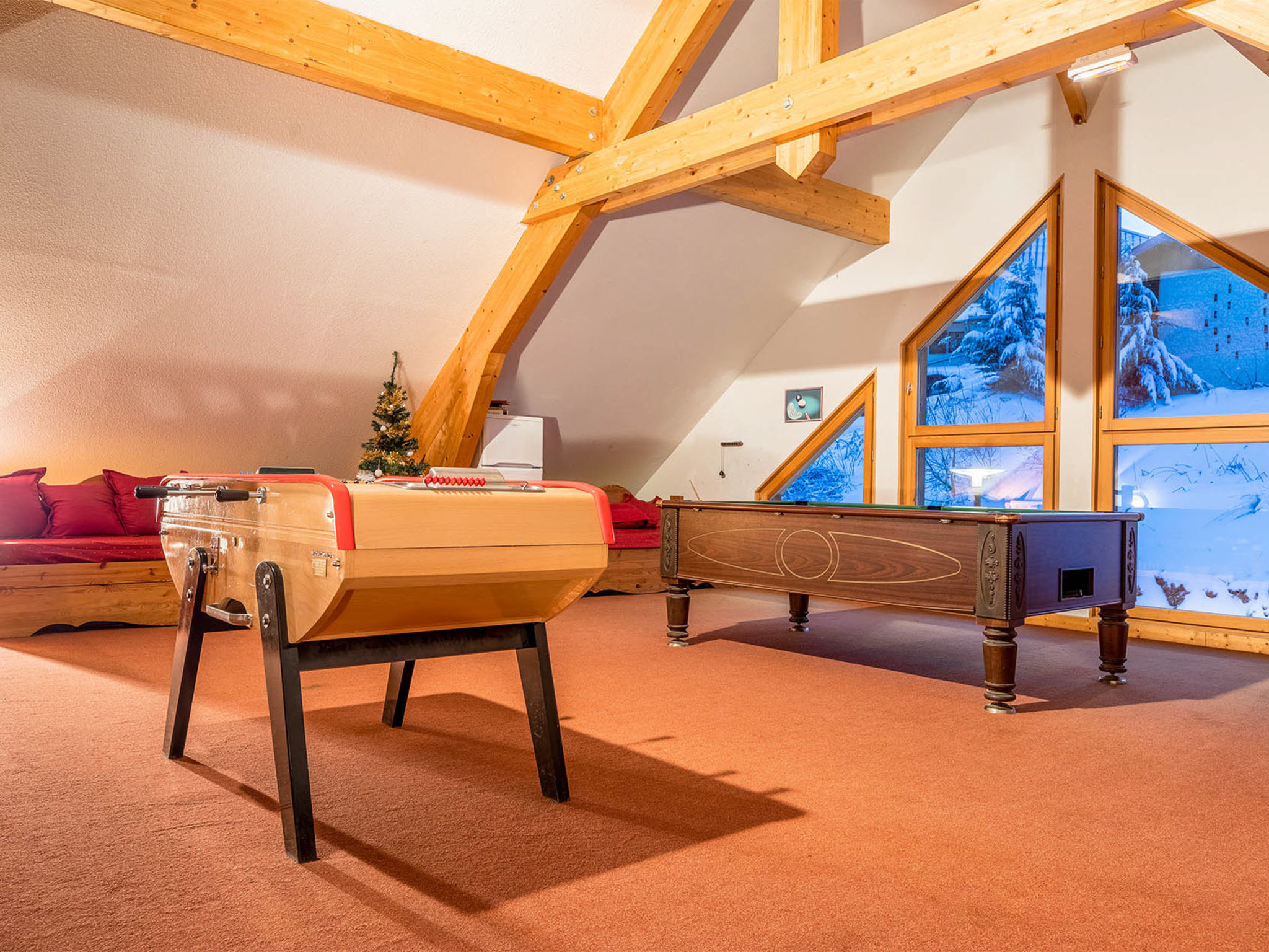Komfortable Residenz "Les Chalets du Berger". Im Ortszentrum von Féclaz, direkt am Skigebiet. Zur Mitbenutzung: Hallenbad (6 x 12 m). In der Anlage: Empfang, Wireless LAN, Sauna, Skiraum. Brötchenservice möglich (extra). Parkplatz. Supermarkt 550 m, Restaurant, Bar, Café 100 m. Skipisten 100 m.