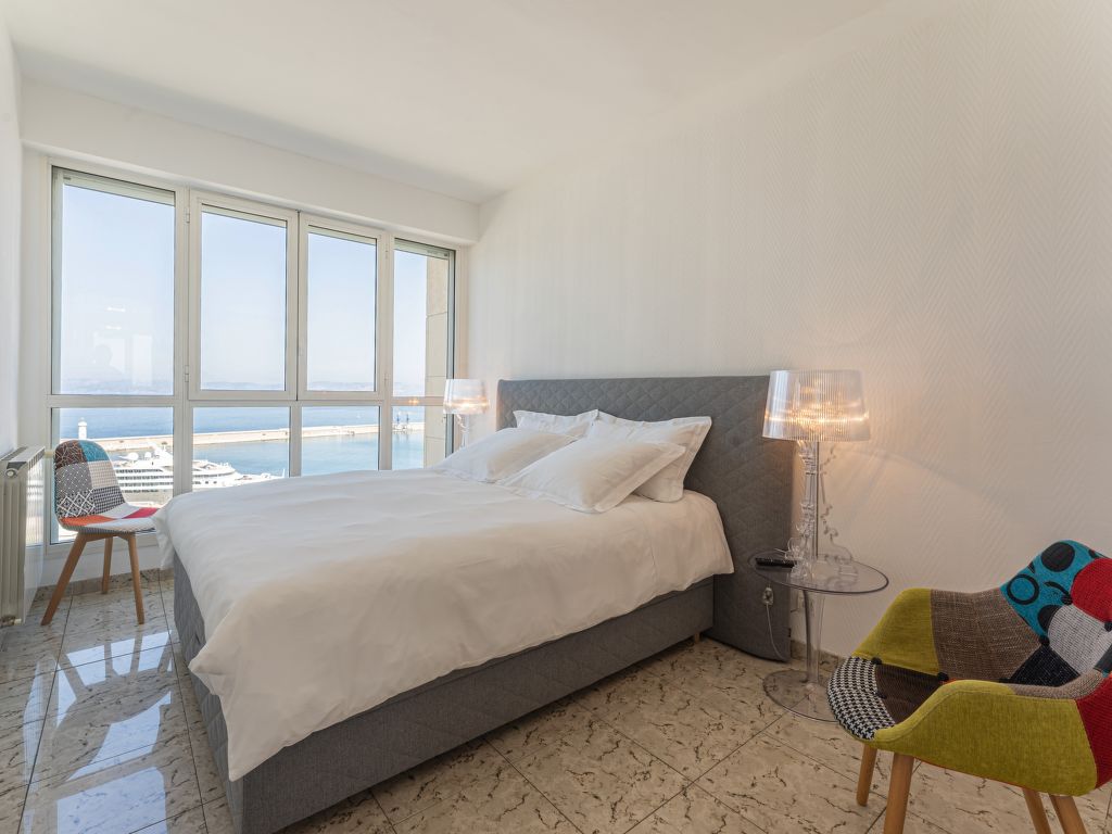 "La Maison de Protis (MSE100)", 3-Zimmer-Wohnung 107 m2 im 8. Stock. Hell, renoviert im Jahre 2020, komfortabel und modern eingerichtet: Wohn-/Esszimmer mit Esstisch, TV und Klimaanlage. Ausgang zum Balkon. 1 Zimmer mit 1 franz. Bett (160 cm), TV und Klimaanlage. 1 Zimmer mit 1 franz. Bett (160 cm), TV. Küche (Backofen, Geschirrspüler, 4 Flammen, Toaster, Wasserkocher, Mikrowelle, elektrische Kaffeemaschine) mit Esstisch. Dusche, sep. WC. G-Heizung. Balkon 10 m2. Balkonmöbel. Sehr schöne Sicht auf das Meer, den Hafen und die Stadt. Zur Verfügung: Waschmaschine, Safe, Bügeleisen, Kinderhochstuhl, Babybett bis 2 Jahre, Haartrockner. Internet (Wireless LAN). Bitte beachten: Nichtraucher-Unterkunft. 1 Haustier/Hund erlaubt. Rauchmelder. Inserat einer Privatperson nach Artikel 155, IV, CGI. 13201008849MX