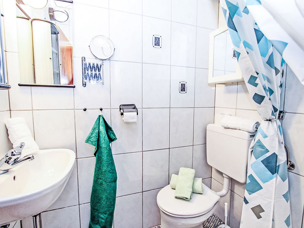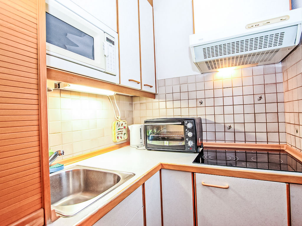 3-Zimmer-Wohnung 62 m2, im erhöhten Erdgeschoss. Schön und gemütlich eingerichtet: Eingang. Wohnzimmer mit Esstisch und Kabel-TV (Flachbildschirm), Radio und CD. Ausgang zum Balkon. 1 Doppelzimmer. Ausgang zum Balkon. 1 Zimmer mit 1 Bett und 1 Doppelwandschrankbett (2 x 90 cm, Länge 190 cm). Ausgang zum Balkon. Kochnische (Mini-Backofen, 4 Glaskeramikherd Platten, Toaster, Mikrowelle, elektrische Kaffeemaschine). Dusche/WC. 3 kleine Balkone. Bitte beachten: Nichtraucher-Unterkunft.