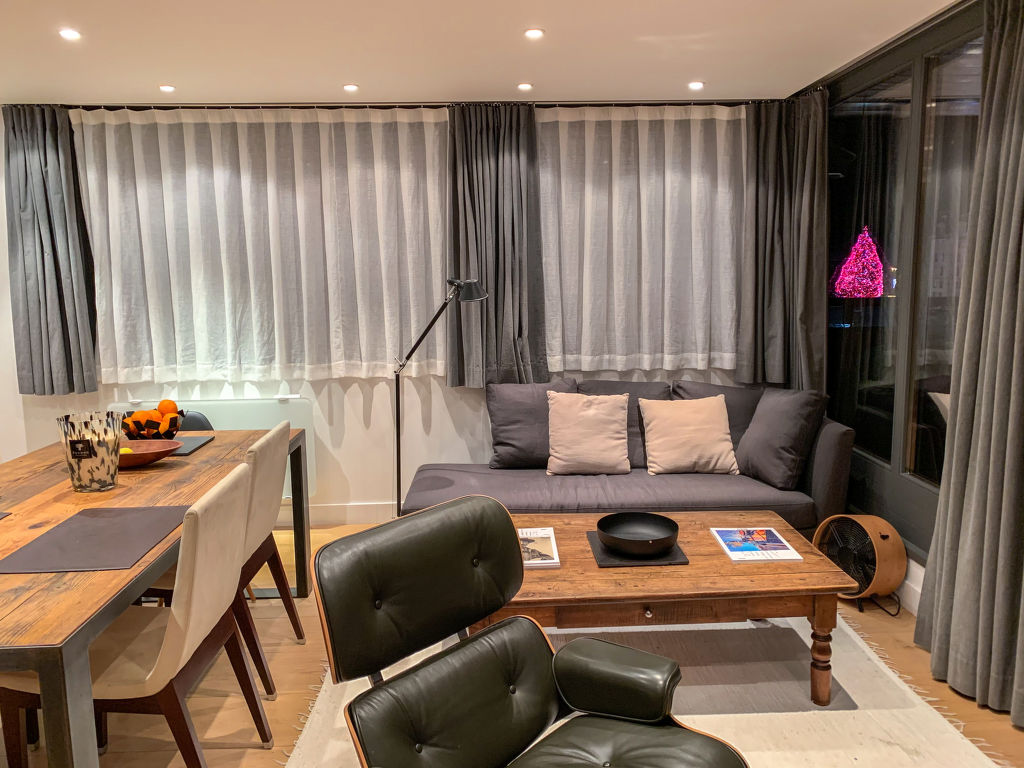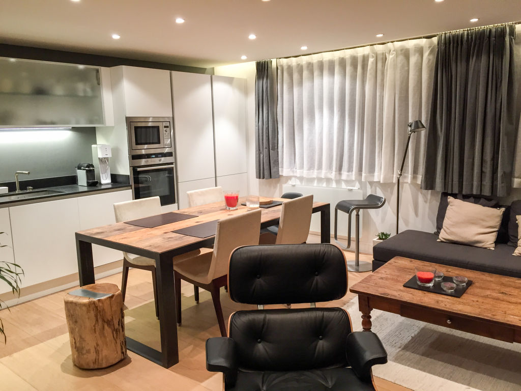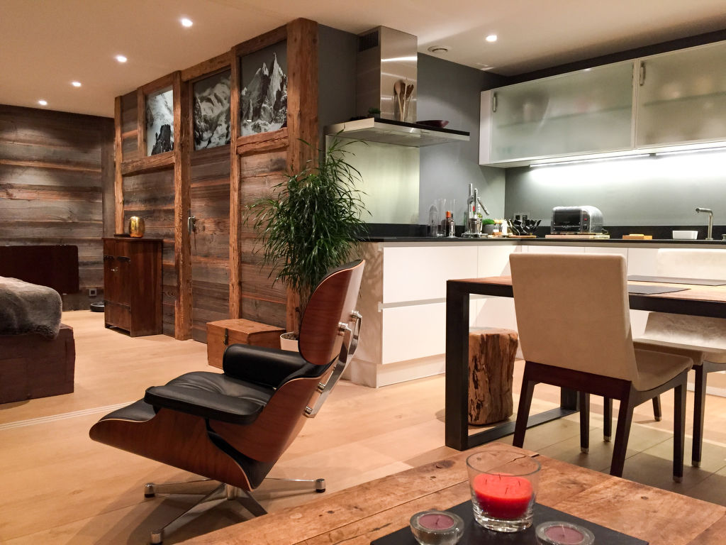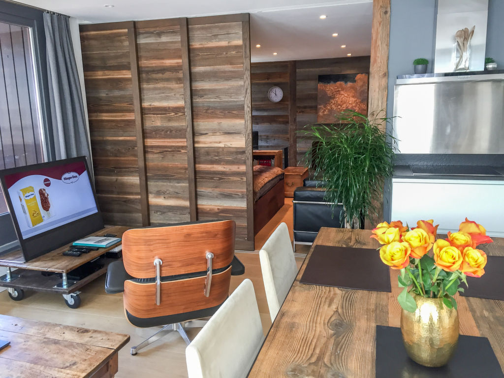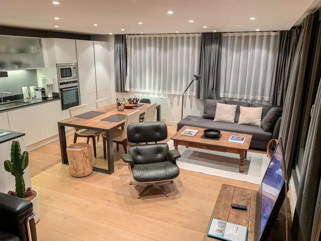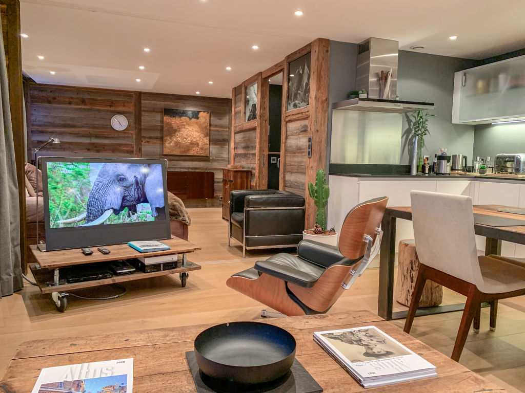 1-Zimmer-Loft 52 m2 im 3. Stock. Geräumig, sehr komfortabel eingerichtet: grosses Wohn-/Esszimmer mit TV und DVD. Ausgang zum Balkon. Schlafnische mit 1 franz. Bett (160 cm, Länge 200 cm). Grosse, offene Küche (Backofen, Geschirrspüler, 3 Induktionskochplatten, Toaster, Wasserkocher, Mikrowelle, Tiefkühler, elektrische Kaffeemaschine, Kapseln für die Kaffeemaschine (Nespresso) extra, Racletteofen, Fondue Set (Käse)). Bad/WC. E-Heizung. Kleiner Balkon, Südlage. Terrassenmöbel. Sehr schöne Sicht auf die Berge. Zur Verfügung: Waschmaschine. Internet (Wireless LAN, gratis). Garage Nr. 168 au 2ème sous-sol. Bitte beachten: Rauchmelder. Inserat einer Privatperson nach Artikel 155, IV, CGI.