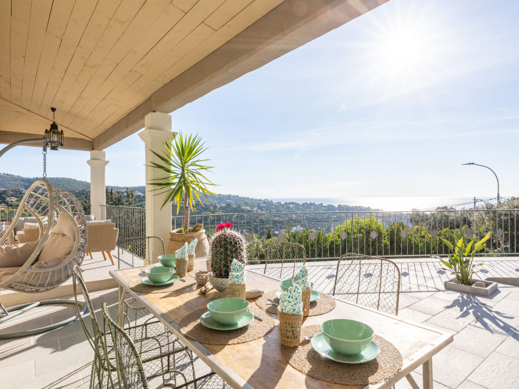 4-Zimmer-Haus 136 m2, Südwestlage. Geräumig und hell, vollständig renoviert im Jahre 2019, schön und gemütlich eingerichtet: grosses Wohn-/Esszimmer mit offenem Kamin (nur Deko), TV. Ausgang zur Terrasse, zum Schwimmbad. 1 Zimmer mit 1 franz. Bett (1 x 160 cm, Länge 190 cm), Dusche/WC, Doppelwaschbecken und Klimaanlage. 1 Zimmer mit Panoramafenster mit 1 franz. Bett (1 x 160 cm, Länge 190 cm), Klimaanlage. 1 grosses Zimmer mit Panoramafenster mit 1 franz. Bett (1 x 180 cm, Länge 190 cm), Klimaanlage. Ausgang zur Terrasse, zum Schwimmbad. Eingang mit sep. WC. Grosse, offene Küche (Backofen, Geschirrspüler, 4 Glaskeramikherd Platten, Toaster, Wasserkocher, Mikrowelle, Tiefkühler, elektrische Kaffeemaschine). Bad/Dusche/WC, Doppelwaschbecken. E-Heizung. Grosse Terrasse teilweise überdacht, Südwestlage. Liegestühle (6). Sehr schöne Sicht auf das Meer. Zur Verfügung: Waschmaschine, Bügeleisen. Internet (Wireless LAN, gratis). Bitte beachten: Nichtraucher-Haus. Maximal 1 Haustier/Hund erlaubt. Rauchmelder. Inserat eines gewerblichen Vermieters nach Artikel 155, IV, CGI 83107000473EY