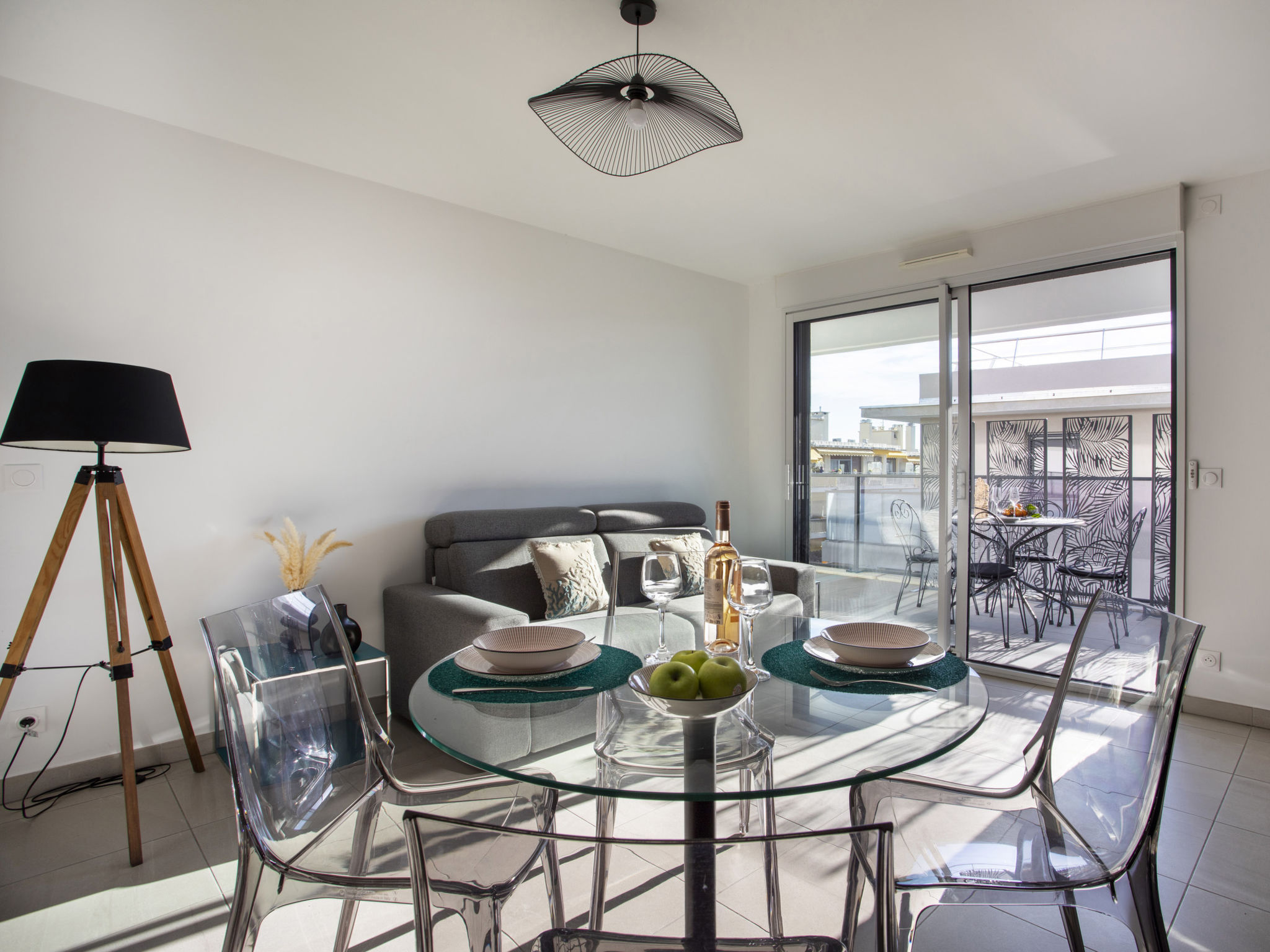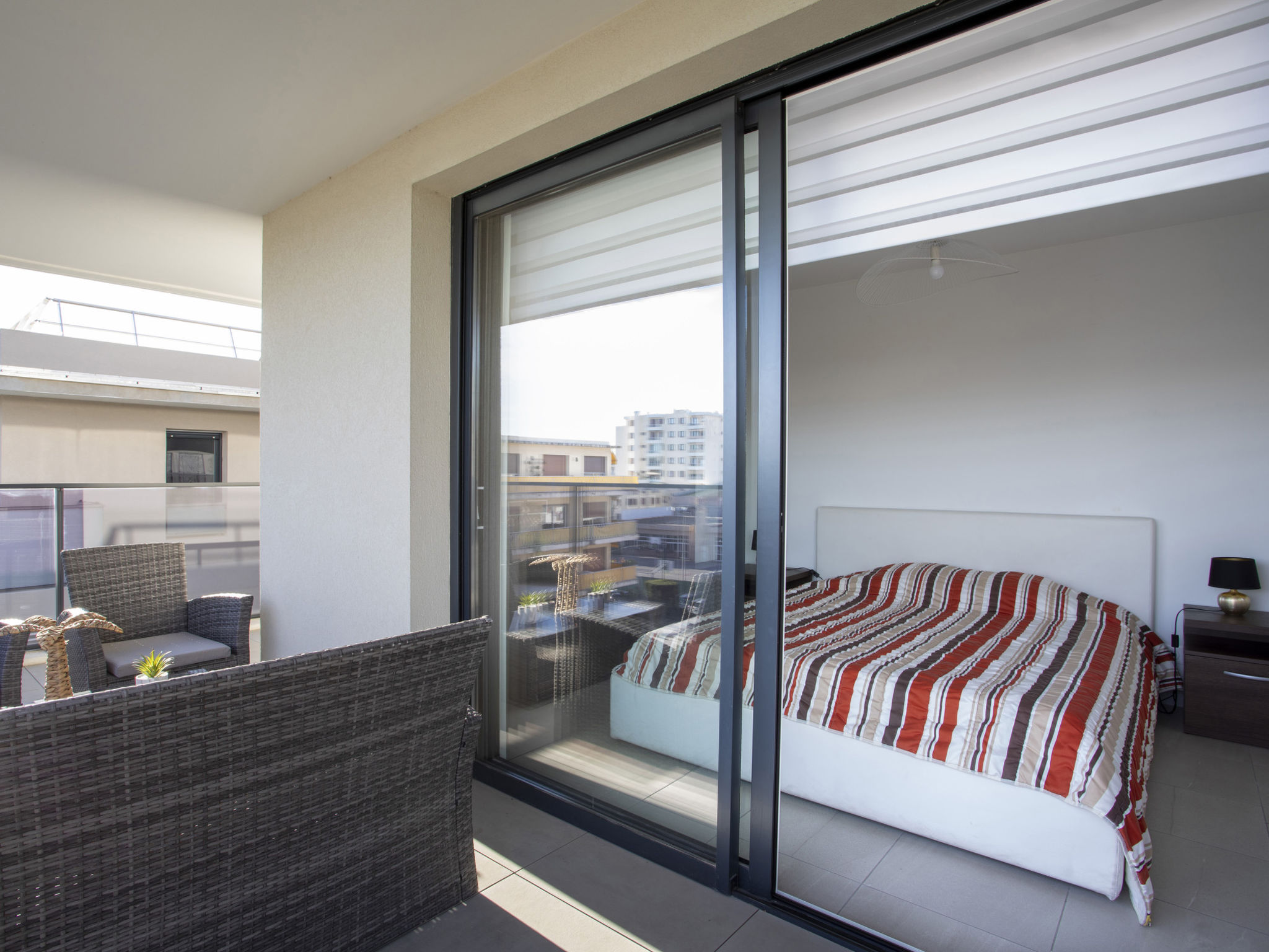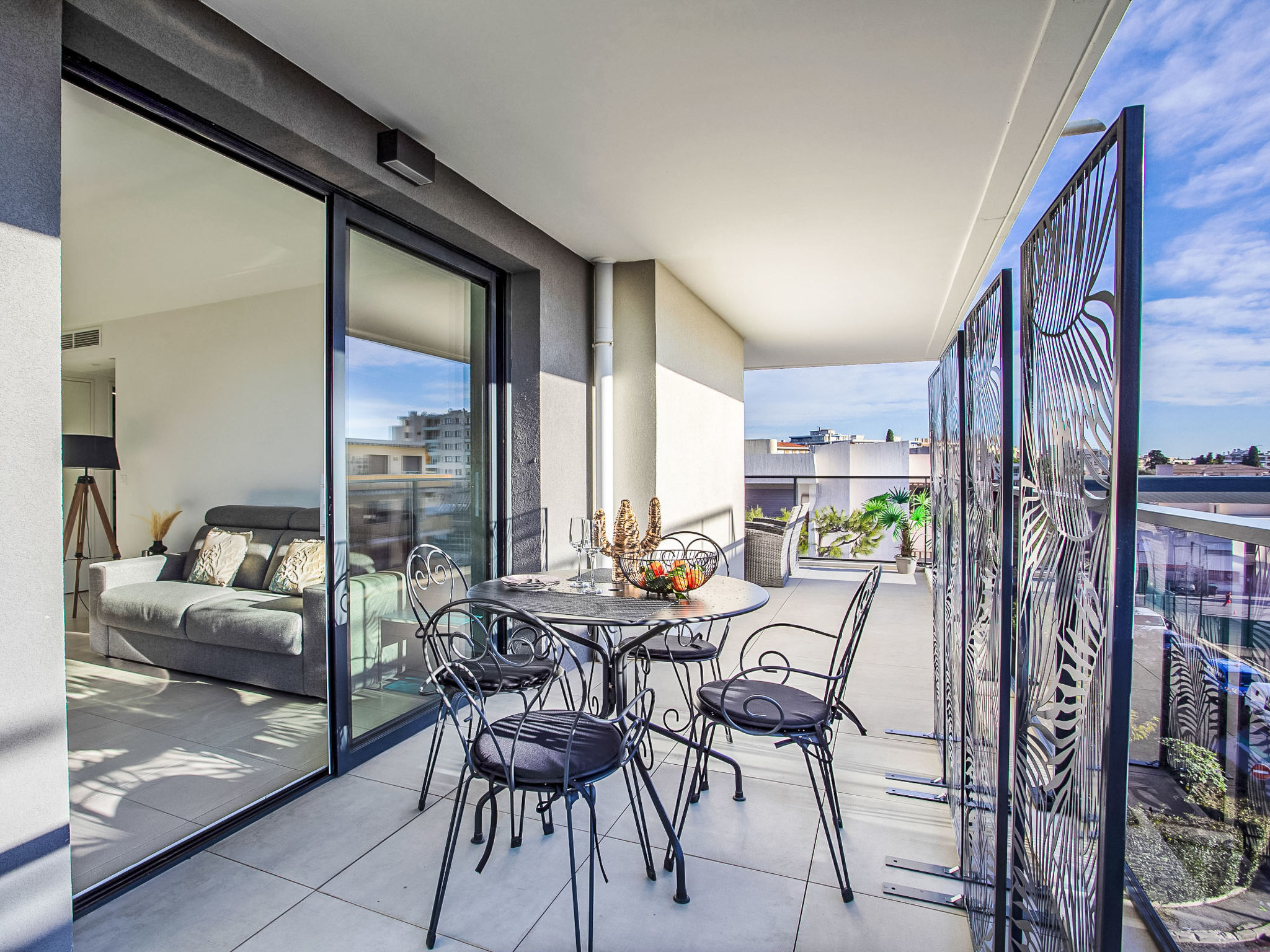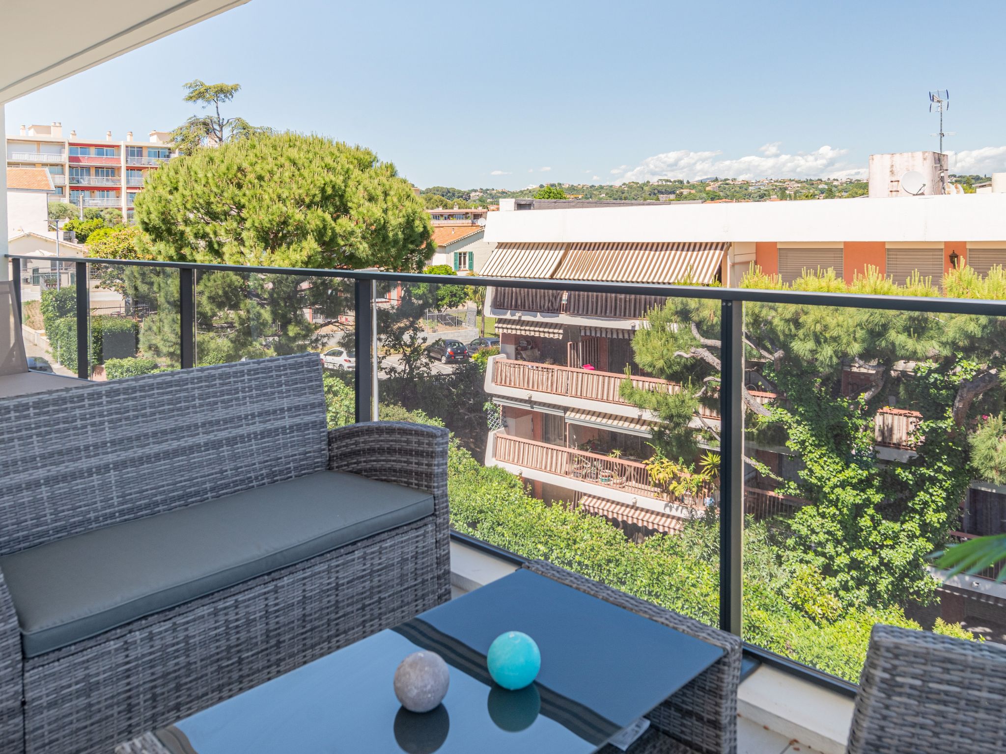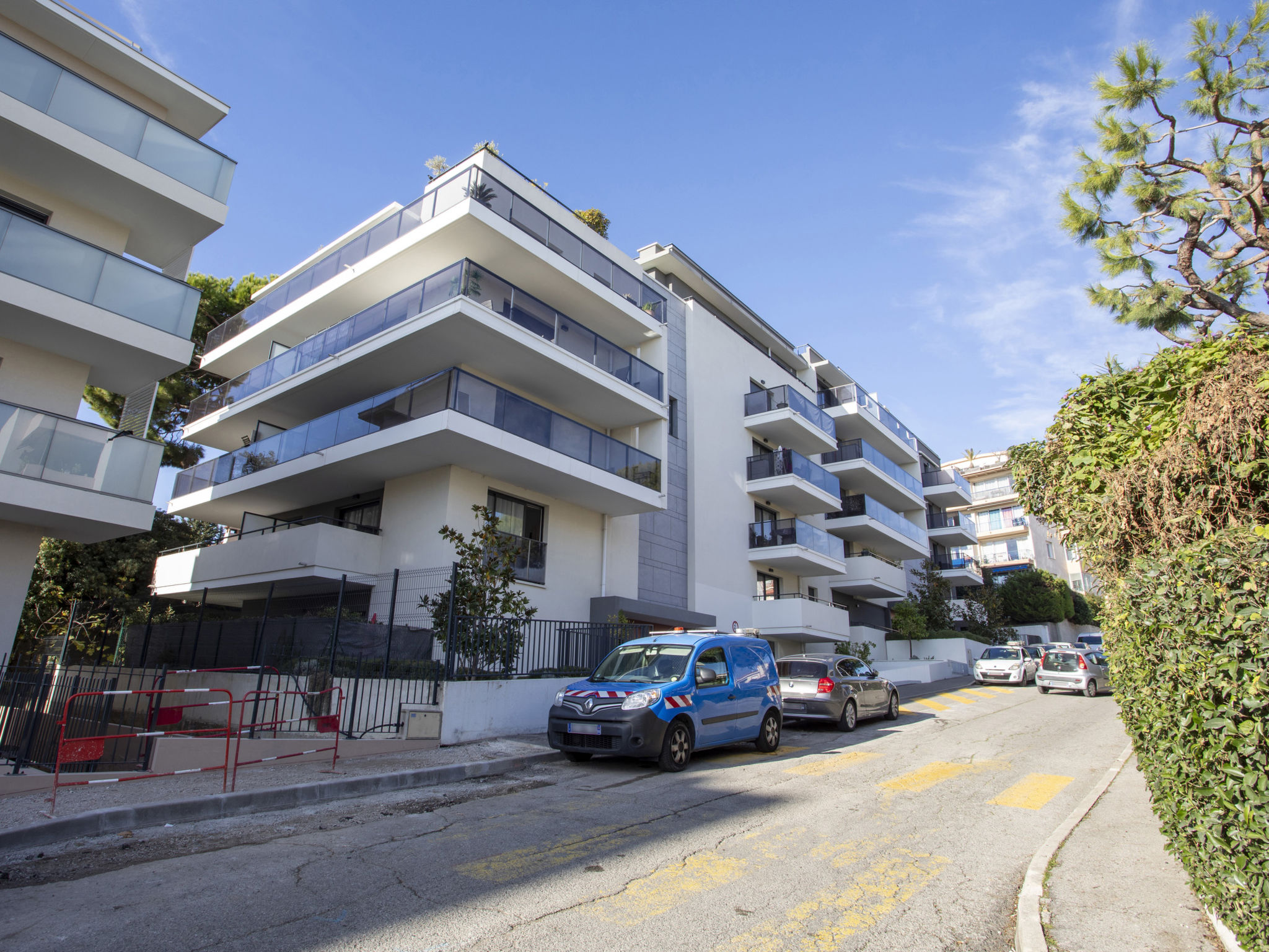 "Le Grey Pearl", 2-Zimmer-Wohnung 40 m2 im 3. Stock. Hell, schön und modern eingerichtet: Wohn-/Esszimmer mit Panoramafenster mit 1 Doppeldiwanbett (140 cm, Länge 190 cm), TV (Flachbildschirm). Ausgang zur Terrasse. 1 grosses Zimmer 12 m2 mit 1 franz. Bett (160 cm, Länge 190 cm). Ausgang zur Terrasse. Offene Küche (Backofen, Geschirrspüler, 4 Induktionskochplatten, Toaster, Wasserkocher, Mikrowelle, Tiefkühler, elektrische Kaffeemaschine, Kapseln für die Kaffeemaschine (Nespresso) extra). Ausgang zur Terrasse. Dusche/WC. Klimaanlage. Grosse Terrasse 28 m2, Ostlage und Südlage. Terrassenmöbel, Liegestühle. Schöne Sicht auf das Meer. Zur Verfügung: Waschmaschine, Bügeleisen, Haartrockner. Internet (Wireless LAN, gratis). Garage Nr. 207 NIVEAU -2 (2 Autos). Bitte beachten: Rauchmelder. Inserat einer Privatperson nach Artikel 155, IV, CGI. 06027017706AK