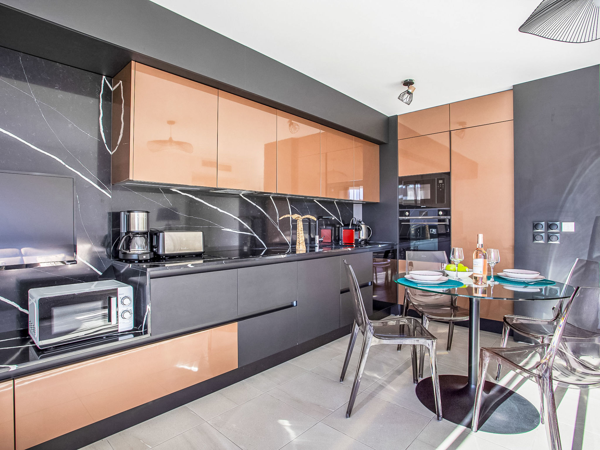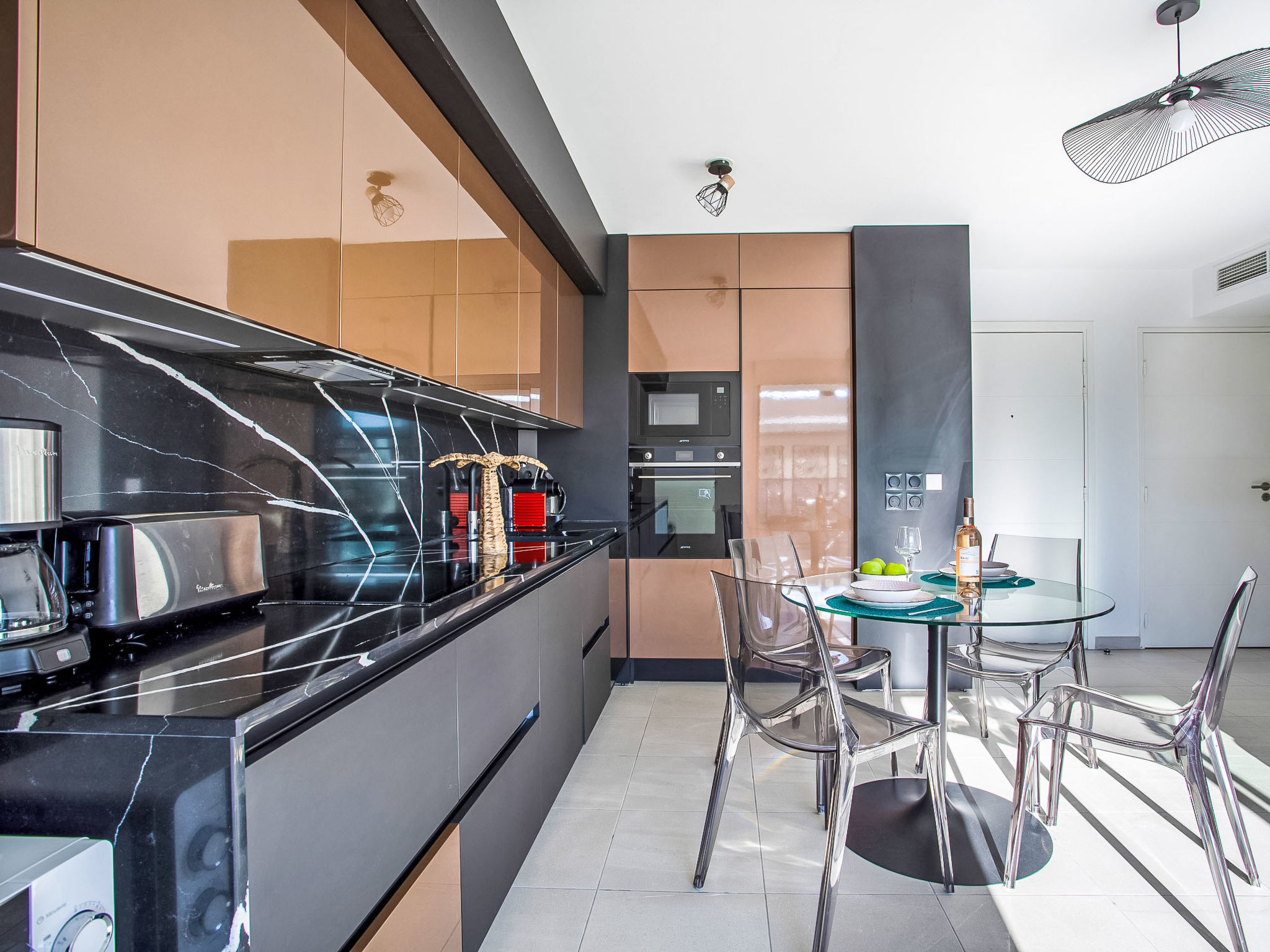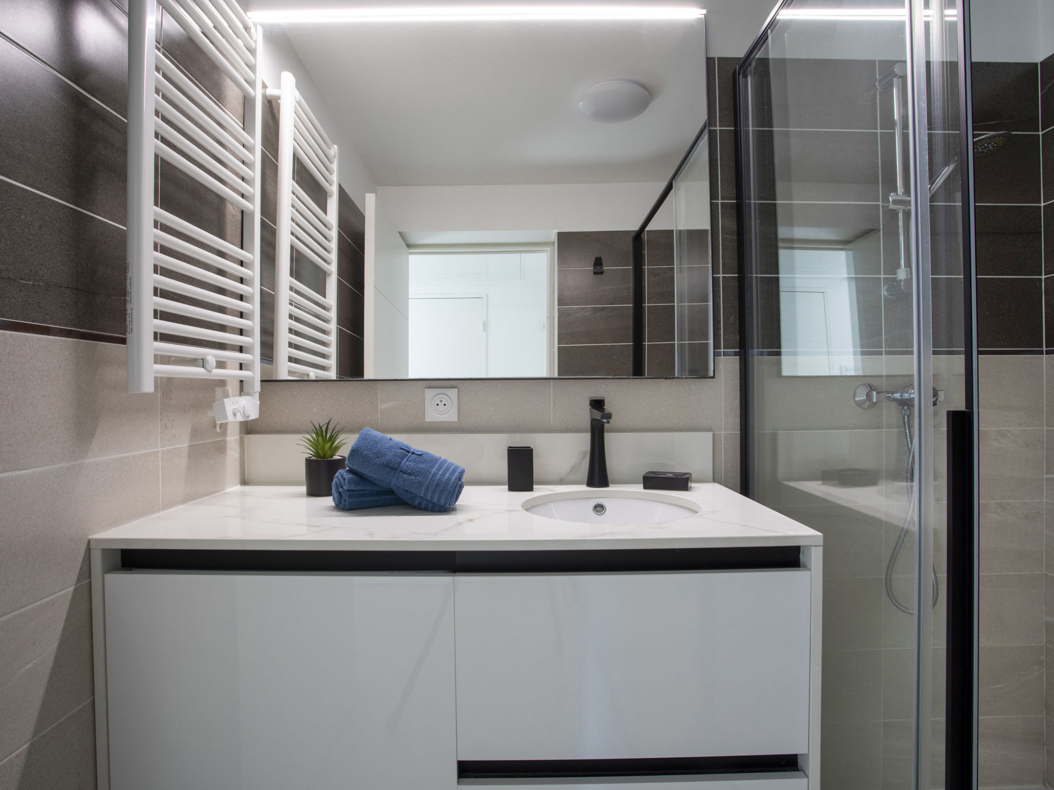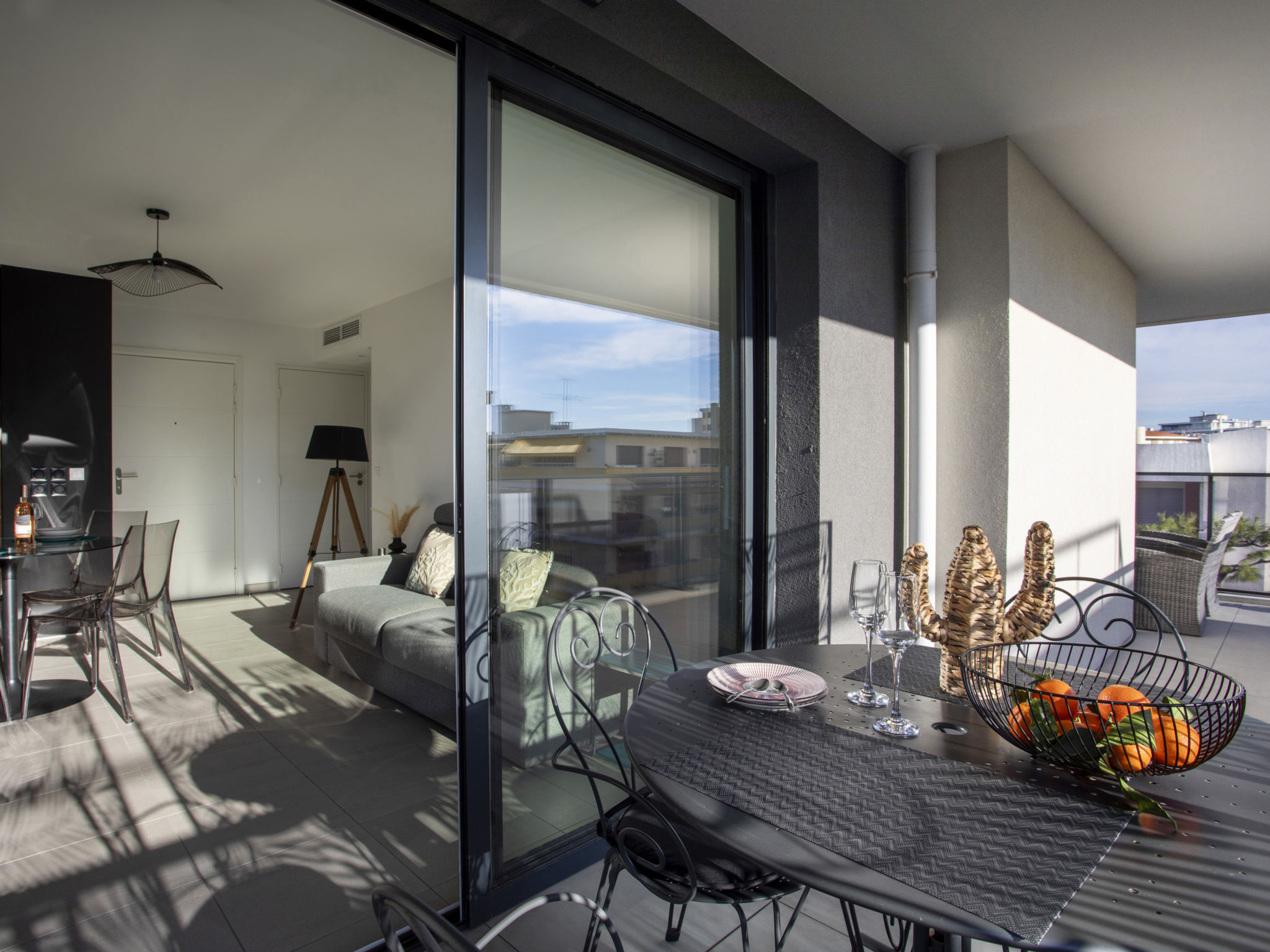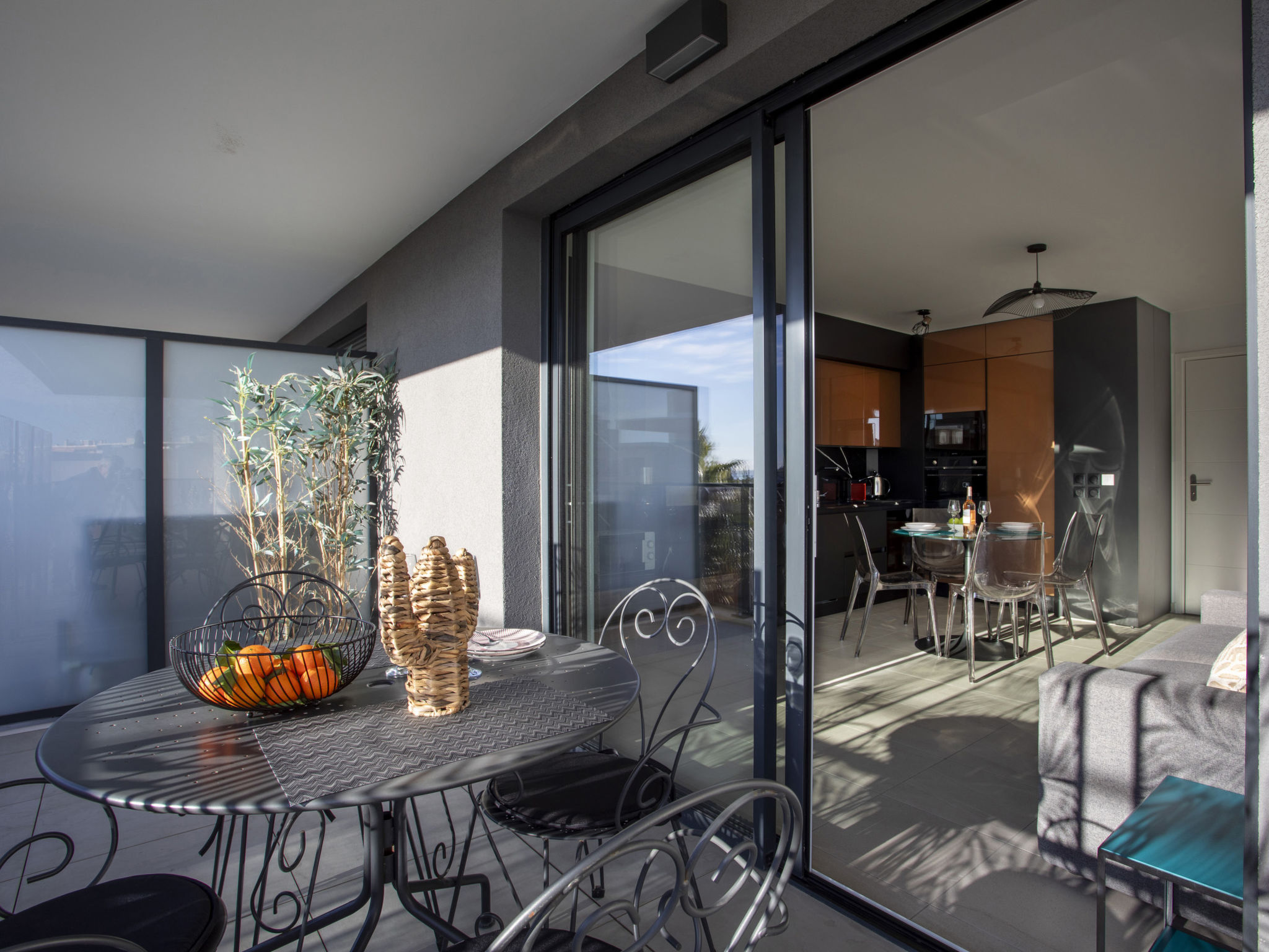 "Le Grey Pearl", 2-Zimmer-Wohnung 40 m2 im 3. Stock. Hell, schön und modern eingerichtet: Wohn-/Esszimmer mit Panoramafenster mit 1 Doppeldiwanbett (140 cm, Länge 190 cm), TV (Flachbildschirm). Ausgang zur Terrasse. 1 grosses Zimmer 12 m2 mit 1 franz. Bett (160 cm, Länge 190 cm). Ausgang zur Terrasse. Offene Küche (Backofen, Geschirrspüler, 4 Induktionskochplatten, Toaster, Wasserkocher, Mikrowelle, Tiefkühler, elektrische Kaffeemaschine, Kapseln für die Kaffeemaschine (Nespresso) extra). Ausgang zur Terrasse. Dusche/WC. Klimaanlage. Grosse Terrasse 28 m2, Ostlage und Südlage. Terrassenmöbel, Liegestühle. Schöne Sicht auf das Meer. Zur Verfügung: Waschmaschine, Bügeleisen, Haartrockner. Internet (Wireless LAN, gratis). Garage Nr. 207 NIVEAU -2 (2 Autos). Bitte beachten: Rauchmelder. Inserat einer Privatperson nach Artikel 155, IV, CGI. 06027017706AK