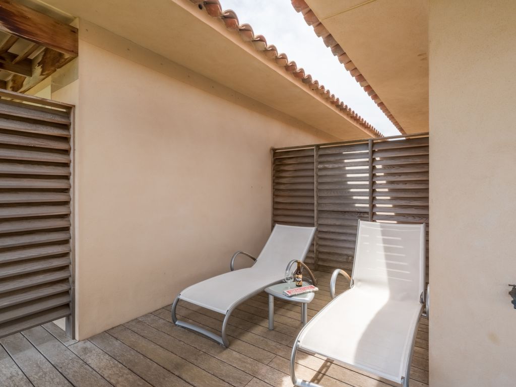 3-Zimmer-Wohnung 77 m2 im 1. Stock. Sehr zweckmässig und schön eingerichtet: Wohn-/Esszimmer mit 1 Doppeldiwanbett (140 cm, Länge 200 cm), TV (Flachbildschirm). Ausgang zur Terrasse. 1 Zimmer mit 1 franz. Bett (160 cm, Länge 200 cm), Dusche/WC. Ausgang zur Terrasse. 1 Zimmer mit 2 Betten (90 cm, Länge 190 cm). Ausgang zum Balkon. Offene Küche (Backofen, Geschirrspüler, 3 Induktionskochplatten, Toaster, Wasserkocher, Mikrowelle, Tiefkühler, elektrische Kaffeemaschine, Kapseln für die Kaffeemaschine (Nespresso et filtre) extra). Dusche, sep. WC. Klimaanlage. Grosse Terrasse 50 m2. Terrassenmöbel, Liegestühle (2). Eingeschränkte Sicht auf das Meer. Zur Verfügung: Waschmaschine. Internet (Wireless LAN, gratis). Parkplatz. Bitte beachten: geeignet für Familien. 1 Haustier/Hund erlaubt. Rauchmelder, kein Fahrstuhl. Inserat einer Privatperson nach Artikel 155, IV, CGI.