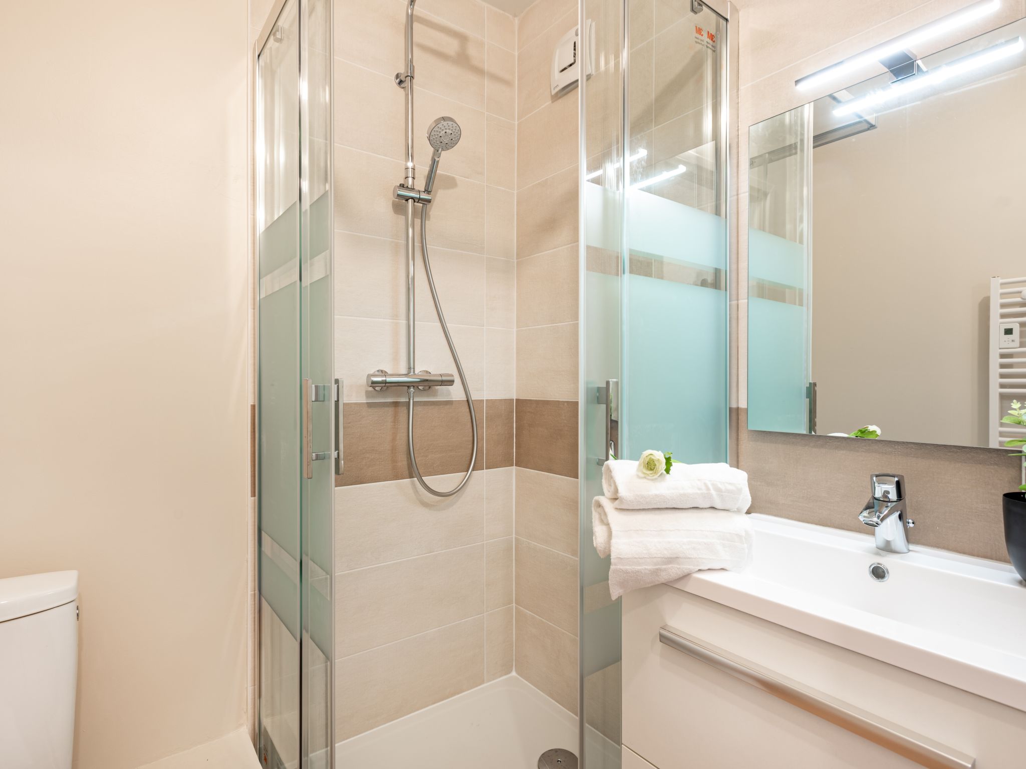 Residenz "Port An Dro", auf 4 Stockwerken, umgeben von Bäumen. Im Ort, 100 m vom Zentrum, 100 m vom Meer, 100 m vom Strand. Zur Mitbenutzung: Park (eingezäunt). Im Hause: Einstellraum für Fahrräder. Parkplatz. Einkaufsgeschäft 100 m, Supermarkt 1 km, Restaurant 100 m, Zentrum zu Fuss in 5 Minuten erreichbar, Sandstrand "Grande Plage de Carnac" 100 m, Thermalbad "Thalassothérapie Thalazur" 100 m. Golfplatz (18 Loch) 15 km, Segelschule 300 m, Reitstall 4 km. Nahe gelegene Sehenswürdigkeiten: La Trinité sur Mer 6 km, La Presqu'Ile de Quiberon 14 km, Alignements de Carnac 3 km, Auray 18 km, Vannes 33 km, Lorient 52 km. Wandergebiete: le Golfe du Morbihan.