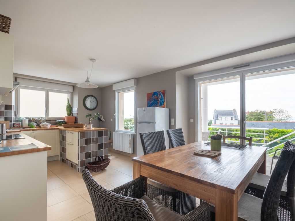 Zweifamilienhaus "Les Embruns". Im Ortsteil de la Montagne, à Binic, erhöhte Lage in einem Wohnquartier, exzellente Lage: Absolut zentral und dennoch ruhig, in einer Sackgasse. Zur Alleinbenutzung: kleiner, gepflegter Garten 100 m2 (eingezäunt) mit Pflanzen und Blumen. Gartenmöbel, Parkplatz beim Haus. Einkaufsgeschäft, Supermarkt 600 m, Restaurant 1 km, Bäckerei 600 m, Sandstrand "Plage de la Banche" 400 m, Freibad 900 m. Sporthafen 800 m, Segelschule 1 km, Tennis 4 km.