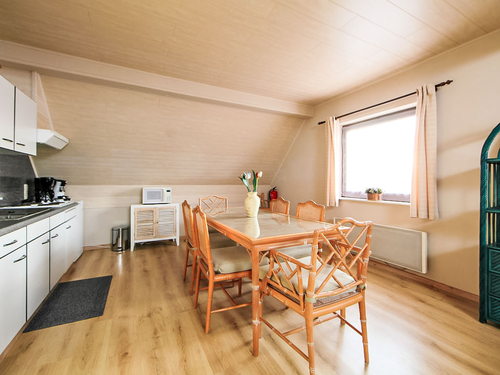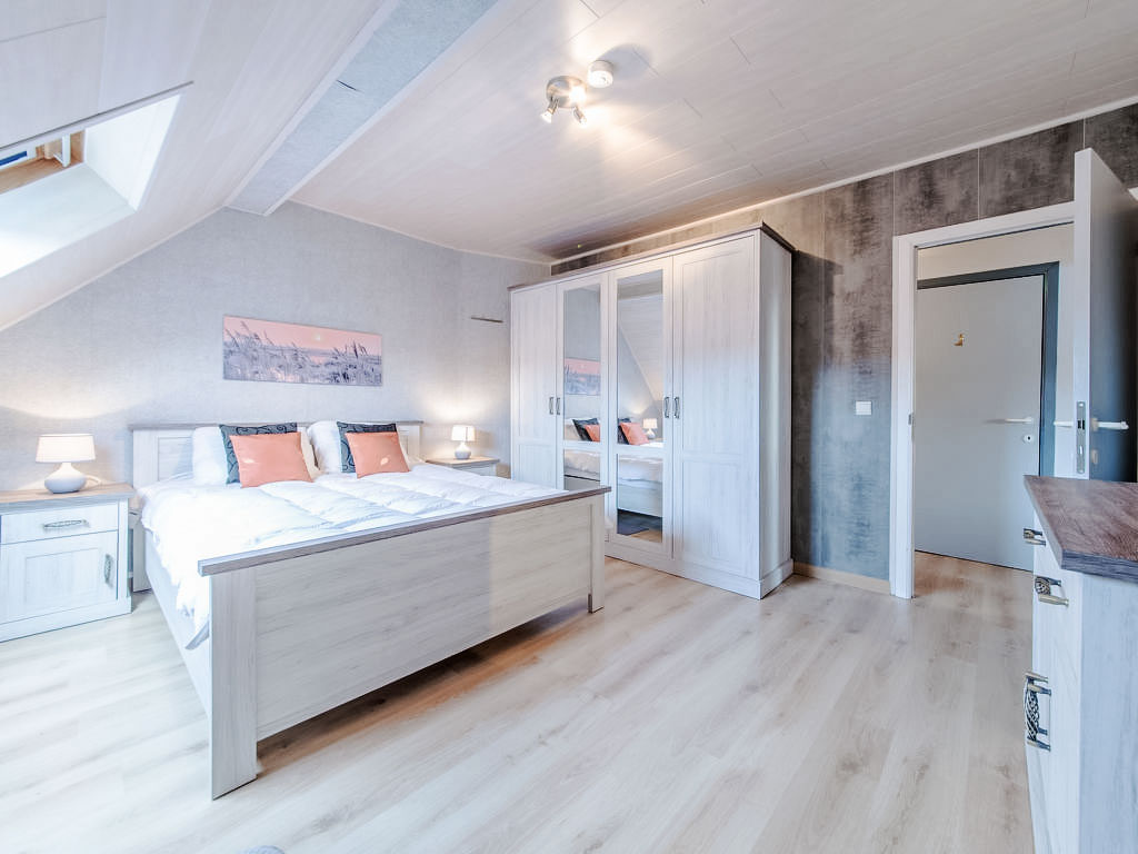 "Derby", 3-Zimmer-Wohnung im Obergeschoss. Geräumig, teilweise abgeschrägt, komfortabel eingerichtet: offenes Wohnzimmer mit Esstisch, Digital-TV, Radio, CD und DVD. 1 Zimmer mit 1 Doppelbett (1 x 160 cm, Länge 200 cm). 1 Zimmer mit 2 Betten. Offene Küche (4 Kochplatten, Mikrowelle, elektrische Kaffeemaschine). Dusche/WC. E-Heizung. Zur Verfügung: Bügeleisen, Babybett. Internet (Wireless LAN, gratis). Parkplatz beim Haus. Bitte beachten: Nichtraucher-Haus. Rauchmelder, Feuerlöscher.