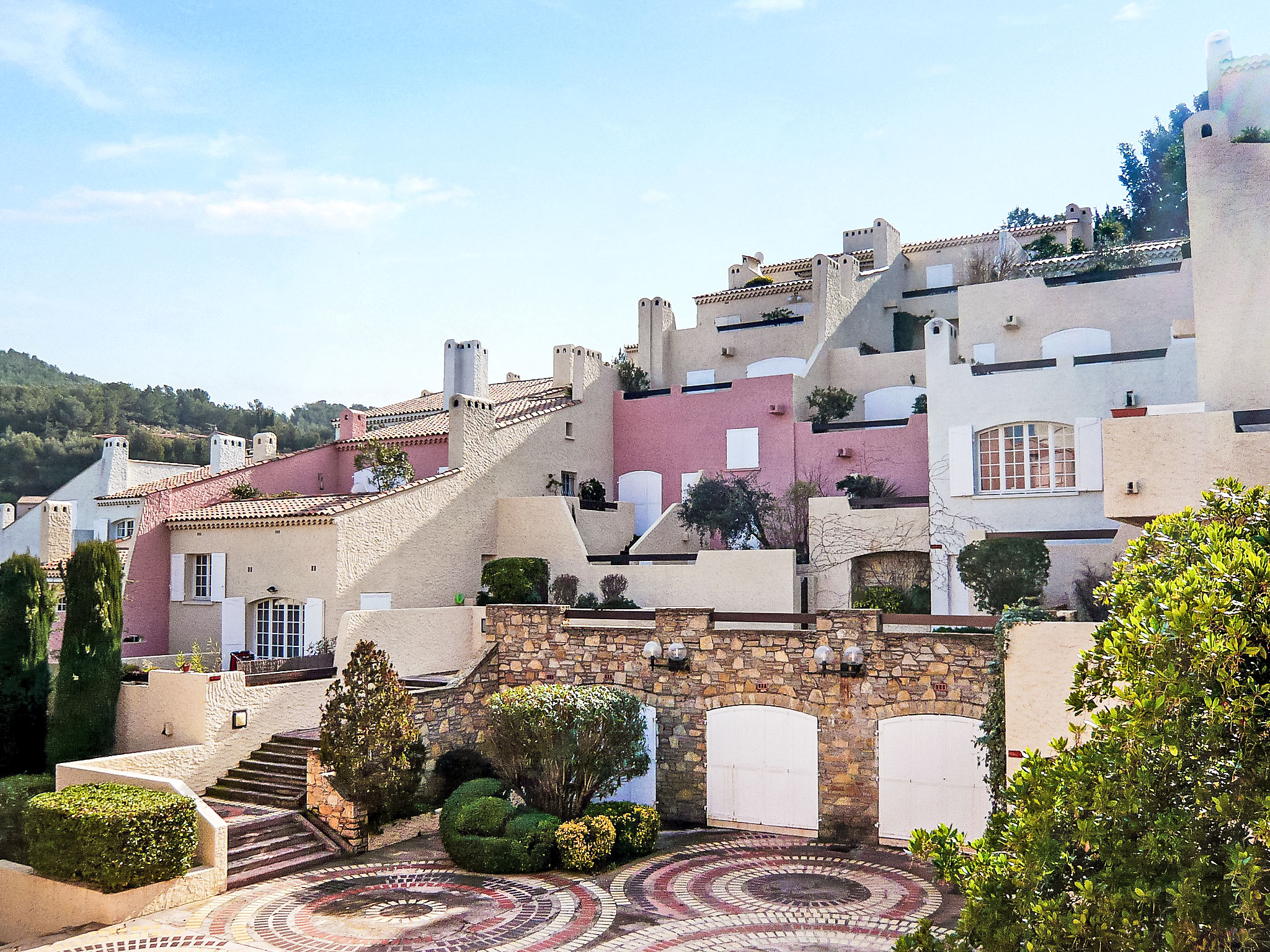 La Madrague: Residenz "Hameau la Madrague". Erhöhte Lage, 200 m vom Meer. Parkplatz (beschränkte Anzahl). Lebensmittelgeschäft 100 m, Supermarkt 3 km, Restaurant 200 m, Sandstrand 300 m, Felsstrand 200 m. Sporthafen 300 m, Golfplatz (18 Loch) 4 km, Tennis 2 km. Nahe gelegene Sehenswürdigkeiten: Aqualand 3 km. Wandergebiete: Sainte Baume, Sainte Victoire, Calanques Port-Cros, Porquerolles, Ile verte, Embiez, Figuerolles, Cassis. Bitte beachten: Die Schlüsselübergabe findet bei der Agentur INTERHOME in St Cyr /La Madrague statt. Das Foto ist nur ein Hausbeispiel. In diesem Haus sind weitere Ferienwohnungen mietbar. Bitte beachten Sie: Die Wohnungen sind über grosse Treppen mit vielen Stufen erreichbar. In der Residenz herrscht Fahrverbot. Das Lebensmittelgeschäft liegt 100 m entfernt. Es ist vom 1. April bis am 30. September geöffnet.
